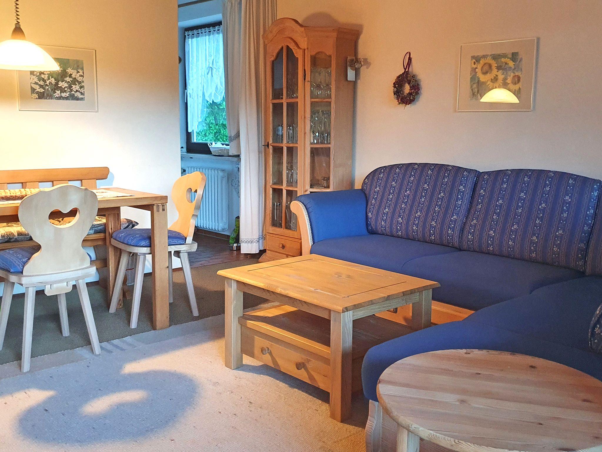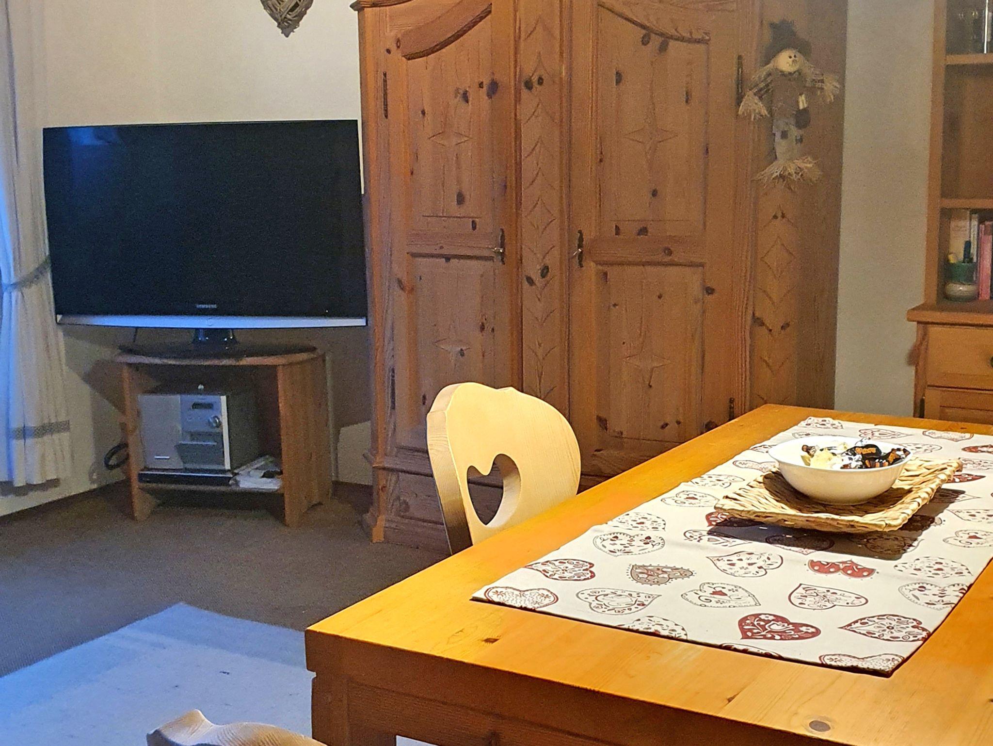 Unsere charmante Nichtraucher-Ferienwohnung im gemütlichen alpenländischen Stil empfängt Sie mit viel Holz, warmen Farben und einer liebevoll zusammengestellten, komplett ausgestatteten Einrichtung. Hier finden Sie alles, was Sie für entspannte und erholsame Urlaubstage benötigen. Die Wohnung verfügt über eine einladende Diele mit Garderobe. Das separate Schlafzimmer mit einem komfortablen Doppelbett (1,80 × 2,00 m) sorgt für ruhige Nächte und erholsamen Schlaf. Das Badezimmer ist mit Dusche/WC sowie einem Fön ausgestattet. In der kleinen, aber bestens eingerichteten Küche stehen Ihnen ein Cerankochfeld, ein Backofen mit Mikrowellenfunktion, eine Filterkaffeemaschine sowie ein Kühlschrank mit Tiefkühlfach zur Verfügung – ideal, um sich auch im Urlaub bequem selbst zu versorgen. Der gemütliche Wohnraum lädt mit einem großzügigen Essplatz, einer bequemen Couch, Smart-TV und kostenfreiem WLAN zum Verweilen ein. Ob nach einer Wanderung, einem Ausflug oder für einen entspannten Abend – hier fühlt man sich sofort wohl. Ein echtes Highlight ist der großzügige Eckbalkon mit Süd- und Ost-Ausrichtung. Von hier aus genießen Sie einen herrlichen Blick auf die umliegende Bergwelt – perfekt für ein Frühstück in der Morgensonne oder einen stimmungsvollen Tagesausklang. Bitte beachten Sie, dass Hunde und andere Haustiere in der Wohnung nicht gestattet sind.