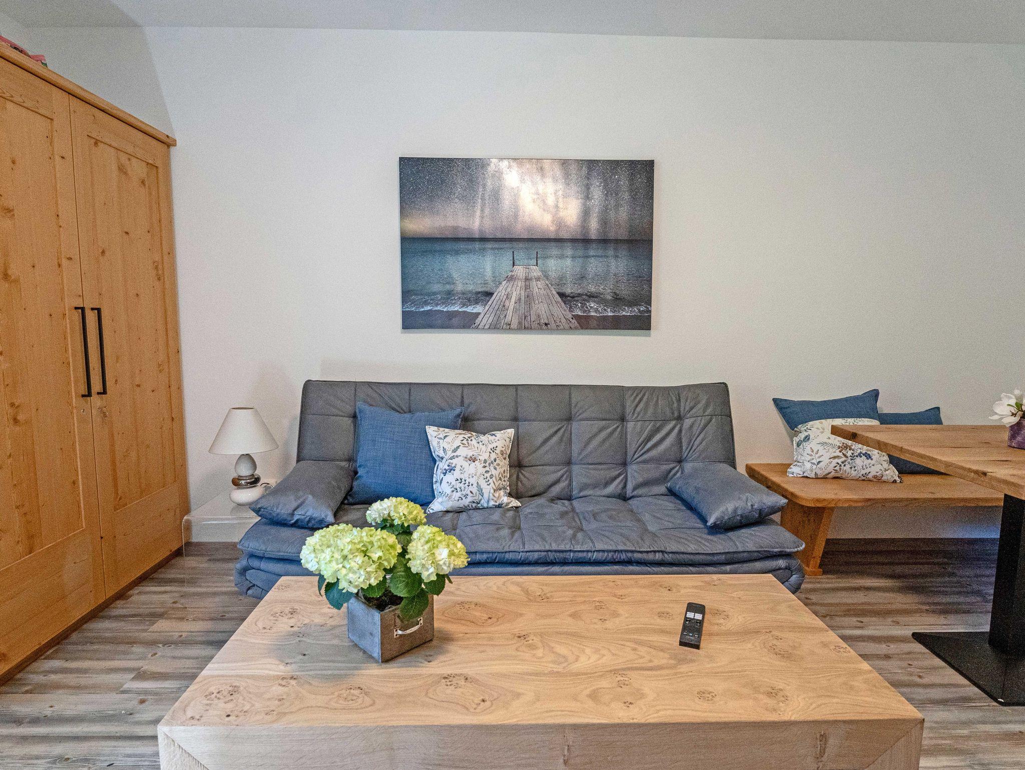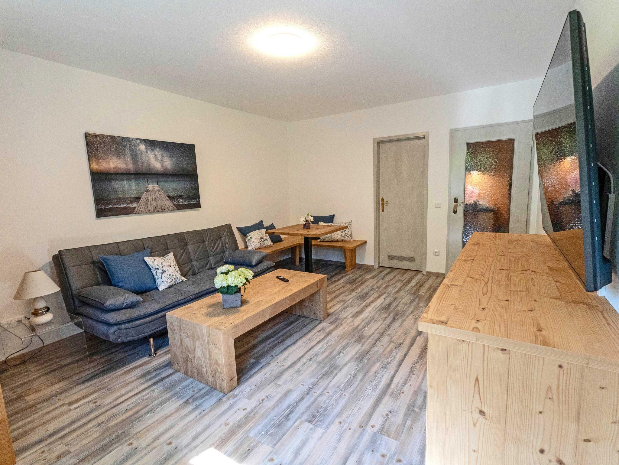 Ihr Rückzugsort mit Panoramablick – Entspannung pur! Willkommen in Ihrer gemütlichen, frisch renovierten Ferienwohnung – perfekt für 2 bis 3 Personen, die einen erholsamen Urlaub in den Bergen genießen möchten. Hier erwarten Sie helle Räume mit Vinyl-Bodenfliesen und einer angenehmen Atmosphäre: Das Schlafzimmer mit einem komfortablen Doppelbett (185 x 205 cm) und großzügigem Stauraum verspricht erholsame Nächte. Im Wohnzimmer lädt eine gemütliche Schlafcouch für die 3. Person (196 x 92 cm) zur Entspannung ein, während der große Flachbild-Fernseher für Unterhaltung sorgt. Eine charmante Ess-Ecke und ein stilvolles Sideboard runden das Ambiente ab. Die separate kleine Küche ist bestens ausgestattet – Backofen mit integrierter Mikrowelle, Kühlschrank mit Gefrierfach und ein Ceranfeld mit zwei Kochplatten sorgen dafür, dass Sie nach Herzenslust kochen können. Geschirr für Kochen und Essen ist selbstverständlich vorhanden.
