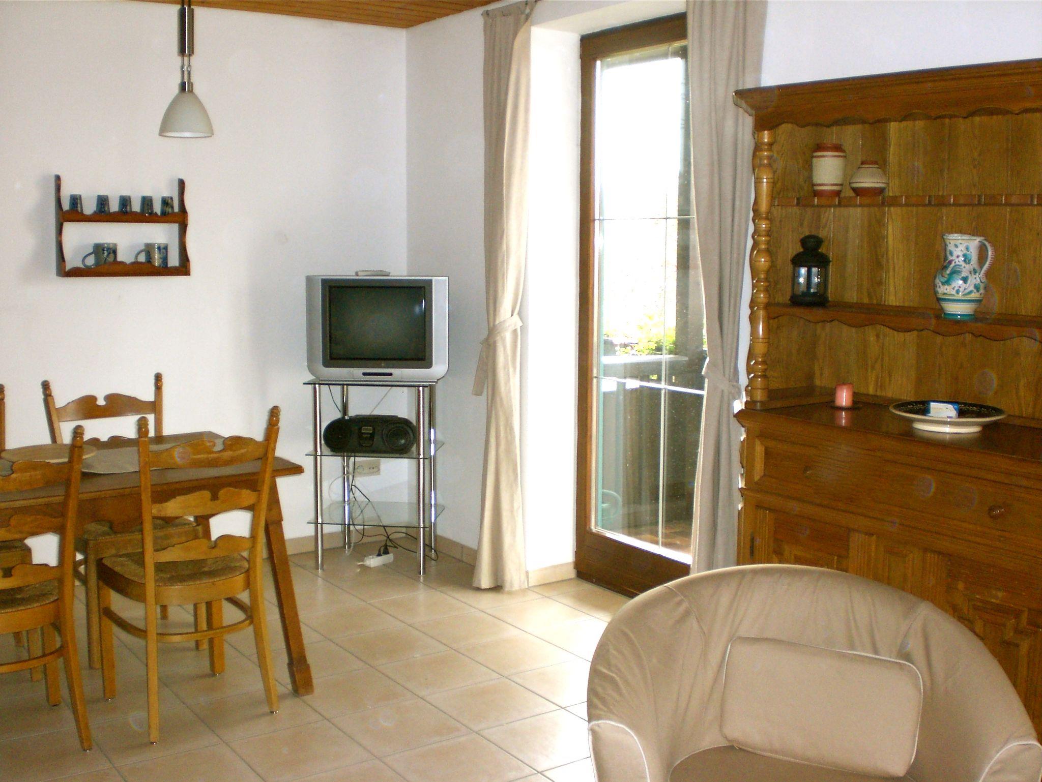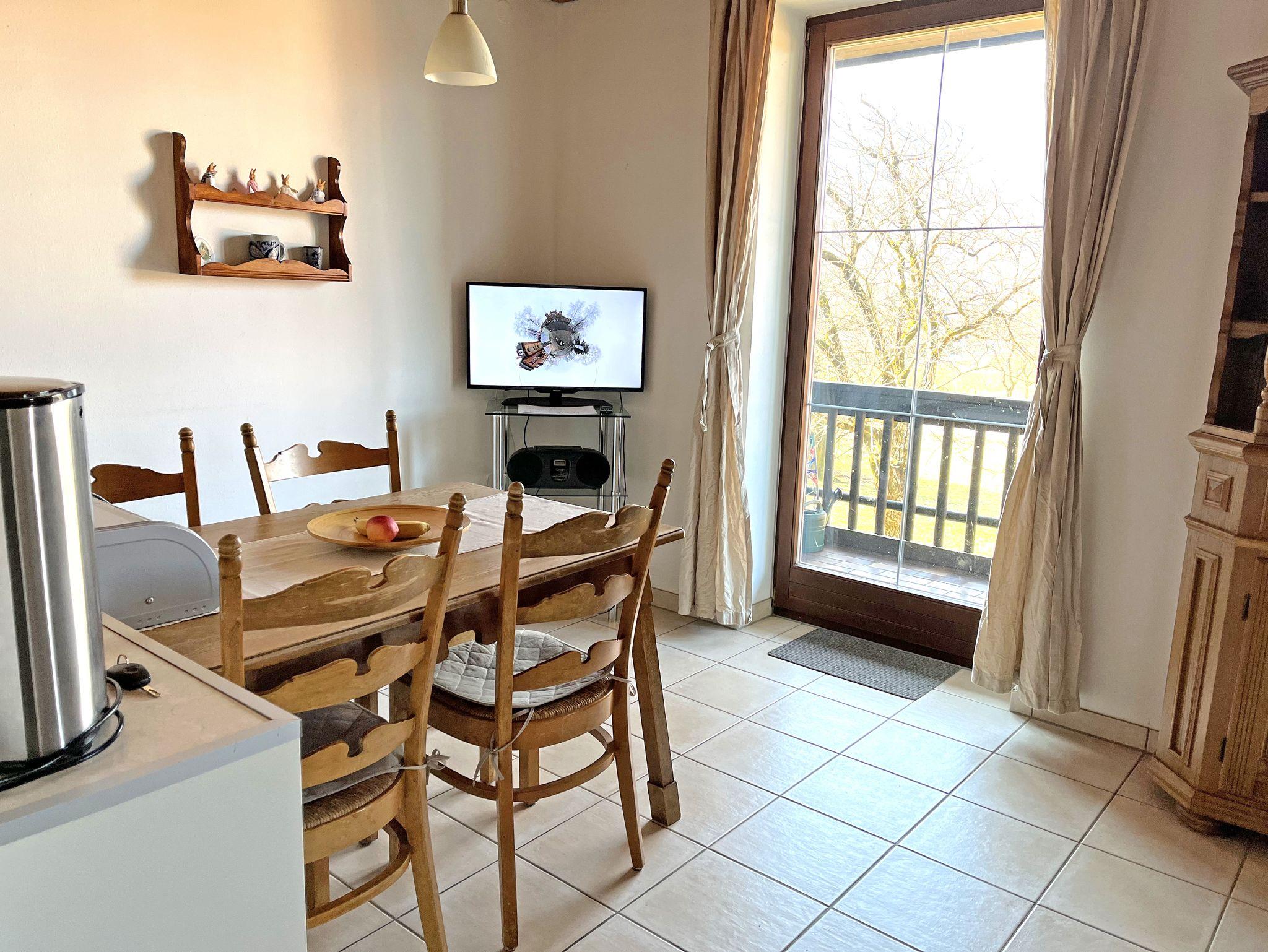 Gemütliche, helle 40 qm Ferienwohnung Wohn-/Schlafzimmer mit kleiner Küche, Geschirrspüler, Essecke, Kabel-TV, Internet über Kabelverbindung (kein W-LAN), CD-Radio, Schlafcouch und Doppelbett. Badezimmer mit Badewanne/Dusche und WC. 6 m langer Westbalkon mit Blick auf Schloss Hohenaschau und Zellerhorn. Gerne können Sie gegen Aufpreis einen Hund mitbringen.