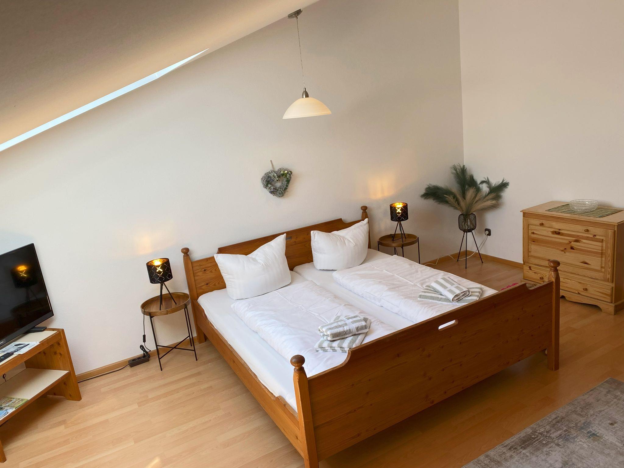 Gemütliche Ferienwohnung für bis zu 3 Personen – Ihr perfektes Zuhause auf Zeit! Willkommen in unserer liebevoll eingerichteten Ein-Zimmer-Ferienwohnung mit 35 qm Wohnfläche – ideal für 1 bis 3 Personen! Die stilvolle Ausstattung mit Vinyl-Bodenfliesen sorgt für eine angenehme Atmosphäre, während Sie sich im freundlich eingerichteten Wohn- und Schlafbereich mit Doppelbett und ausziehbarer Schlafcouch entspannen können. Ein Essplatz im Wohnraum bietet genügend Platz, um gemeinsame Mahlzeiten zu genießen – sei es ein gemütliches Frühstück oder ein entspannter Abend mit leckerem Essen. Für Unterhaltung ist bestens gesorgt: Ein TV und kostenloses WLAN stehen Ihnen zur Verfügung. Die Kochnische mit Einbauküche, 2-Zonen-Kochfeld, Kaffeemaschine, Kühlschrank und Wasserkocher bietet alles, was Sie für die Zubereitung Ihrer Lieblingsgerichte brauchen. Das Badezimmer verfügt über eine Dusch-/Badewanne, ein WC und Fön, damit Sie sich nach einem erlebnisreichen Tag erfrischen können. Haustierliebhaber aufgepasst: Ein Hund darf gegen Aufpreis gerne mitgebracht werden!