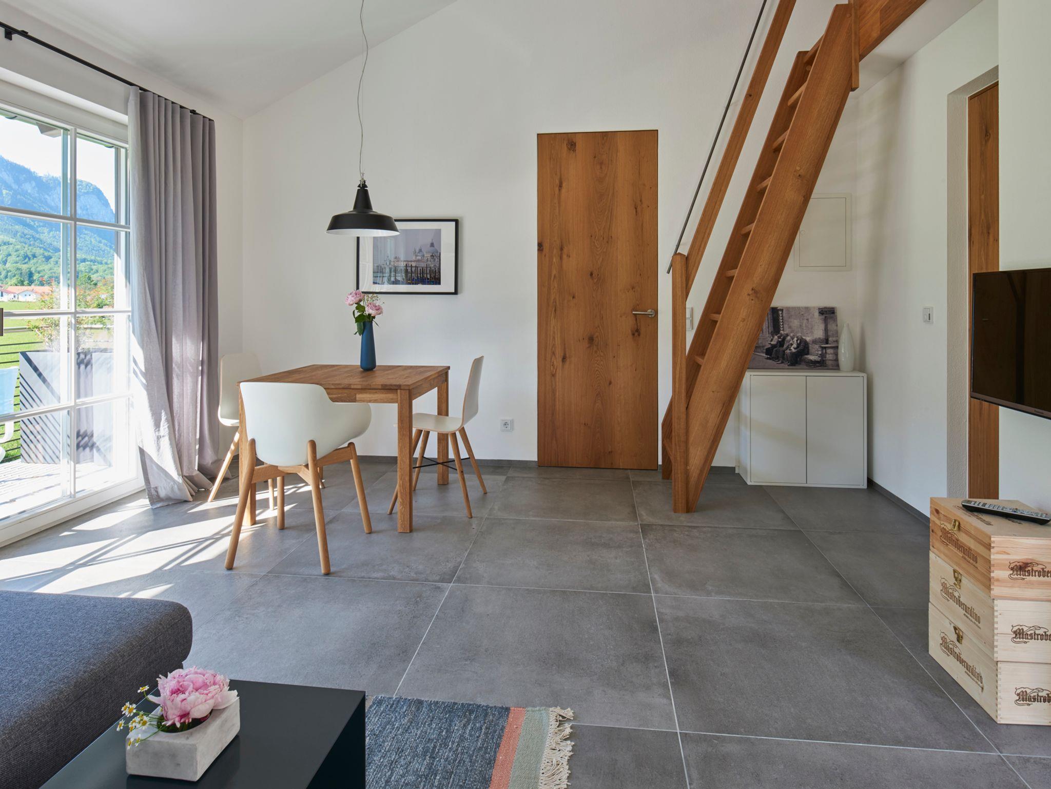 Hereinspaziert! In ruhiger und dabei zentrumsnaher Ortsrandlage erwarten Sie in unserem 2016 errichteten Haus zwei bildschöne Ferienwohnungen für zwei bis vier bzw. fünf Personen. Mit großen Fenstern samt jeder Menge Ausblick auf die Berge (die eine) und das Dorf (die andere) und ausgestattet mit allem, was man in einer „Ferienheimat“ braucht, sind sie der ideale Ankerplatz für Ihre Urlaubstage in den Chiemgauer Bergen. Fürs entspannte Wohngefühl sorgen Möbel und Accessoires aus natürlichen Materialien, in klaren Formen und ruhigen Farben. Freuen Sie sich auf ein Ferienrefugium, in dem es ebenso viel Spaß macht, nach einem erlebnisreichen Tag heimzukommen wie morgens loszuziehen.