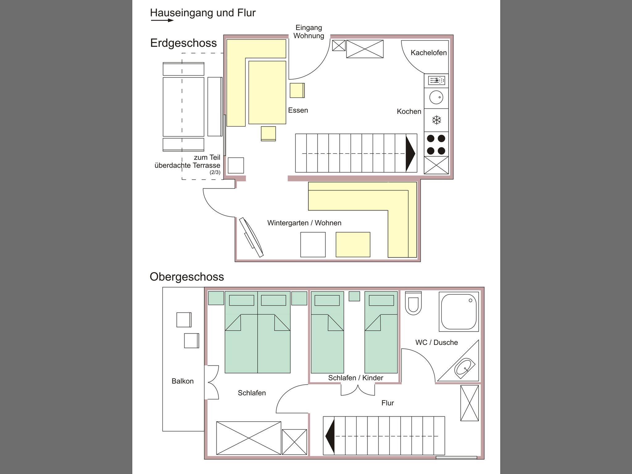 Unsere drei 5 Sterne Maisonette-Wohnungen sind jeweils für 4 Personen (max. 2 Erw. u. 2 Kinder) ausgelegt. Im EG befindet sich der Ess- und Wohnbereich, Wintergarten und eigene Terrasse. Im OG mit Sichtdachstuhl befinden sich die beiden Schlafräume, das Bad mit Zirbenpflegeprodukten, Kosmetikspiegel und ein Balkon.