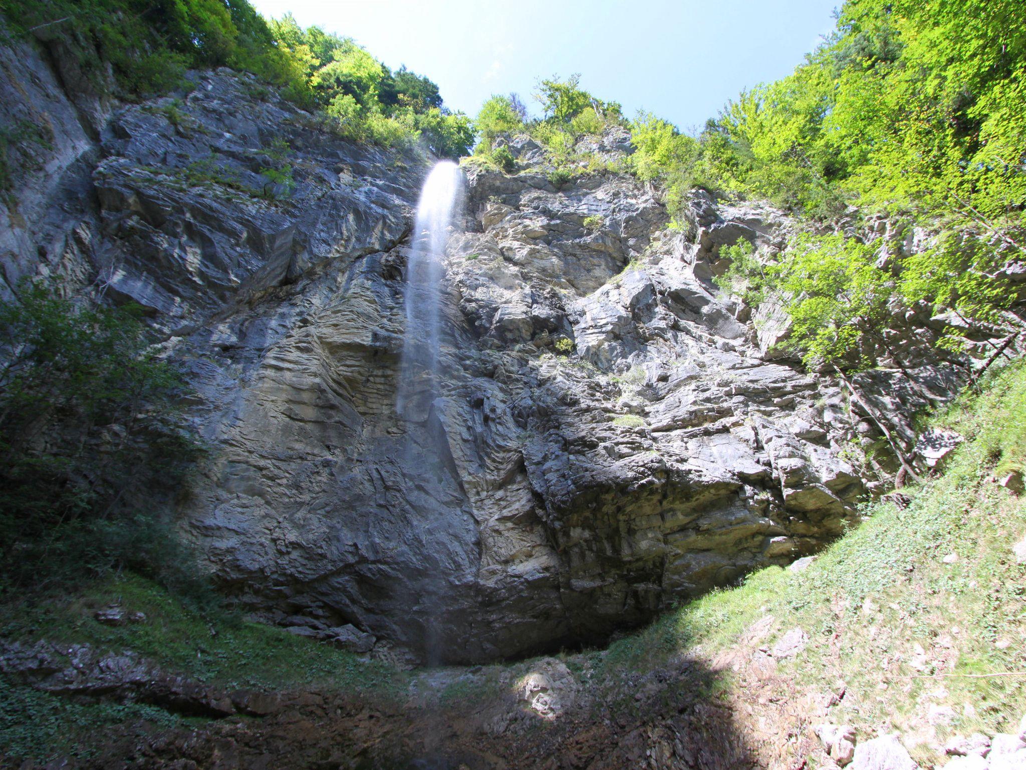 Unsere Ferienwohnung „WASSERFALL” wurde nach dem Wasserfall hinter dem Haus benannt, der hier etwa 90 m in die Tiefe stürzt.