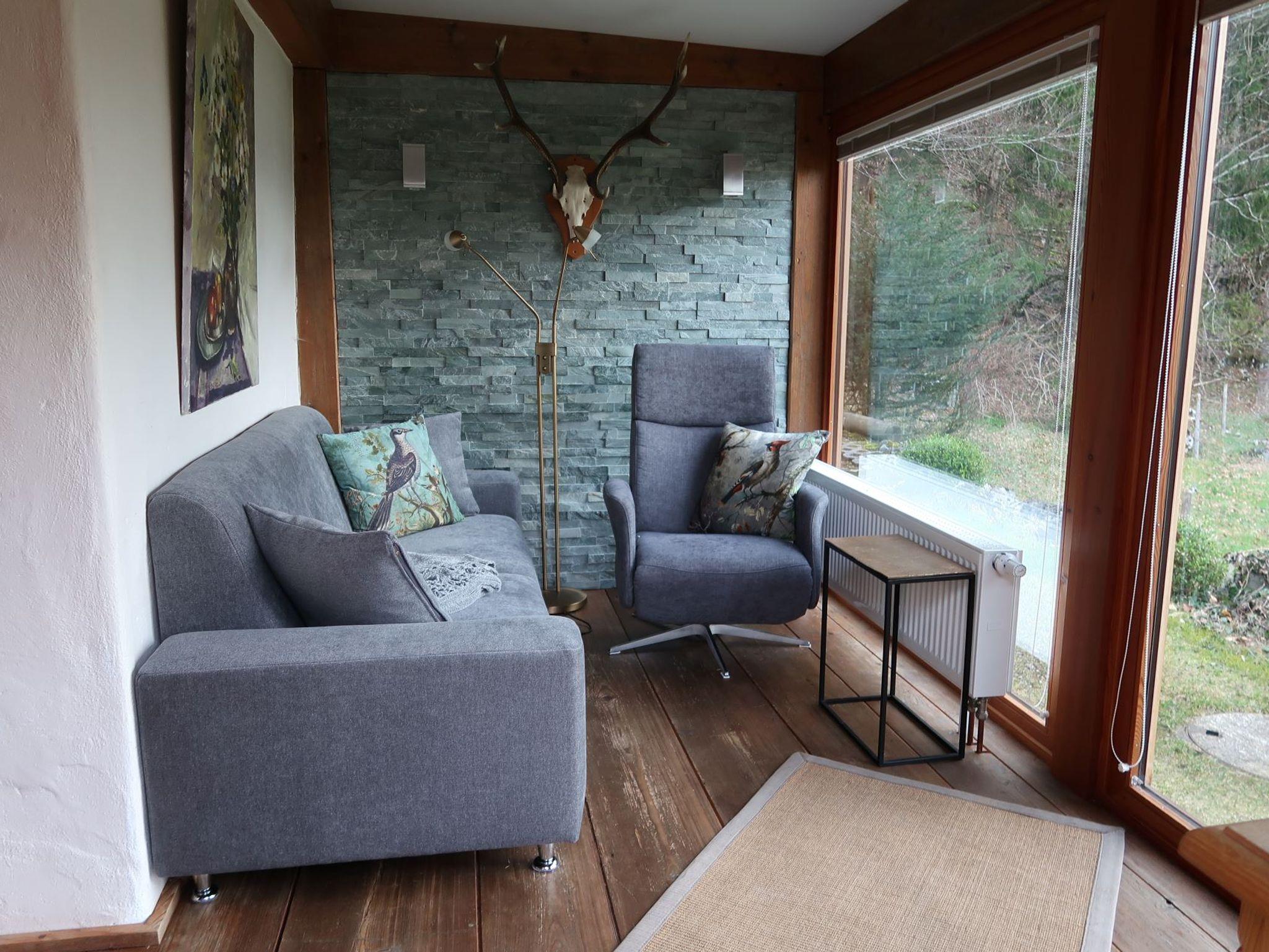 Diese Fewo, bayerisch mit modernen Akzenten für 4 Personen (max. 2 Erwachsene & 2 Kinder), ist ausgestattet mit allem Komfort und lässt keine Wünsche offen. Der Kachelofen sorgt für gemütliche Wärme. Der Wintergarten mit altem Eichenparkett, Sofa, kostenlosem WLAN, TV (Mediathek) bietet einen freien Blick in das Tal und die Berge.