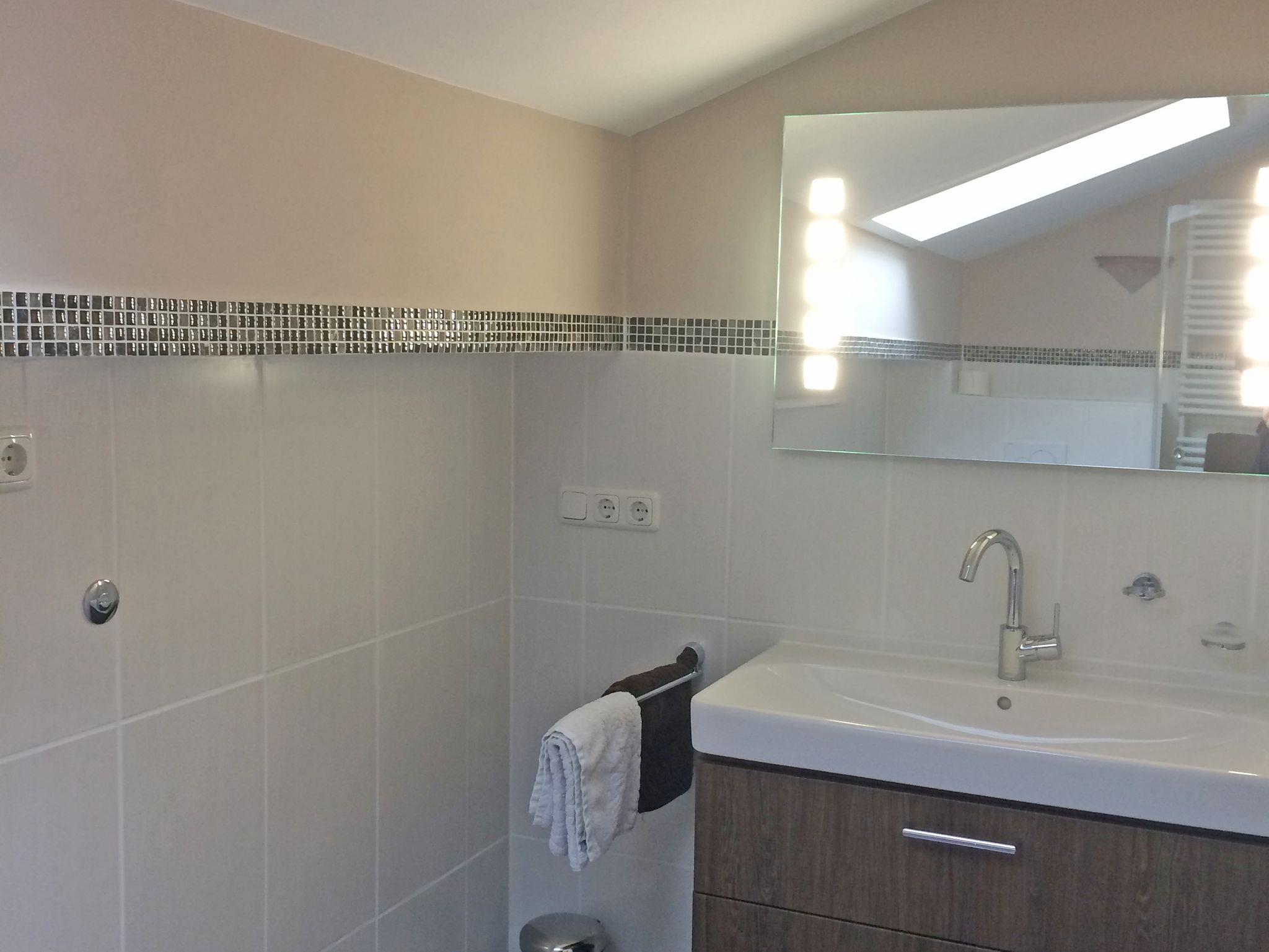 Helle und gemütliche Ferienwohnung Kampenwand mit großem Balkon im Dachgeschoss. Im Wohnraum befindet sich ein Doppelbett, ein Sofa, SAT-TV und kostenloses WLAN. Das separate Schlafzimmer mit einem Einzelbett und einem Futonbett 140/200 m. Vollausgestattete Küche mit 4-Platten-Herd und Backofen, Kühlschrank mit Tiefkühlfach. Badezimmer mit Dusche/WC und Radio. Ein Kinderbett kann auf Wunsch aufgestellt werden. Hunde und Haustiere dürfen nicht mitgebracht werden.