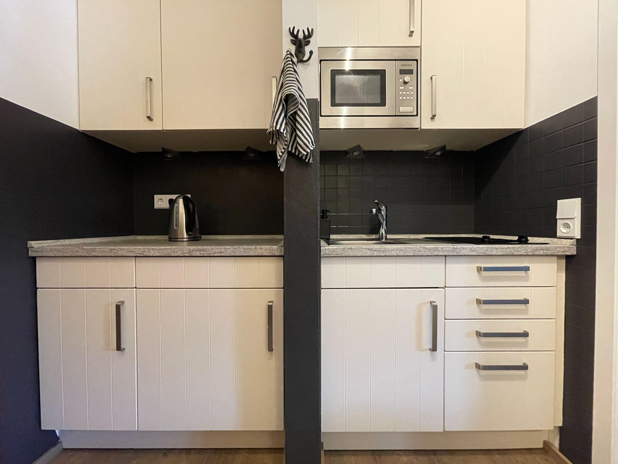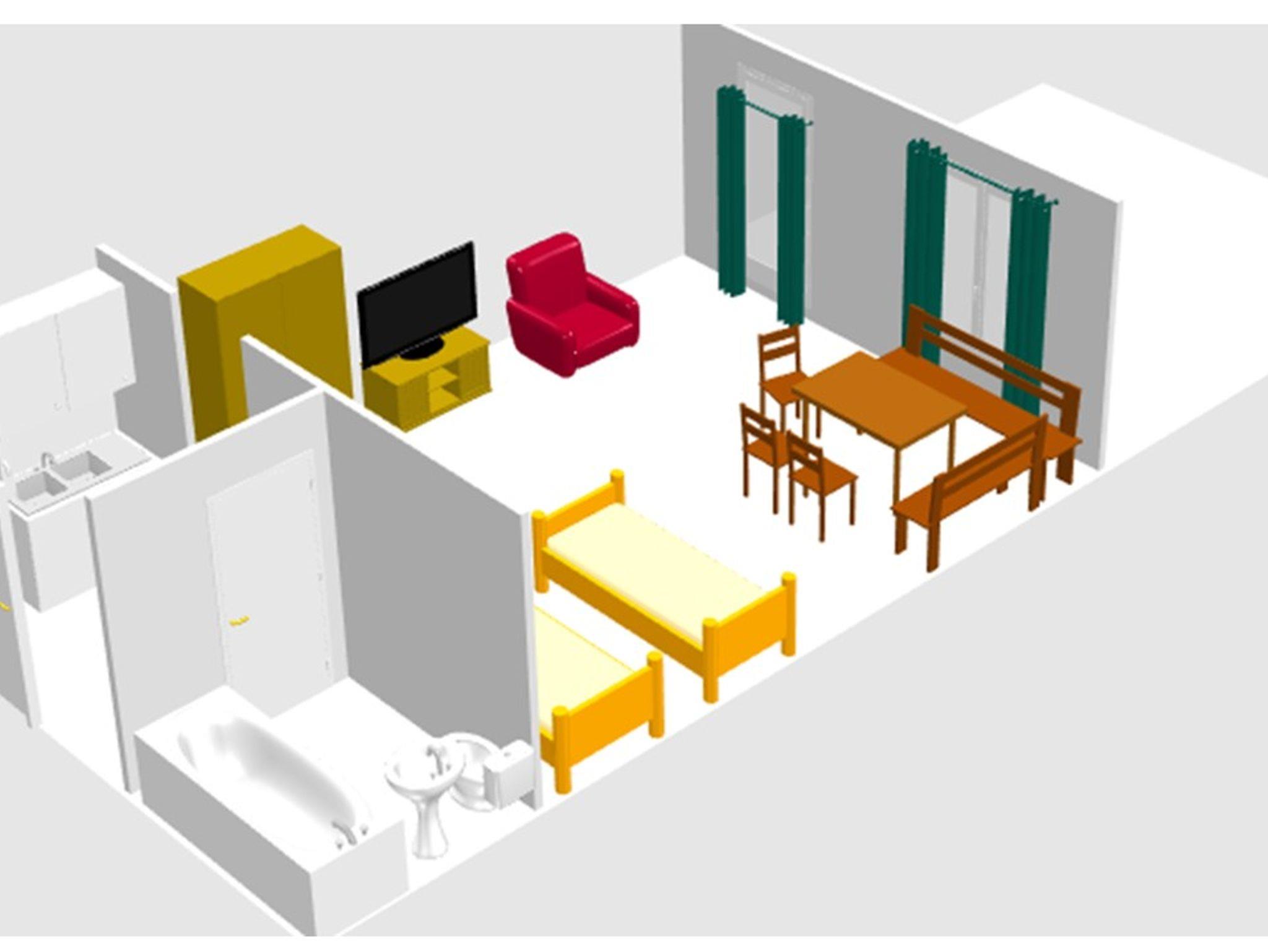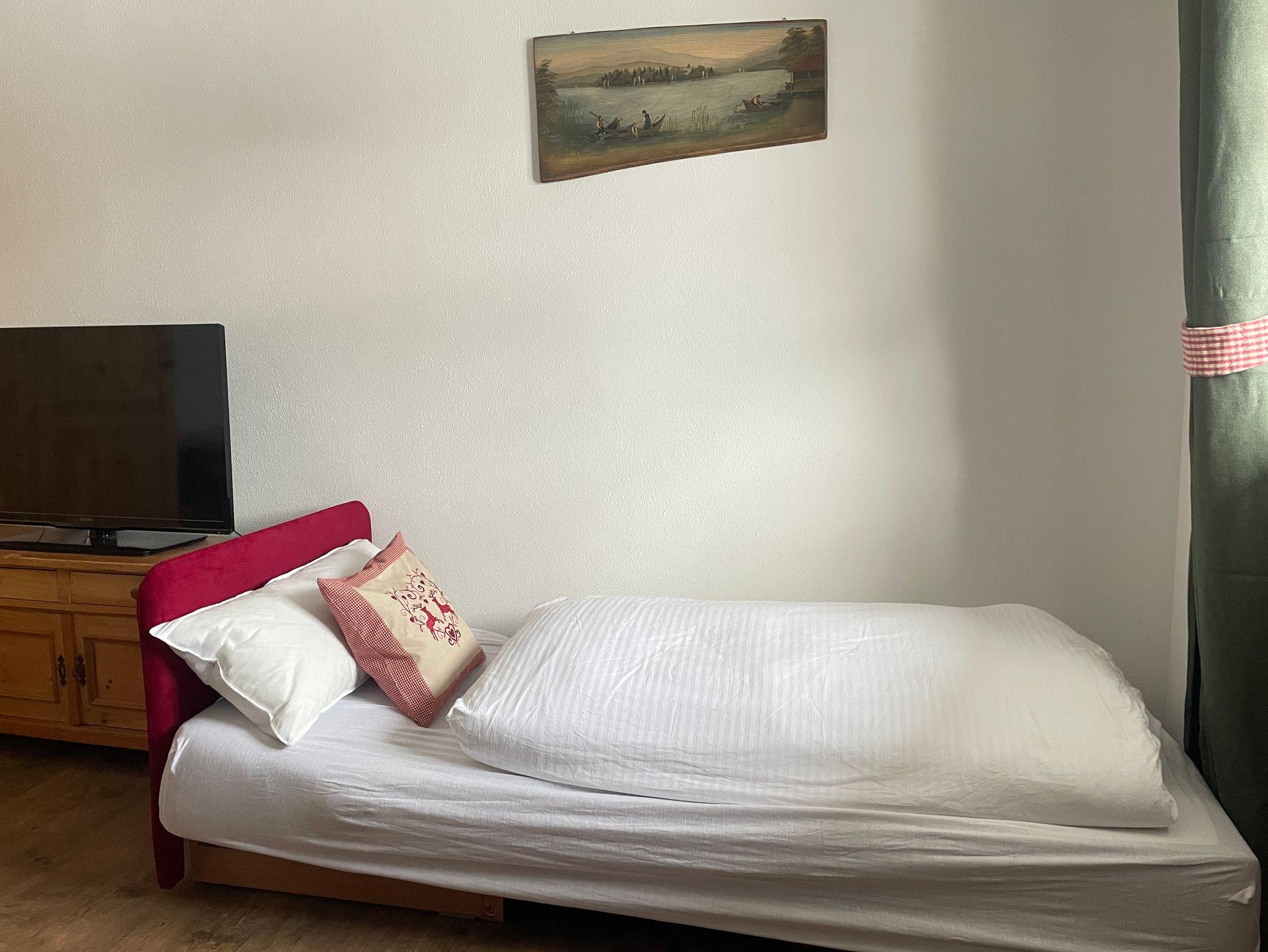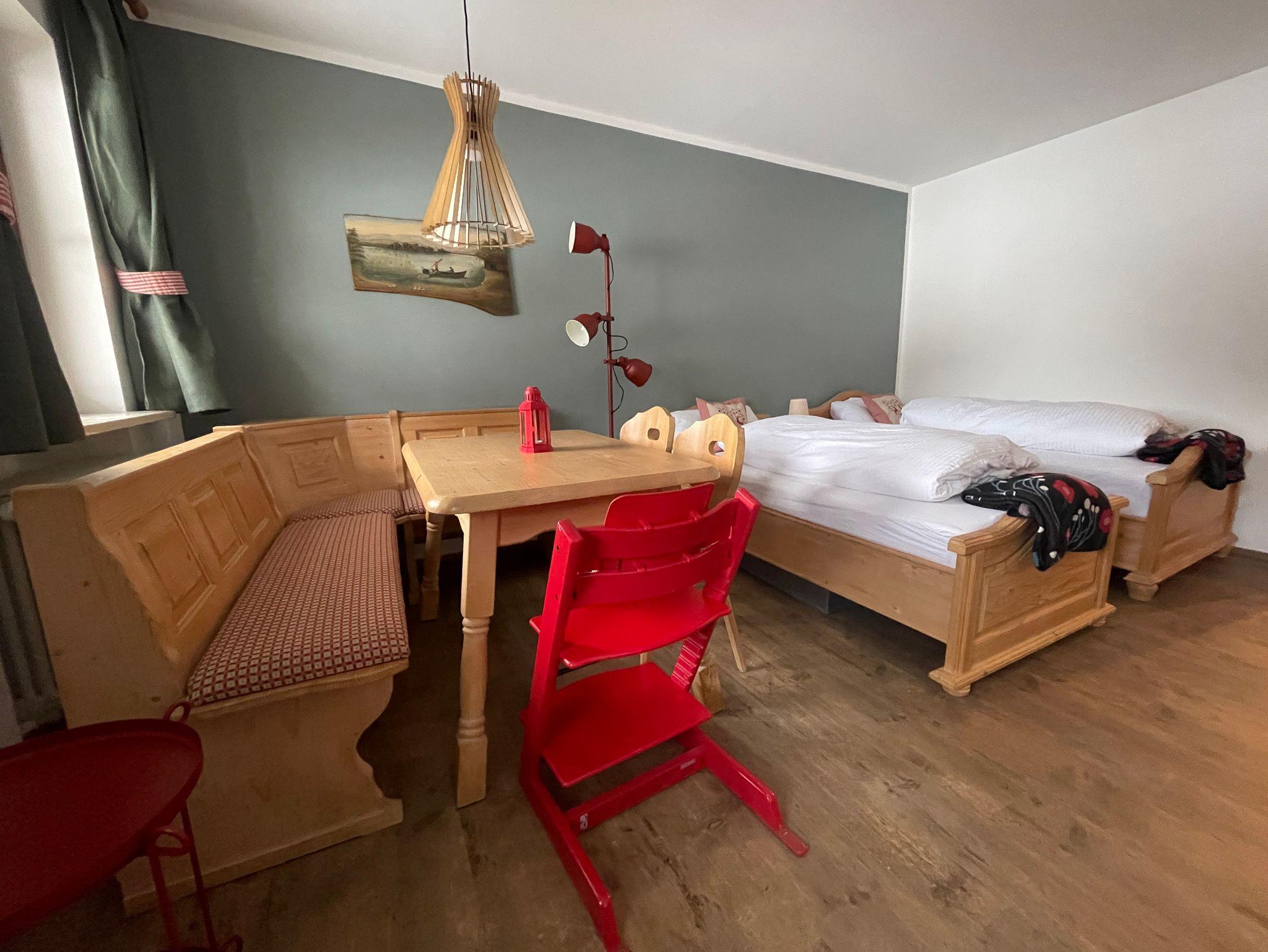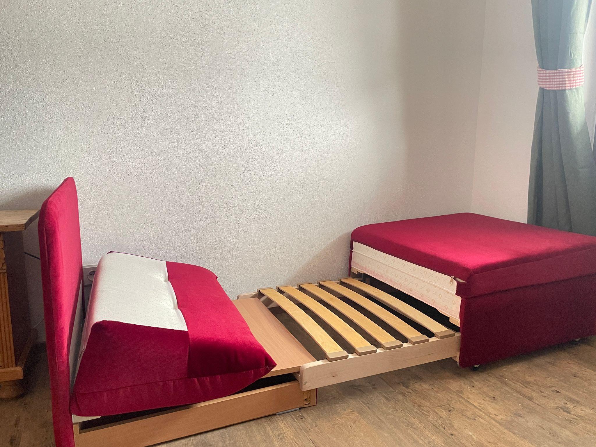 Der großzügige Wohn- und Schlafraum ist mit zwei Einzelbetten (90x200cm, 100x200cm), einem ausziehbaren Schlafsessel (80x195cm, empfohlen für leichte Personen), einem Kleiderschrank und einem Esstisch mit Eckbank (bis zu 6 Personen) ausgestattet. Badezimmer mit Dusch-/Badewanne, WC, Fön. Bettwäsche und Handtücher vorhanden. Kostenloses WLAN ist im gesamten Haus verfügbar. Keine Haustiere erlaubt.