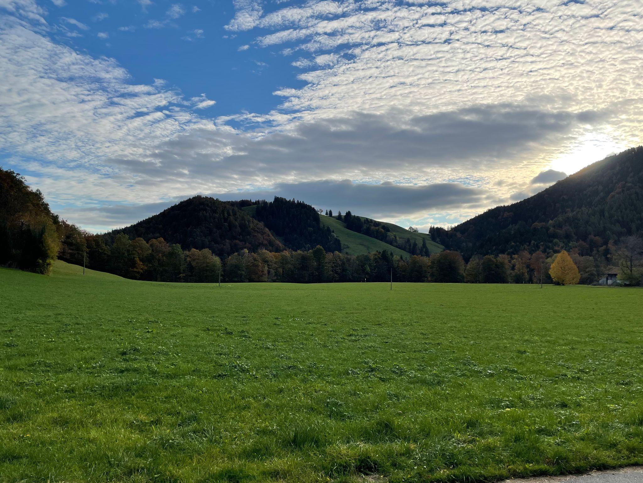 Genießen Sie die ersten Sonnenstrahlen des Tages auf der 20 qm großen Terrasse mit Blick auf die Weite der Hochebene. Nur die Kuhglocken durchbrechen die idyllische Ruhe auf der Ostseite des Hauses. Ganz im Geschmack der Eigentümerfamilie eingerichtet, erleben Sie einen Komfort wie daheim: extrahohe Matratzen, allergikerfreundliche Bettdecken, hygienische Duschwand, hochwertig ausgestattete Pantryküche und viele Extras wie Yoga-Matte und Wärmflasche. Ein besonderes Küchenhighlight ist die Heißluftfritteuse, mit der Sie u.a. das Frühstücksei zeitgleich mit den Brötchen zaubern können.