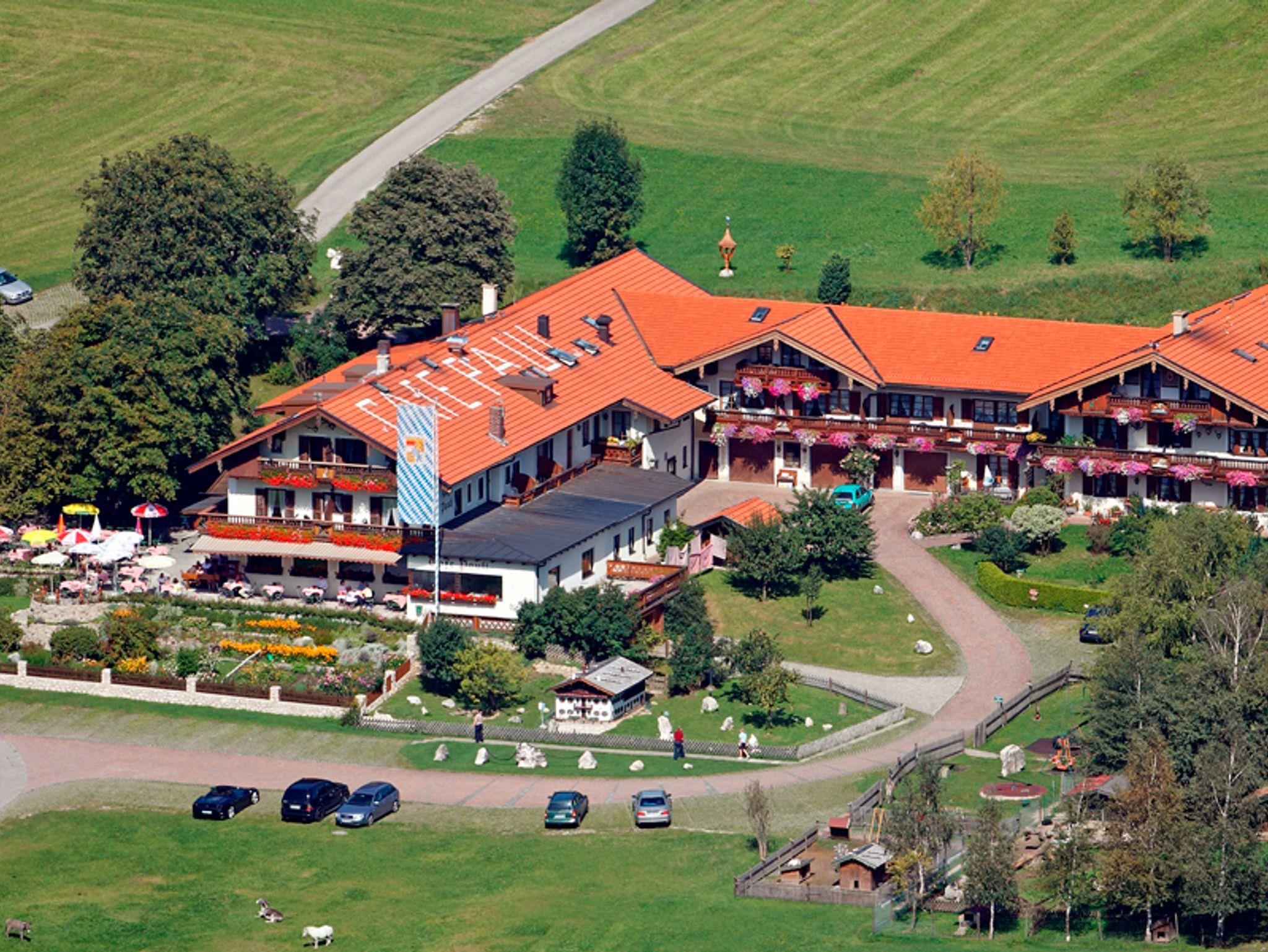 Unser Haus liegt zwanzig Gehminuten von Ortsmitte und Bahnhof, in landschaftlich reizvoller ruhigster Lage am Südhang von Höhenberg, mit vollkommen freiem Blick auf Aschau mit Schloss Hohenaschau und die Chiemgauer Berge. Unsere Gäste erwarten helle freundliche Zimmer oder Ferienwohnungen, Frühstücksbuffet, Kühlschrankbenutzung, Waschraum und Fahrradraum. In urgemütlichen Gasträumen und im sonnigen Cafégarten, unter alten Kastanienbäumen, werden Ihnen deftige Brotzeiten und hausgemachte Kuchen angeboten. Ein Spielplatz für die Kinder und viele Tiere am Haus. Eine Liegewiese direkt am Haus, lädt zum Sonnen und Faulenzen ein.