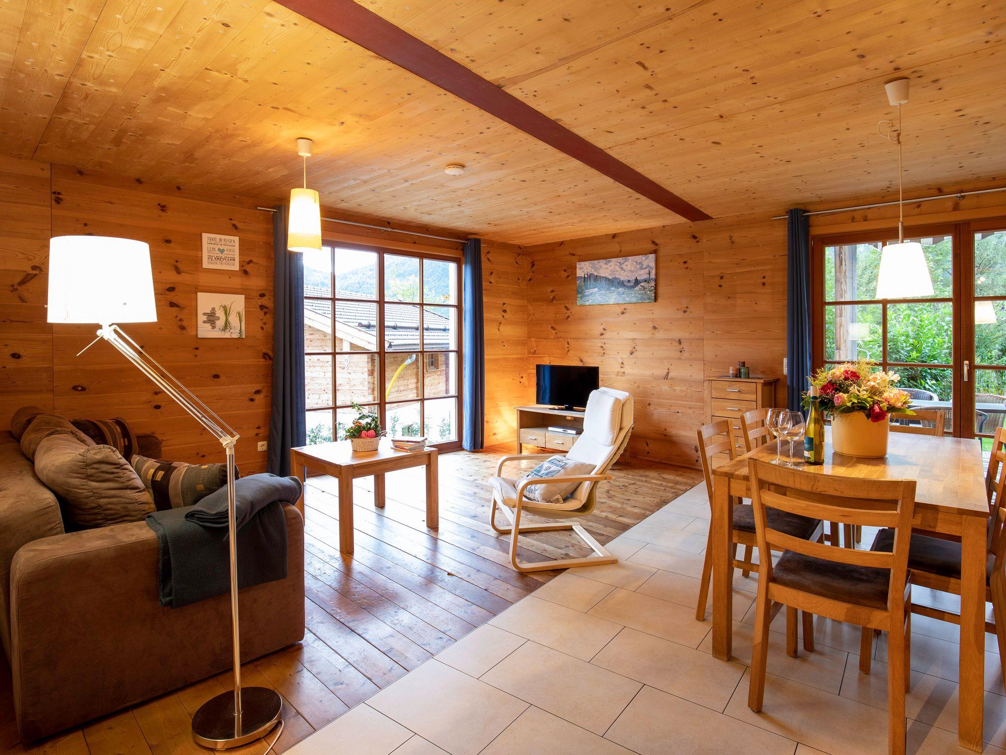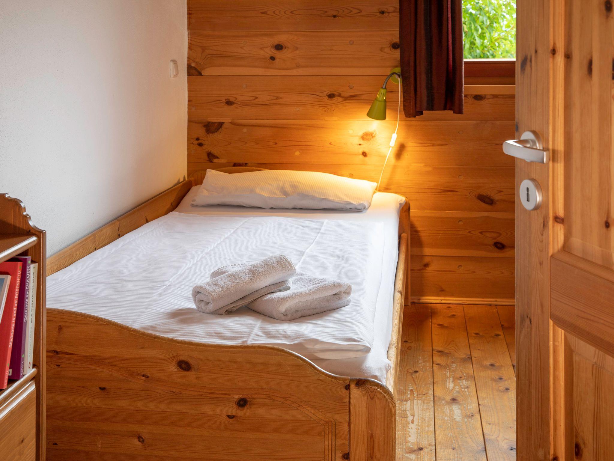 Die großzügig, helle und gemütliche mit Mondphasenholz und Lehm gestaltete 64 qm Nichtraucher Ferienwohnung im Erdgeschoss mit großzügiger Süd-Terrasse und Panoramablick auf die Kampenwand, lädt durch ihre Naturholzmöbel mit Wohlfühlambiente, Fußboden- und Wandheizung zum Erholen ein. Genießen Sie Ihre Auszeit in einem großen Wohnraum mit offener Küche und Essplatz. Der Wohnbereich mit Schlafcouch, SAT-Flat-TV, Internetanschluss, kostenloses W-LAN, die voll ausgestattete Küche mit 4-Platten-Cerankochfeld/Backofen, Geschirrspüler, Kühlschrank/Tiefkühlfach, Moccamaster Kaffeemaschine, Wasserkocher und Toaster. Zwei separate Schlafzimmer: Ein Schlafzimmer mit einem Doppelbett und das zweite Schlafzimmer mit einem Einzelbett mit Ausziehbett. Das Ausziehbett ist in Form einer Unterschublade gestaltet und lässt sich einfach ausziehen. Badezimmer mit Natursteindusche, Fußboden- und Wandheizung, WC und Föhn. Bettwäsche und Handtücher sind vorhanden.