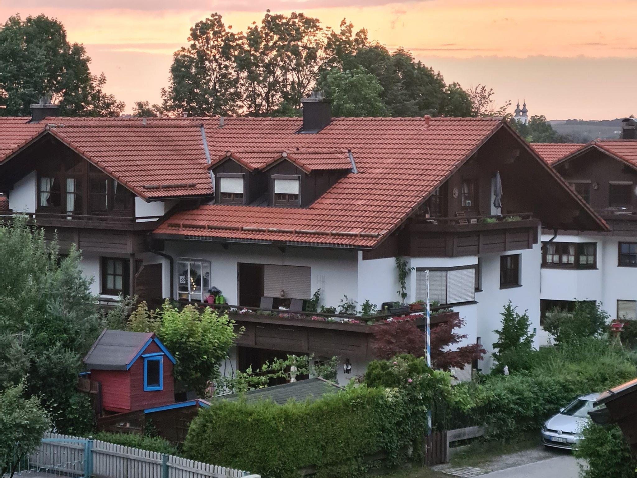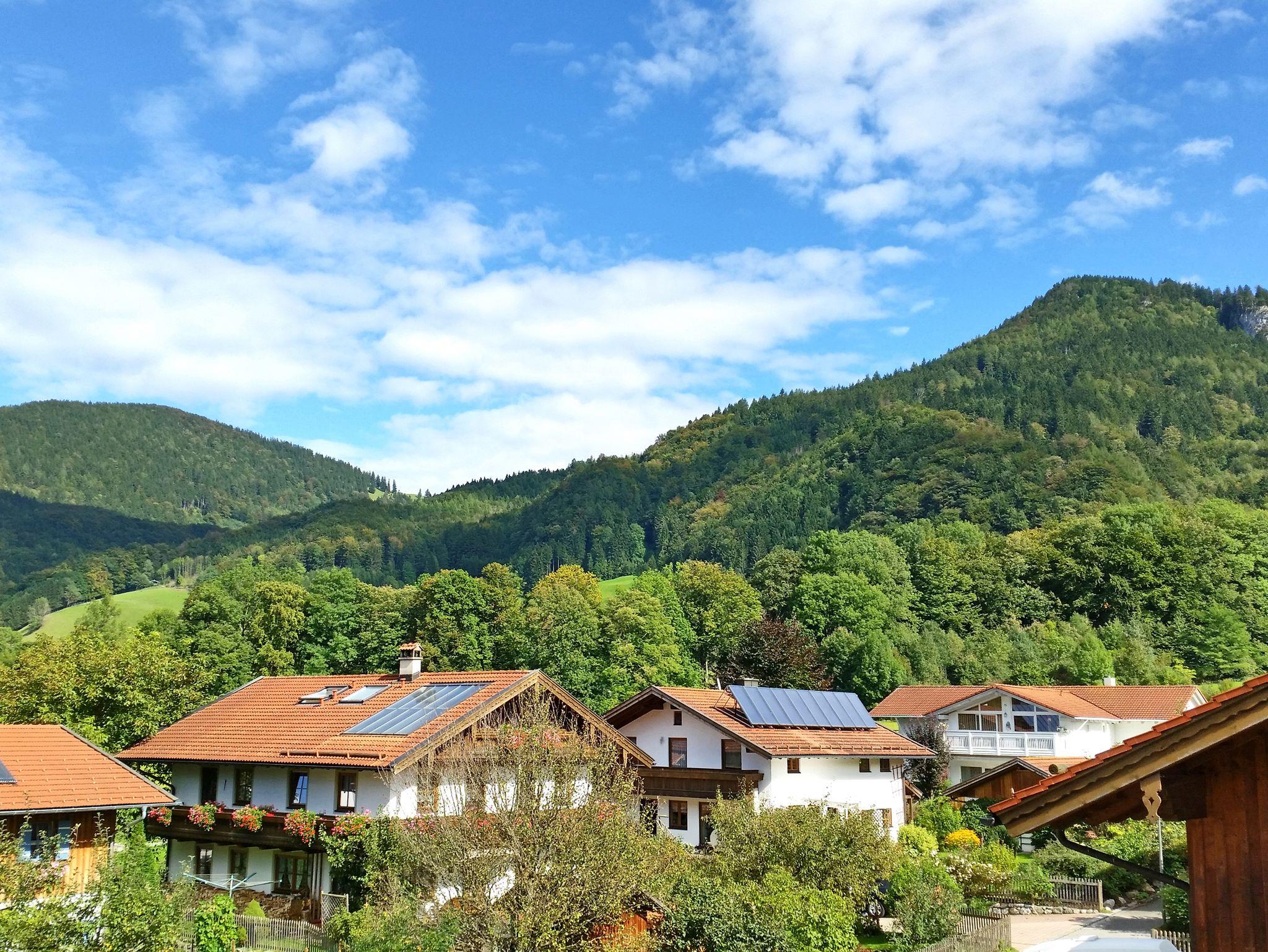 Ruhig gelegen zwischen Schloss Hohenaschau und Kampenwand mit wunderschönem Blick auf Wald und Berge. Die Ferienwohnung ist Teil eines sehr gepflegten Hauses, im üblichen bayerischen Stil mit einem holzverkleideten Balkon. Spielmöglichkeiten für Kinder durch kleinen Spielplatz und Sackgasse/Spielstraße. Eigene Waschmaschine im großen Waschkeller, steht kostenlos zur Verfügung. Platz für Fahrräder, Spielzeug, Skier und Schlitten in der Tiefgarage. Auf Anfrage Kinderbett und Kinderstuhl vorhanden, Fahrradkeller und Abstellmöglichkeit vor dem Haus.