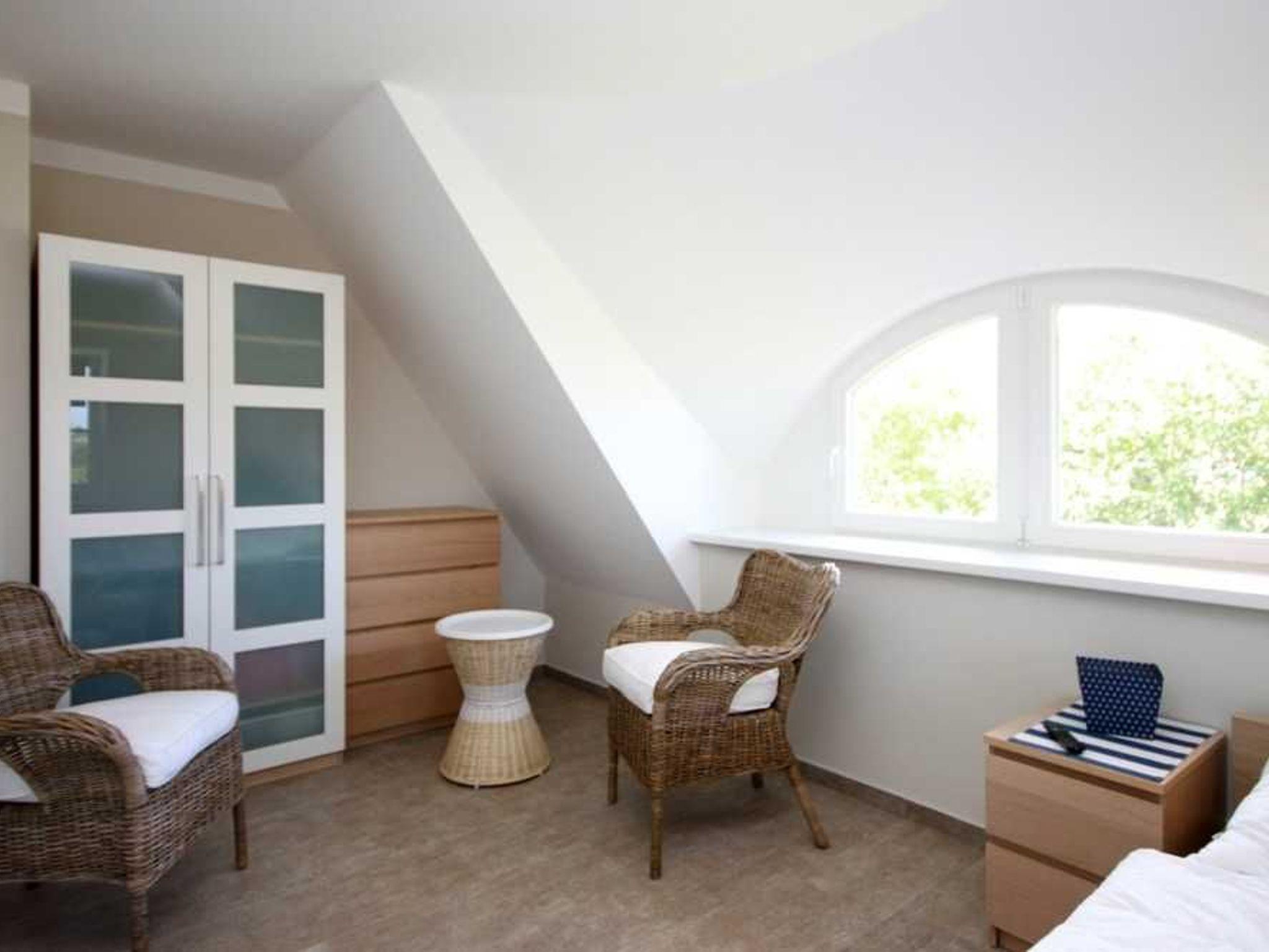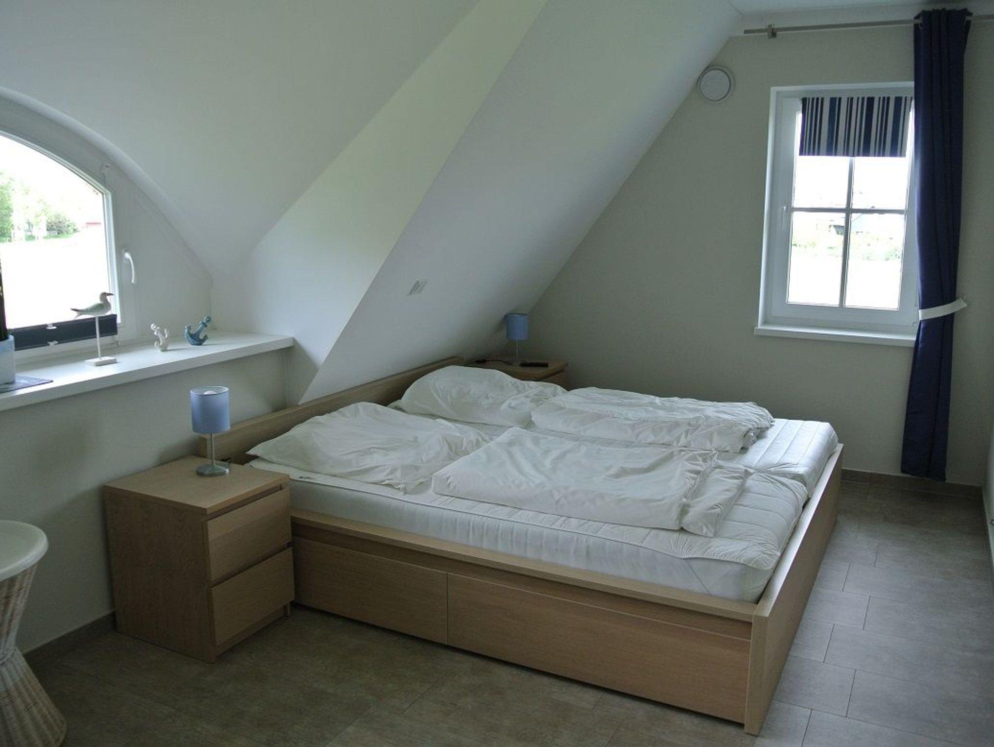 Im Obergeschoss befindet sich das zweite großzügig und hell angelegte Badezimmer mit Dusche und Handtuchtrockner. Beide sich im Obergeschoss befindlichen Schlafzimmer sind mit geräumigen Kleiderschränken, Sitzgelegenheiten und Kommoden sowie zwei Doppelbetten (1,80 x 2,00 m) mit Einzelmatratzen ausgestattet. Zum besseren Einschlafen kann in beiden Räumen auf den installierten Flat-TV Fernsehen geschaut werden.