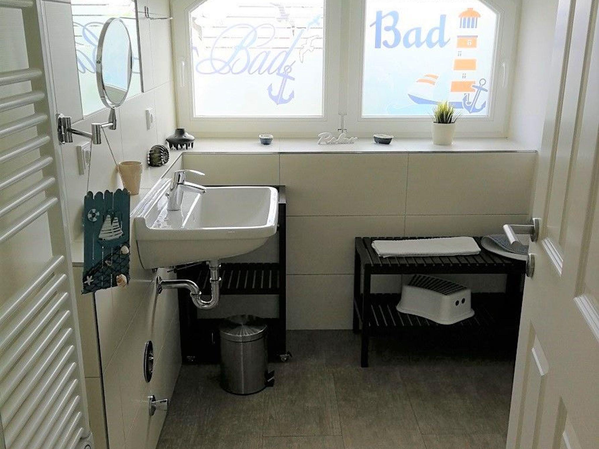 Im Erdgeschoss befindet sich das erste Bad inkl. Dusche, Fön und Handtuchtrockner.
