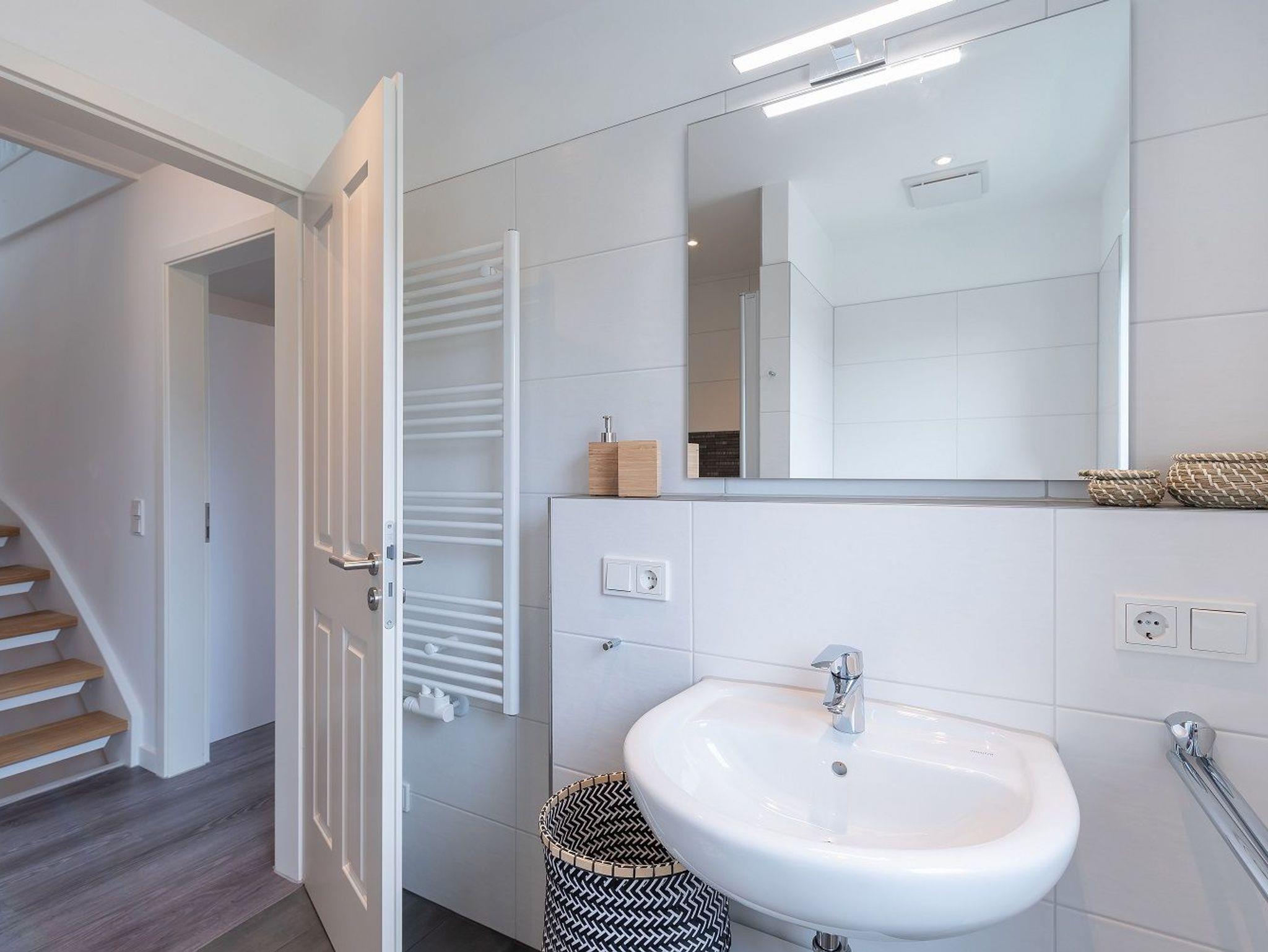 Im Erdgeschoss erwartet Sie ein großer und lichtdurchfluteter Wohn- und Essbereich mit offener Küche. Das Bad besticht mit ebenerdiger Dusche, Föhn und Handtuchtrockner. Zudem können Sie Ihr Reisegepäck in einem separaten Abstellraum verstauen.