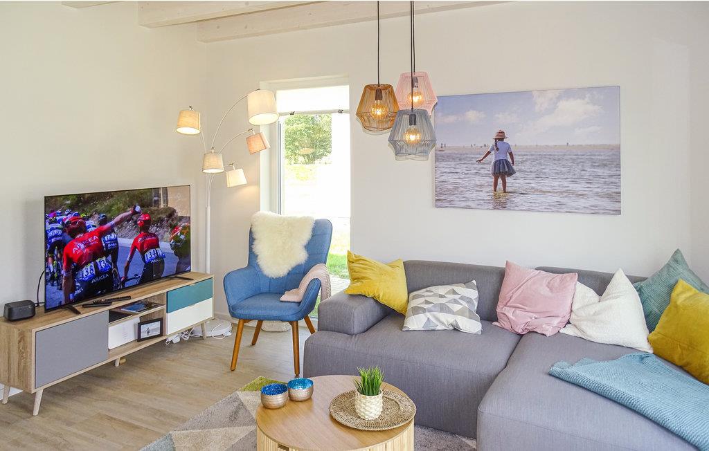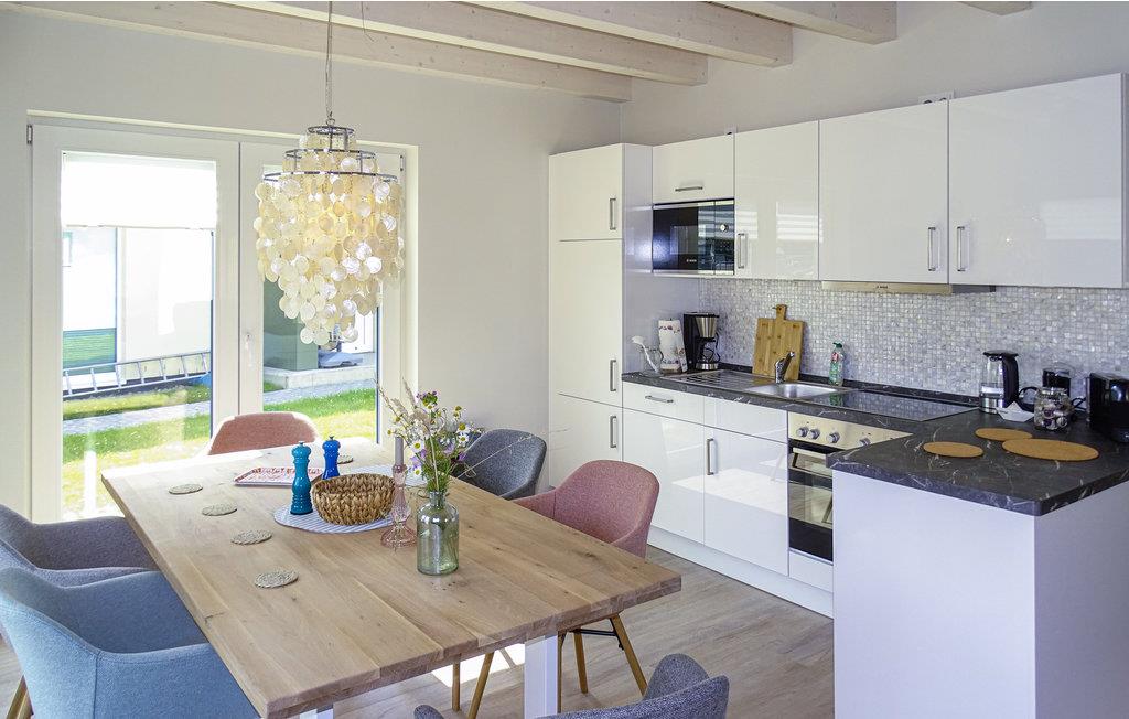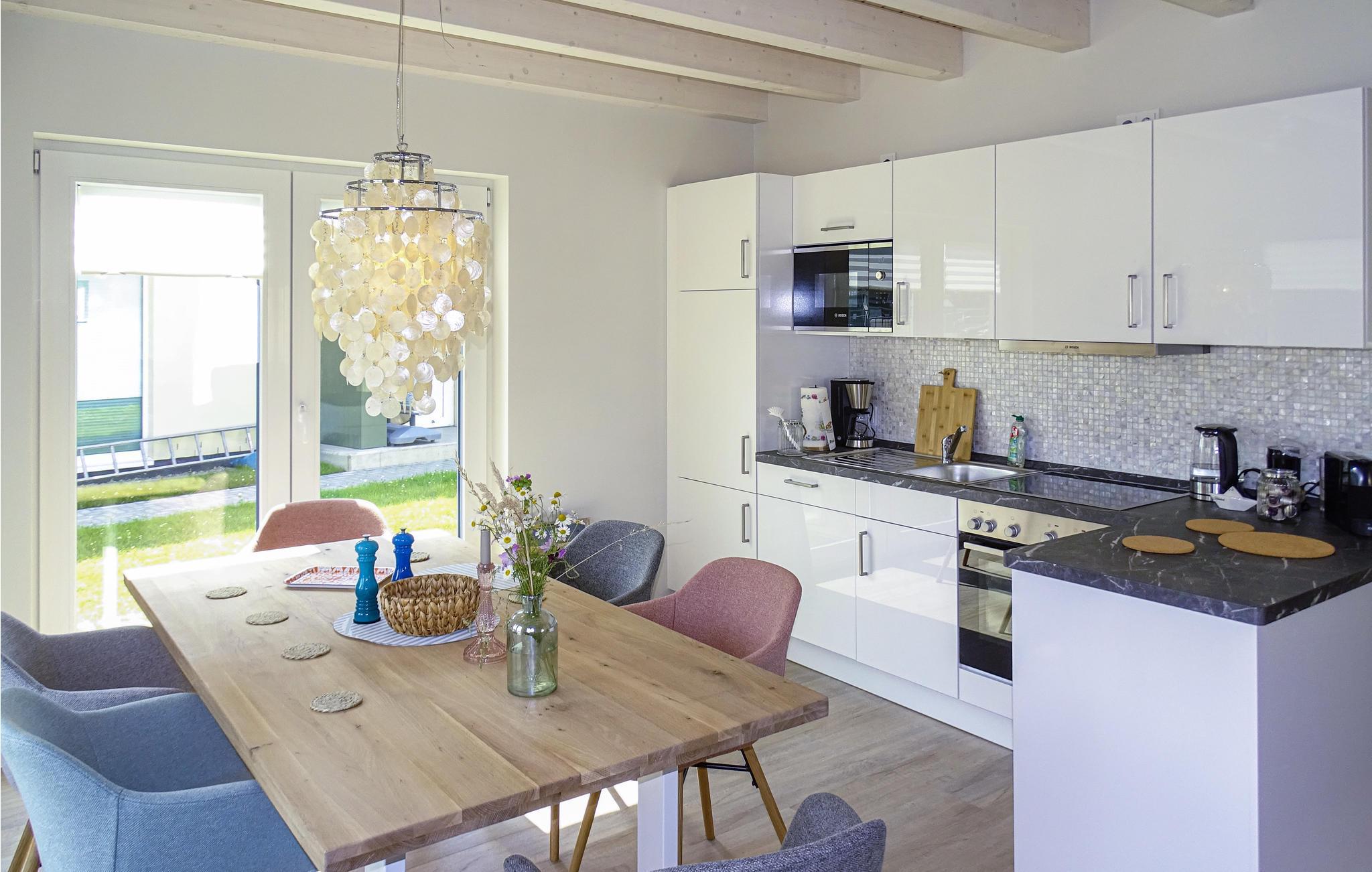 Sie betreten Ihr 2021 gebautes Haus "Küstenkind" über das Eingangsportal und treten in den kleinen Flur, vom dem Sie in das Schlafzimmer im Erdgeschoss, das Duschbad mit Sauna sowie den modern und gemütlich eingerichtetem Wohnraum mit offener Küche mit guter Ausstattung und Essbereich gelangen. Außerdem geht es von dort über die Treppe in den 1. Stock mit zwei weiteren Schlafzimmern und dem Badezimmer. Das ganze Haus ist modern und maritim eingerichtet, so dass Sie sich hier gleich wohlfühlen werden.