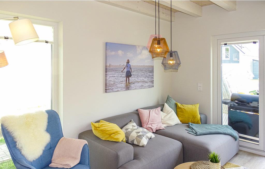 Modernes Ferienhaus Küstenkind mit Sauna und Terrasse nahe Nordseedeich in Büsum.