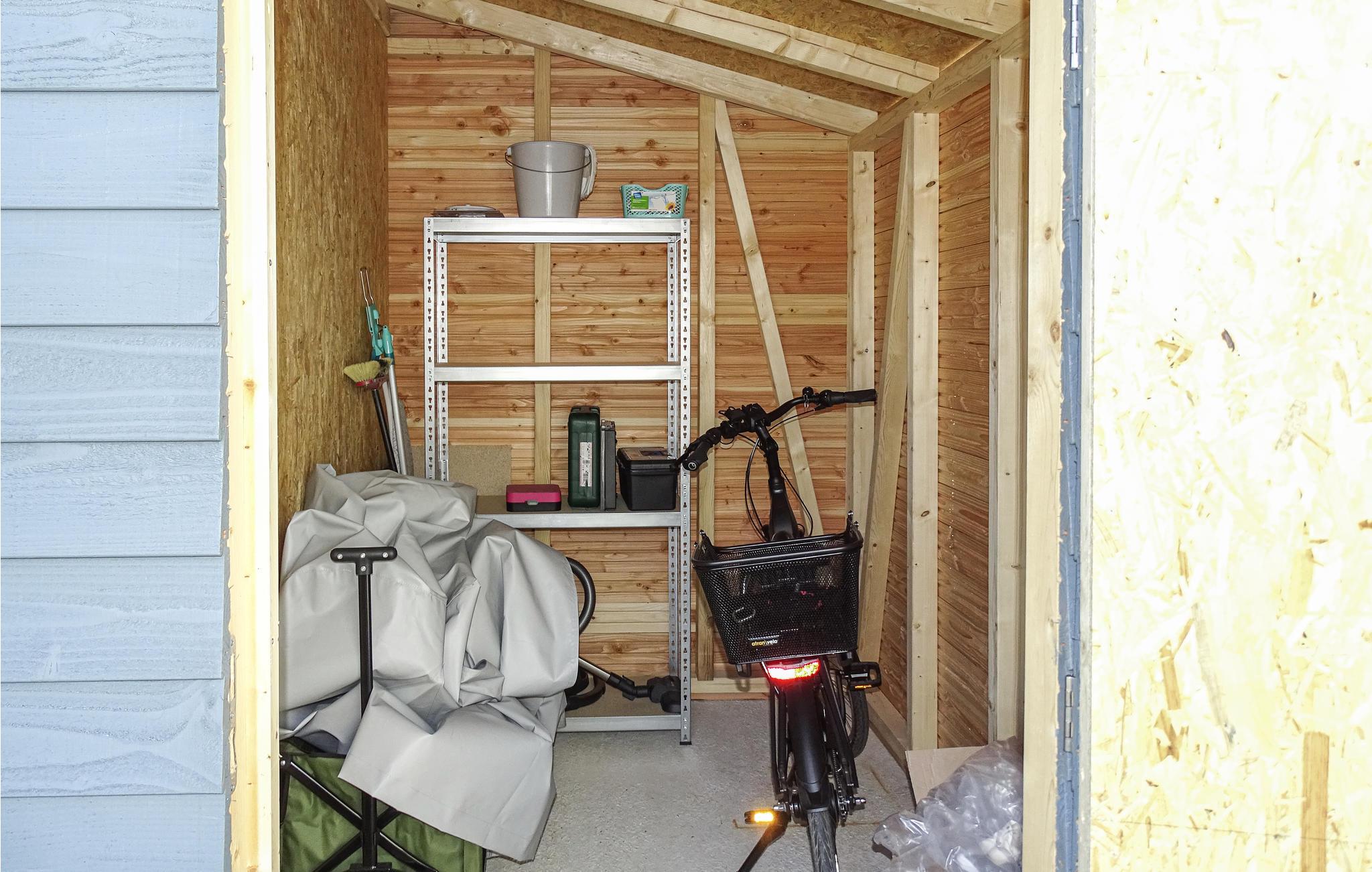 Vom Wohnbereich treten Sie auf eine großzügige Terrasse mit Gartenmöbeln, wo Sie viel Zeit im Freien verbringen können. Die Grünfläche am Haus ist nutzbar und neben dem Apartment befindet sich ein abschließbarer Fahrradschuppen mit Bollerwagen.
