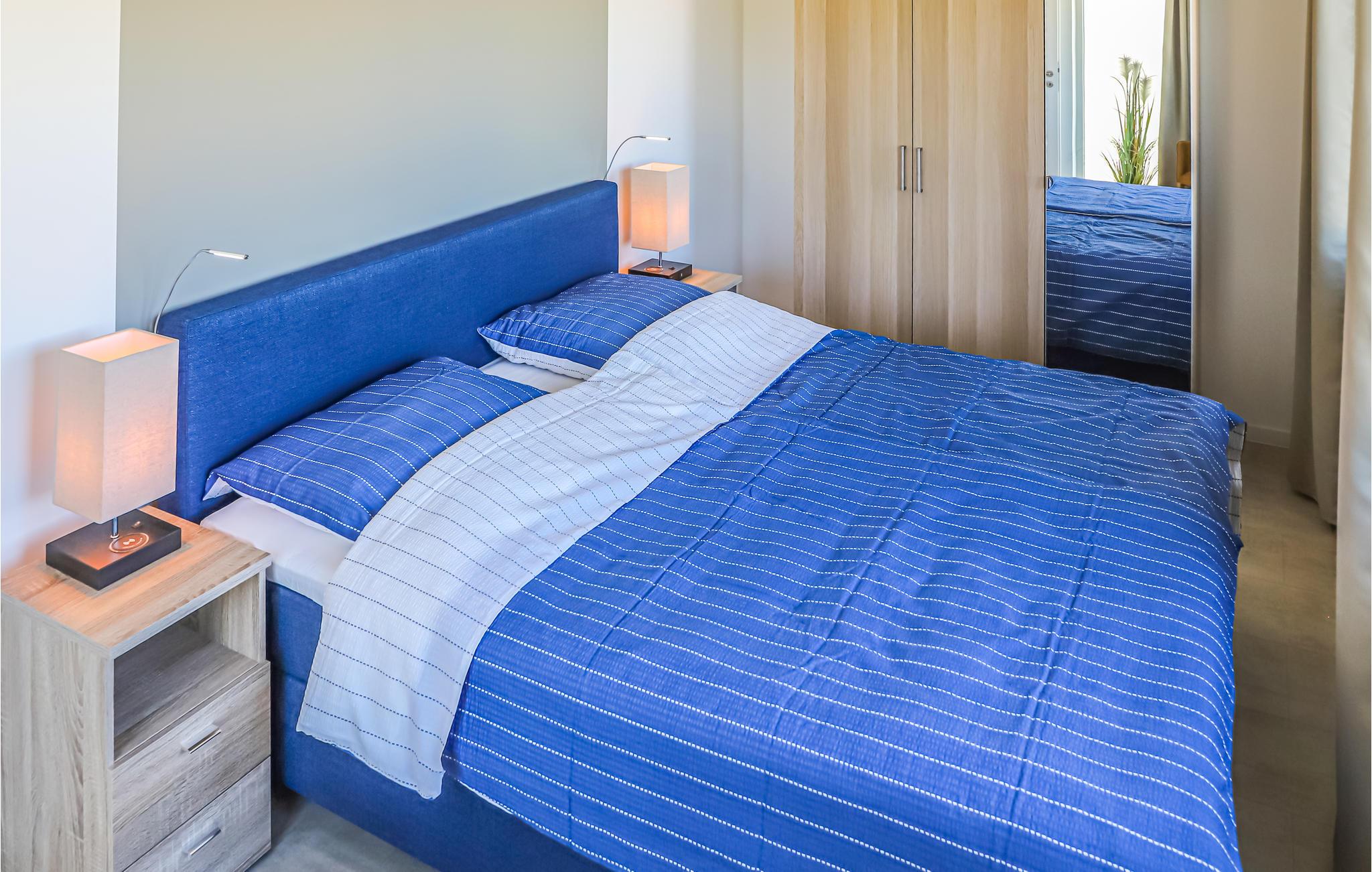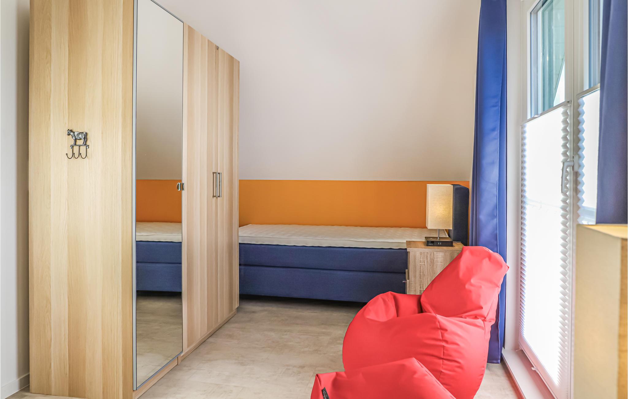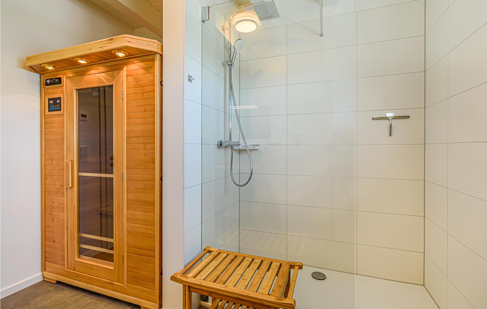 Außerdem geht es von dort über die Treppe ins OG mit zwei weiteren Schlafzimmern und Badezimmer mit Wanne. Das ganze Haus ist modern und maritim eingerichtet, sodass Sie sich hier besonders wohlfühlen werden. In der Infrarot-Sauna können Sie sich wunderbar entspannen.