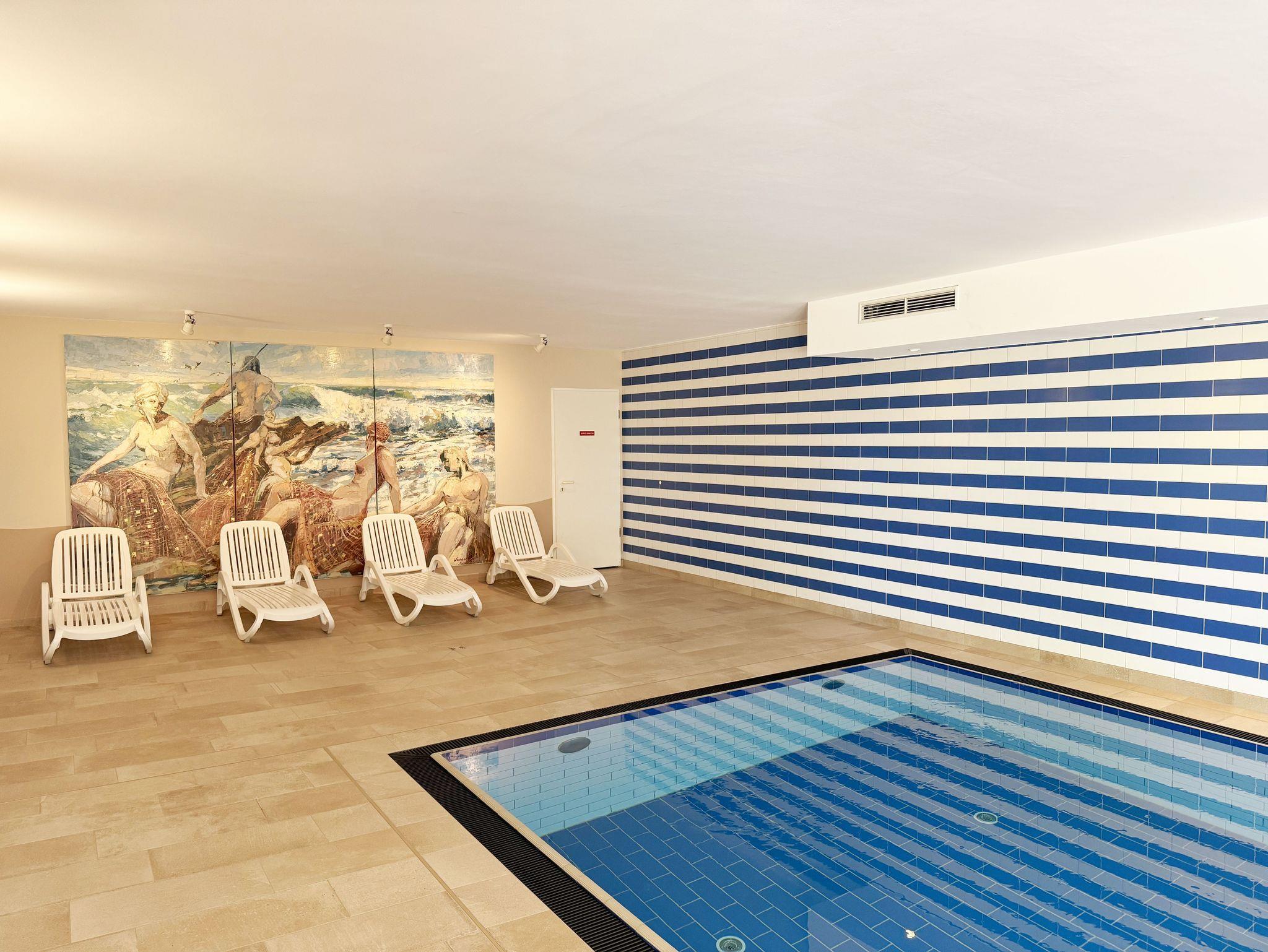 Herzlich willkommen in Ihrer Ferienwohnung direkt am Meer. Sie wohnen in einer Zweizimmerwohnung (Nichtraucher) mit ca. 62 Quadratmetern im 2. Stockwerk, welche exklusiv für max. 2 Personen ausgestattet ist. Diese erreichen Sie bequem mit dem Fahrstuhl. Wo Sie dann nur noch ein Flurbereich trennt um in Ihre „mit viel Liebe zum Detail“ Wohnung zu gelangen. Die Wohnung sticht hervor durch ihre sehr hochwertigen Möbel, einer erstklassig eingerichteten Küchenzeile, Cerankochfeld, Spülmaschine, Backofen, Mikrowelle, Kühlschrank auf Augenhöhe mit Gefrierfach, Wasserkocher, Toaster, Kaffeemaschine, Nespresso-Kapsel Maschine incl. Milchaufschäumer und anderen praktischen Helfern. Zusätzlich erwartet Sie ein Essplatz mit Blick durch lichtdurchflutete bodentiefe Fenster auf die große bestuhlte Dachterrasse Hochwertige Dedon-Terrassenmöbel bestehend aus einem Tisch mit bequemer Bestuhlung, sowie Sonnenliegen, 2 großen Sonnenschirmen sowie einer hochwertigen Aufbewahrungsbox, runden diesen Bereich ab. Genießen Sie hier gerne den ganzen Tag die Sonne mit einem schönen Panoramablick in Richtung Kurpark, Müther Schalenbau und die wunderschöne Baumreihe, die auch einen Blick auf die Ostsee erlaubt. Zur elektronischen Ausstattung im Wohnbereich gehören ein großer Smart-TV, Apple TV mit Sky (Auswahl von Sport, Film, Dokumentation), ein Blue Ray-Player, eine Musikanlage mit DAB-Radio und USB-Anschluss sowie integrierten CD-Player, ein kostenfreier WLAN-Zugang welcher auch „Home-Office“ (250 Mbit/s) ermöglicht. Dies alles können Sie auf Ihrer großzügigen und bequemen DeSede Ledercouch mit Couchtisch, Ohrensessel, Leselampe und Sideboard genießen. Im separaten Schlafzimmer mit Smart-TV, großzügigem Kleiderschrank, Insektenschutzgitter, Plissee´s zum Abdunkeln und einem komfortablen Doppelbett (1,80m x 2,00m) mit Taschenfederkernmatratzen und Geltex-Polsterung sowie Nachttischablagen können Sie entspannt Ihrem nächsten Urlaubstag an der Ostsee entgegenträumen. Im innenliegenden Badezimmer finden Sie unter anderem eine bodentiefe Echtglasdusche, ein WC, einen raumgroßen Spiegel, einen Kosmetikspiegel, einen Fön und einen Handtuchtrockner. Im Abstellraum können Sie gerne Ihr Reisegepäck abstellen, wo Sie unter anderem auch Reinigungsutensilien, einen Wäscheständer und Staubsauger finden. Ein Haustier ist gegen eine Gebühr ein gern gesehener Gast. Ein eigener PKW-Stellplatz (Nr.35, Einfahrtshöhe 2,00m) befindet sich in der Tiefgarage des Hauses. Im Keller des Hauses haben Sie die Möglichkeit eine Waschmaschine/Trockner gegen Gebühr zu nutzen. Mit dem Fahrstuhl des Hauses A gelangen sie in das Untergeschoss der Meeresblickanlage, wo Sie ein großzügiger und heller Wellnessbereich erwartet. Hier können sie in einem Pool kleine Bahnen schwimmen, in 2 Saunen Ihren Kreislauf in Schwung bringen, in einem dazugehörigen Ruheraum Ihren Körper wieder beruhigen, in einer Schneckendusche sowie weiteren Duschen das kühle Nass genießen und auf einer Außenterrasse mit Außendusche die frische Luft einatmen. Die Erstausstattung eines Wäschepaketes (komplette Bettwäsche, 1 Duschhandtuch, 2 kleine Handtücher) können Sie bis 14 Tage vor Anreise gegen einen Aufpreis dazu buchen oder durch eigene ergänzen. Ab 2 gebuchten Paketen erhalten Sie einmalig 1 Geschirrhandtuch und 1 Duschvorleger dazu.