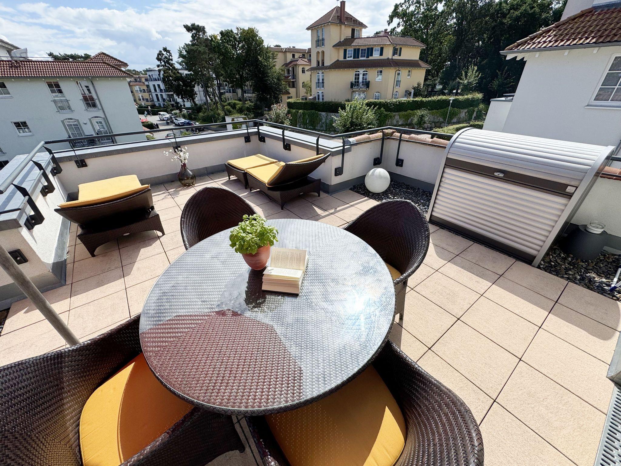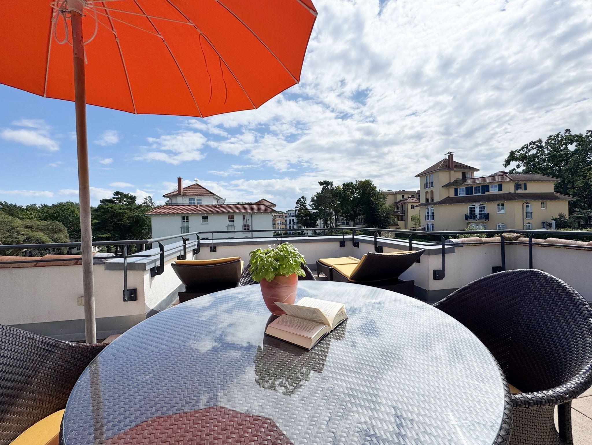 Modernes Apartment mit Dachterrasse und Meerblick in Baabe, nur 80 Meter vom Strand entfernt.