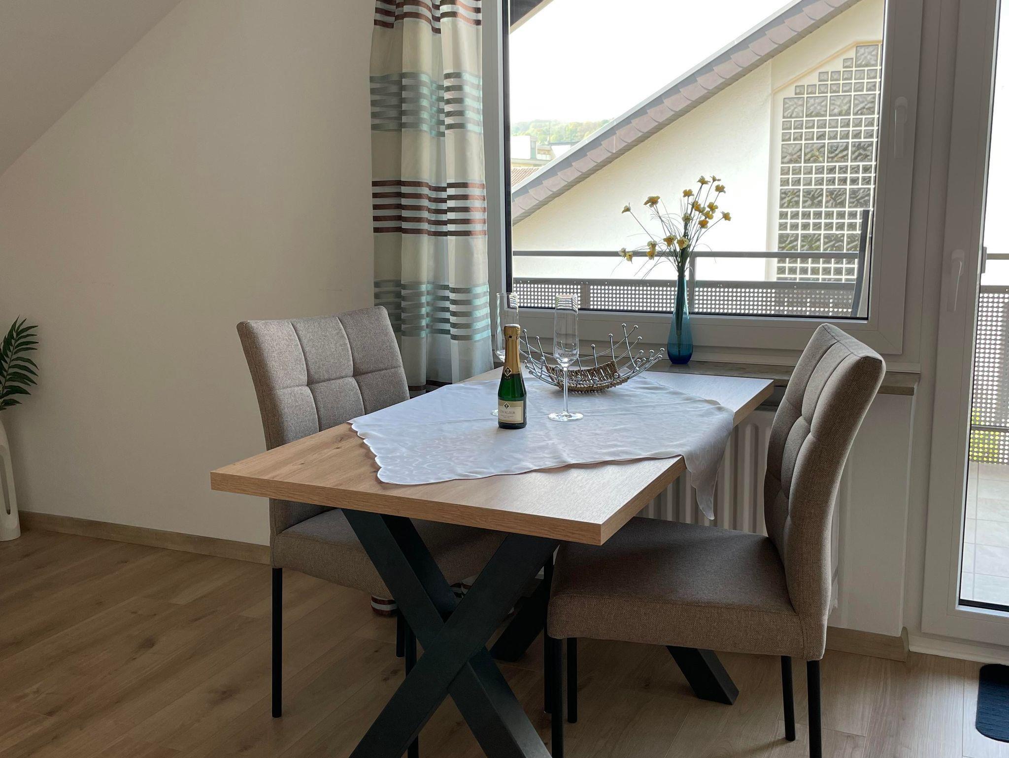 Lassen Sie den Tag auf unserem großen möblierten Südwest-Balkon bei einem Glas Wein ausklingen und genießen Sie die letzten Sonnenstrahlen des Tages mit Blick auf den schönen Pfälzer Wald und Bergzaberns Aussichtsturm, den hölzernen Bismarckturm.