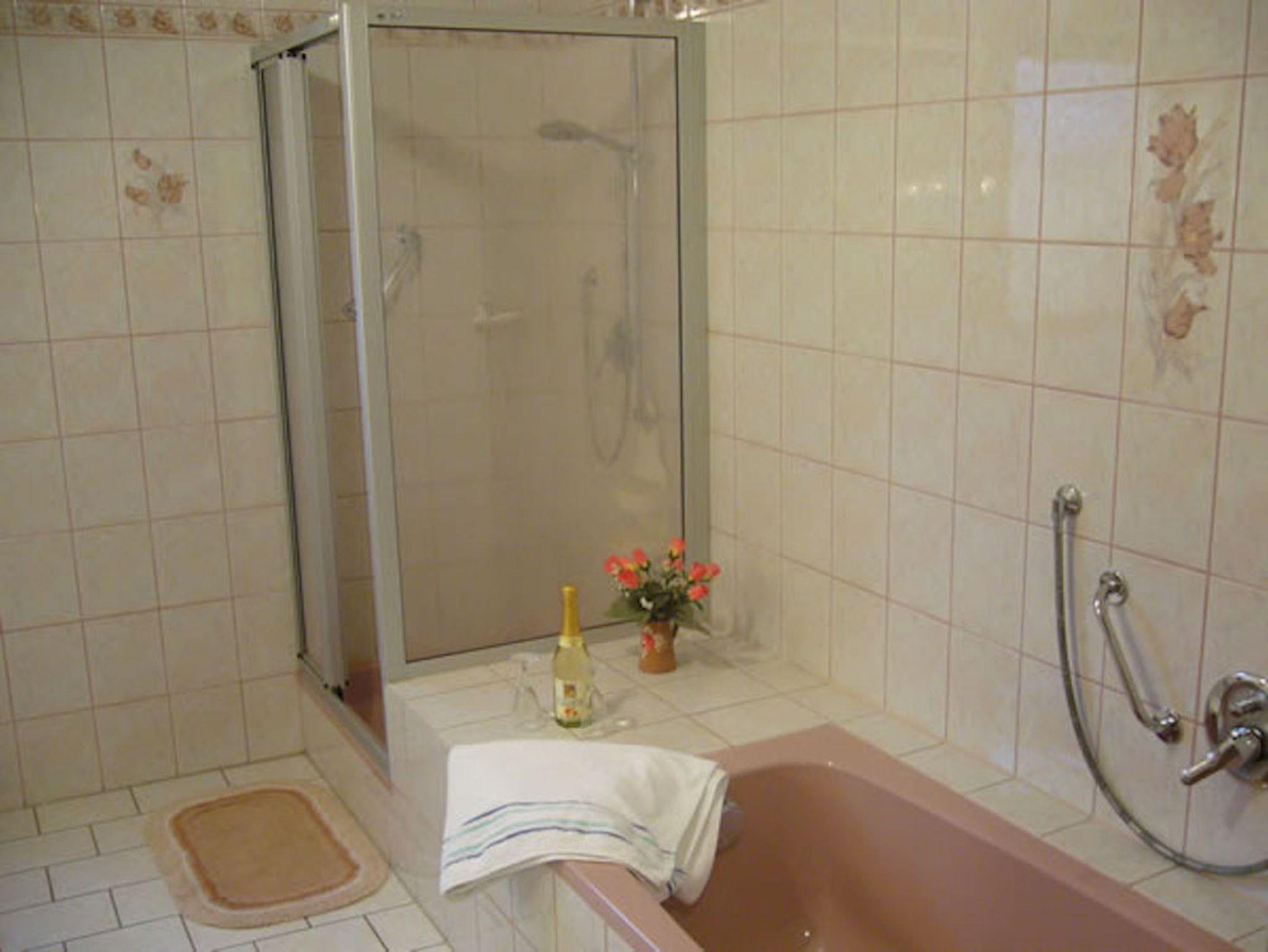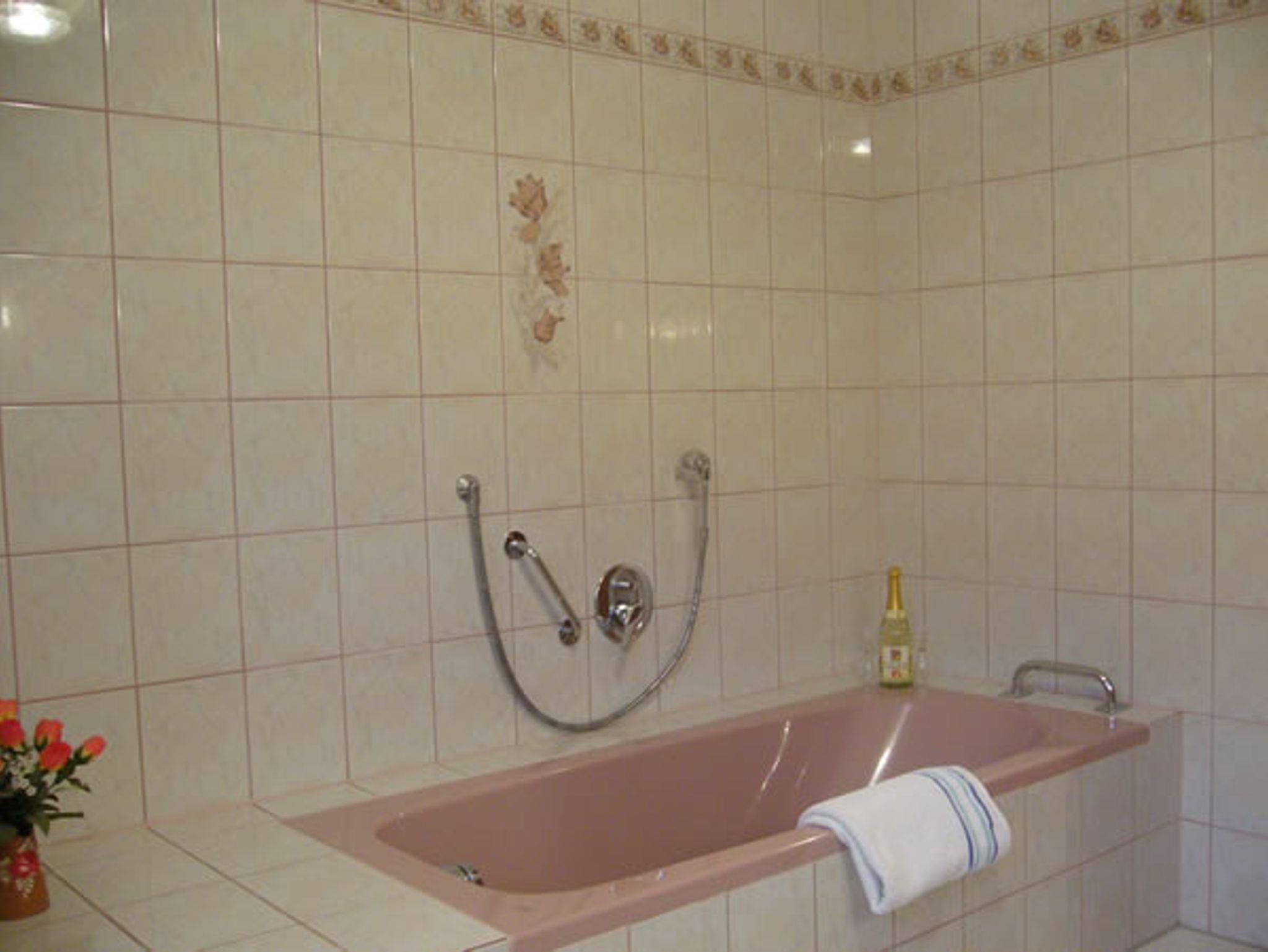 Großes Bad/DU + Wanne mit Haltegriffen + Duschmatte, Duschhocker!