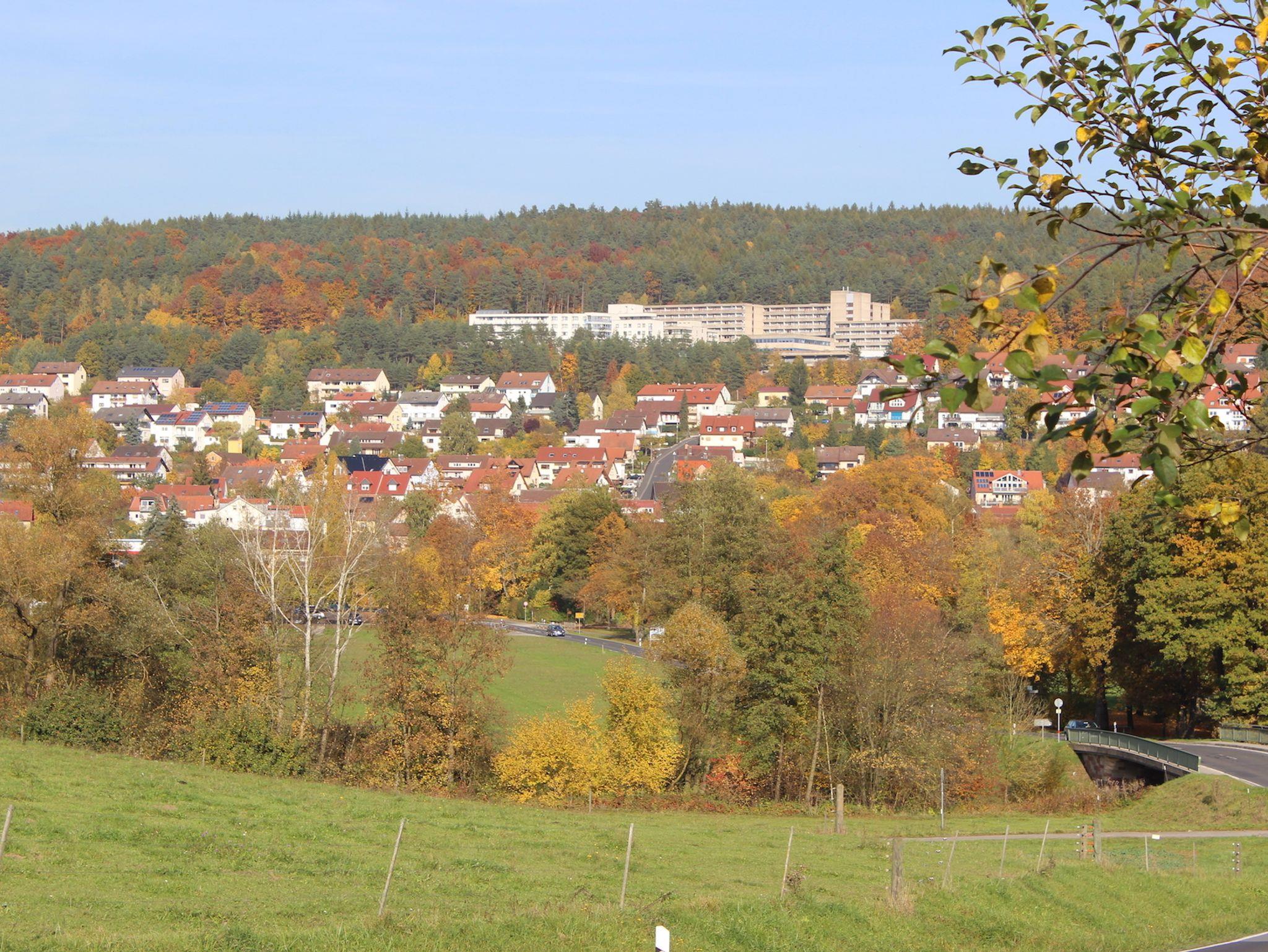 von Osten über die A71 Erfurt-Suhl-Schweinfurt, Abfahrt Bad Kissingen-Oerlenbach oder Münnerstadt/Bad Bocklet,