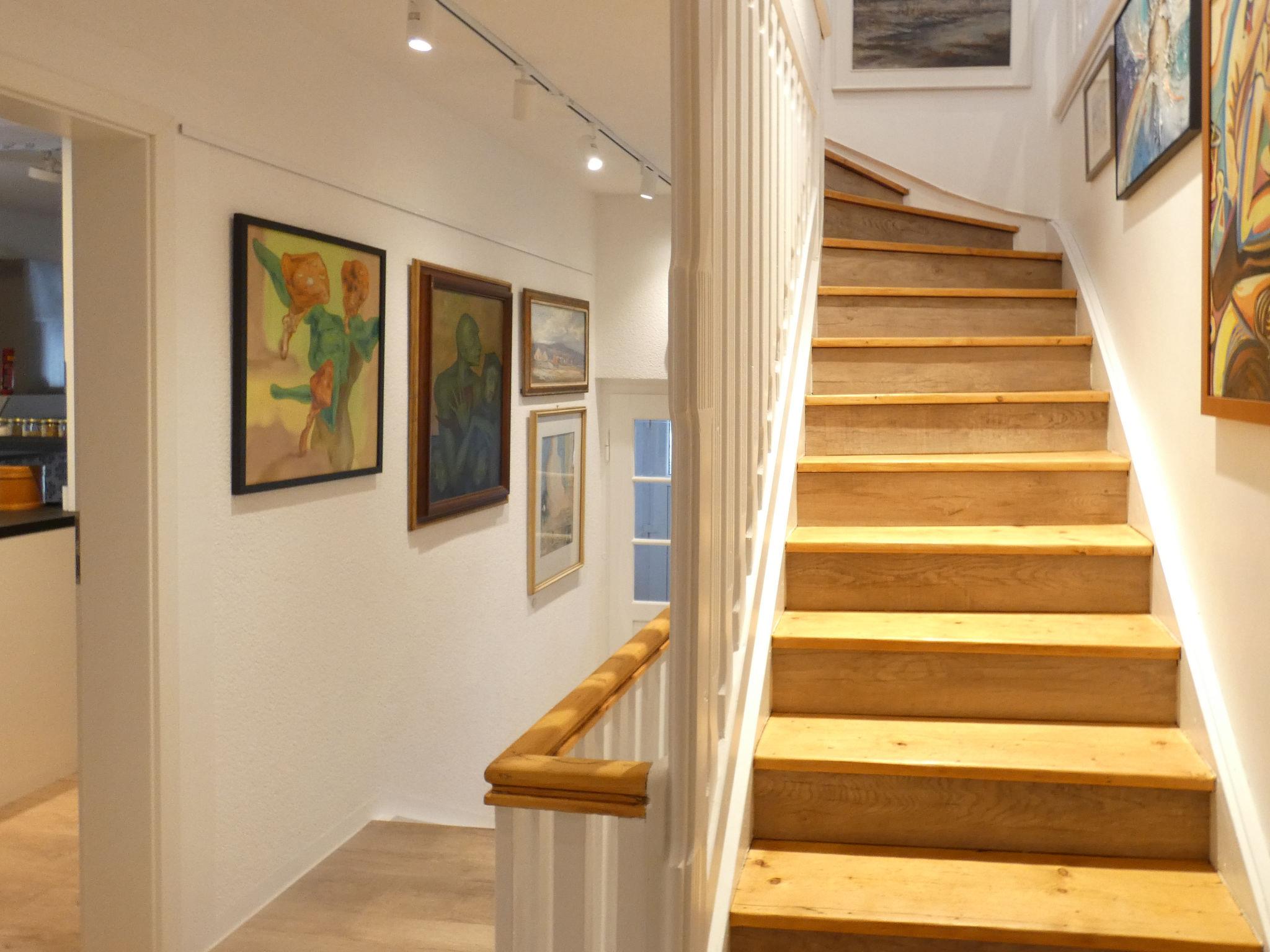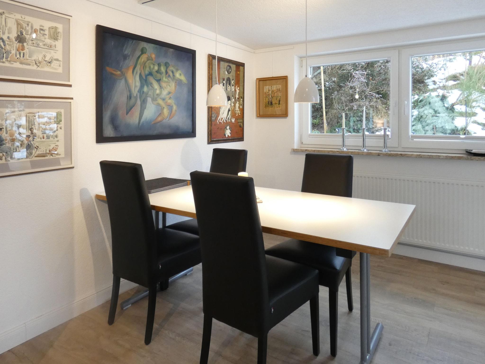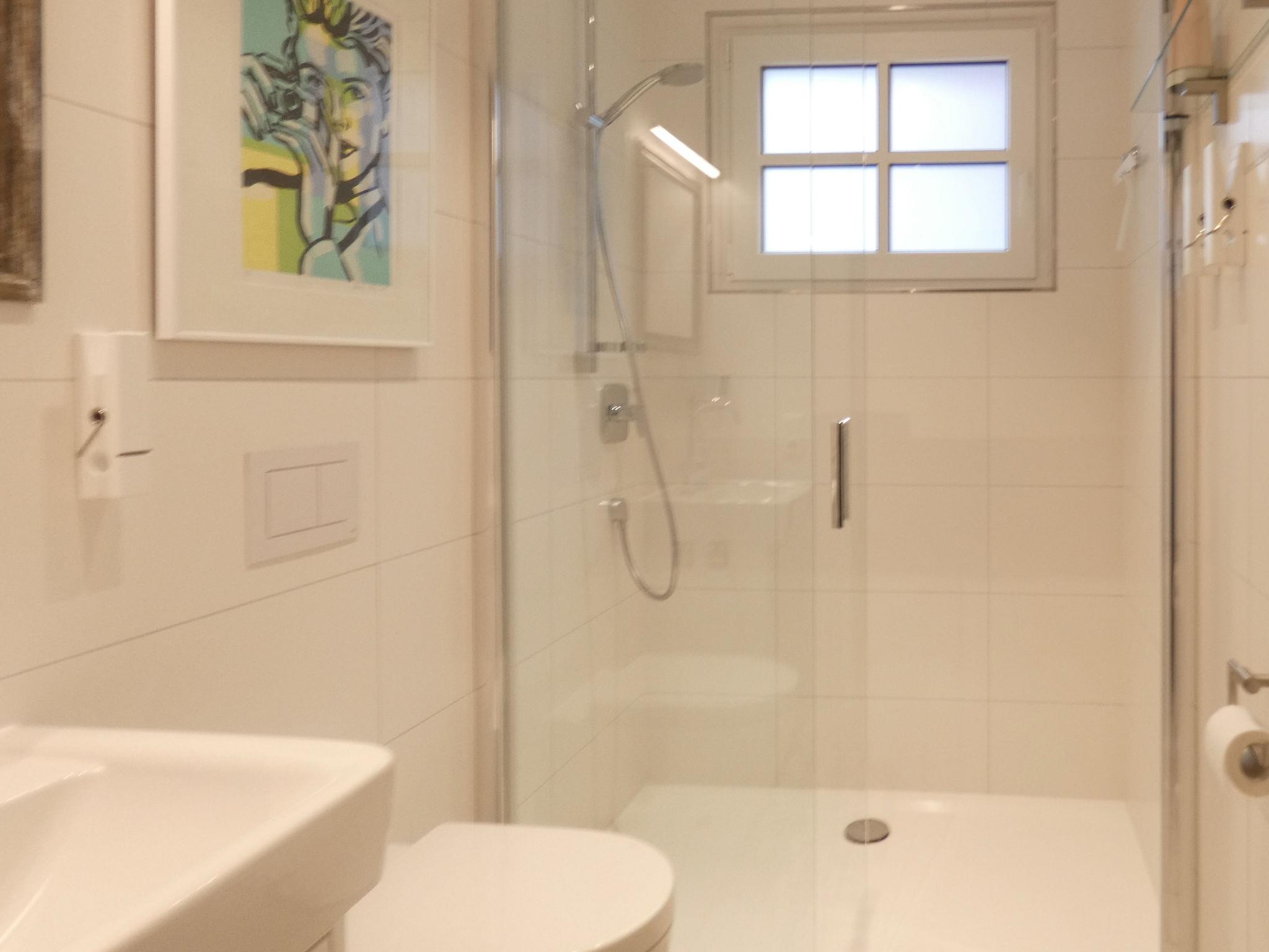 6-Zimmer-Haus 130 m2 auf 3 Stockwerken. Komfortabel und schön eingerichtet: Wohnzimmer mit Sat-TV (Flachbildschirm), Radio, Stereoanlage, DVD und DVD Sammlung vorhanden. Esszimmer mit Radio und CD. Ausgang zur Terrasse. 1 Zimmer mit 1 Doppelbett (180 cm, Länge 200 cm), Sat-TV (Flachbildschirm). 1 kleines Zimmer mit 1 Doppelbett (180 cm, Länge 200 cm), Sat-TV (Flachbildschirm). Grosse, offene Küche (Backofen, Geschirrspüler, 4 Glaskeramikplatten, Toaster, Wasserkocher, Mikrowelle, Tiefkühler, Grill, elektrische Kaffeemaschine). Dusche/WC, sep. WC. Obergeschoss: 1 Zimmer mit 1 franz. Bett (140 cm, Länge 200 cm). 2. Obergeschoss: 1 abgeschrägtes Zimmer mit 1 Doppelbett (180 cm, Länge 200 cm), Sat-TV (Flachbildschirm). Dusche/WC. G-Heizung, Fussbodenheizung. Terrasse 15 m2, überdacht. Terrassenmöbel, Gartengrill, Liegestühle (2). Zur Verfügung: Waschmaschine, Wäschetrockner, Kinderhochstuhl. Internet (Wireless LAN, gratis). Bitte beachten: Nichtraucher-Haus. Maximal 2 Haustiere/Hunde erlaubt. Rauchmelder, Feuerlöscher. Extras: Weinkühlschrank (Abrechnung nach Verbrauch vor Ort). Kaffevollautomat.
