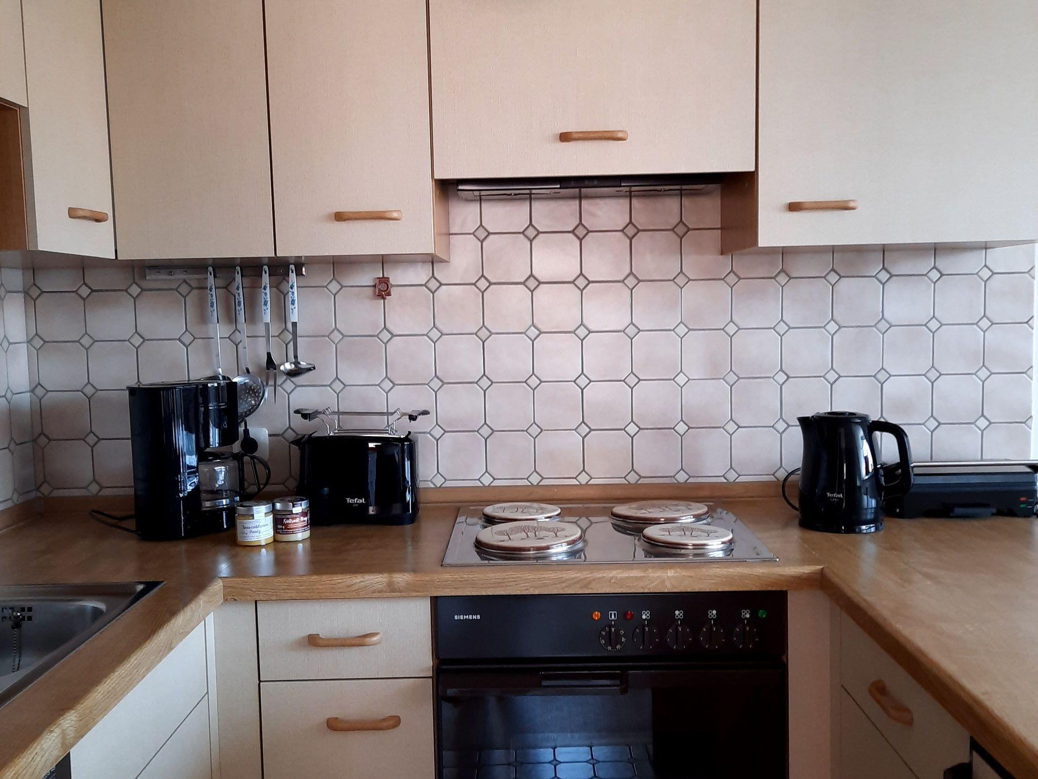 Sämtliches Kücheninventar, sowie Toaster, Kaffeemaschine und Wasserkocher sind vorhanden.