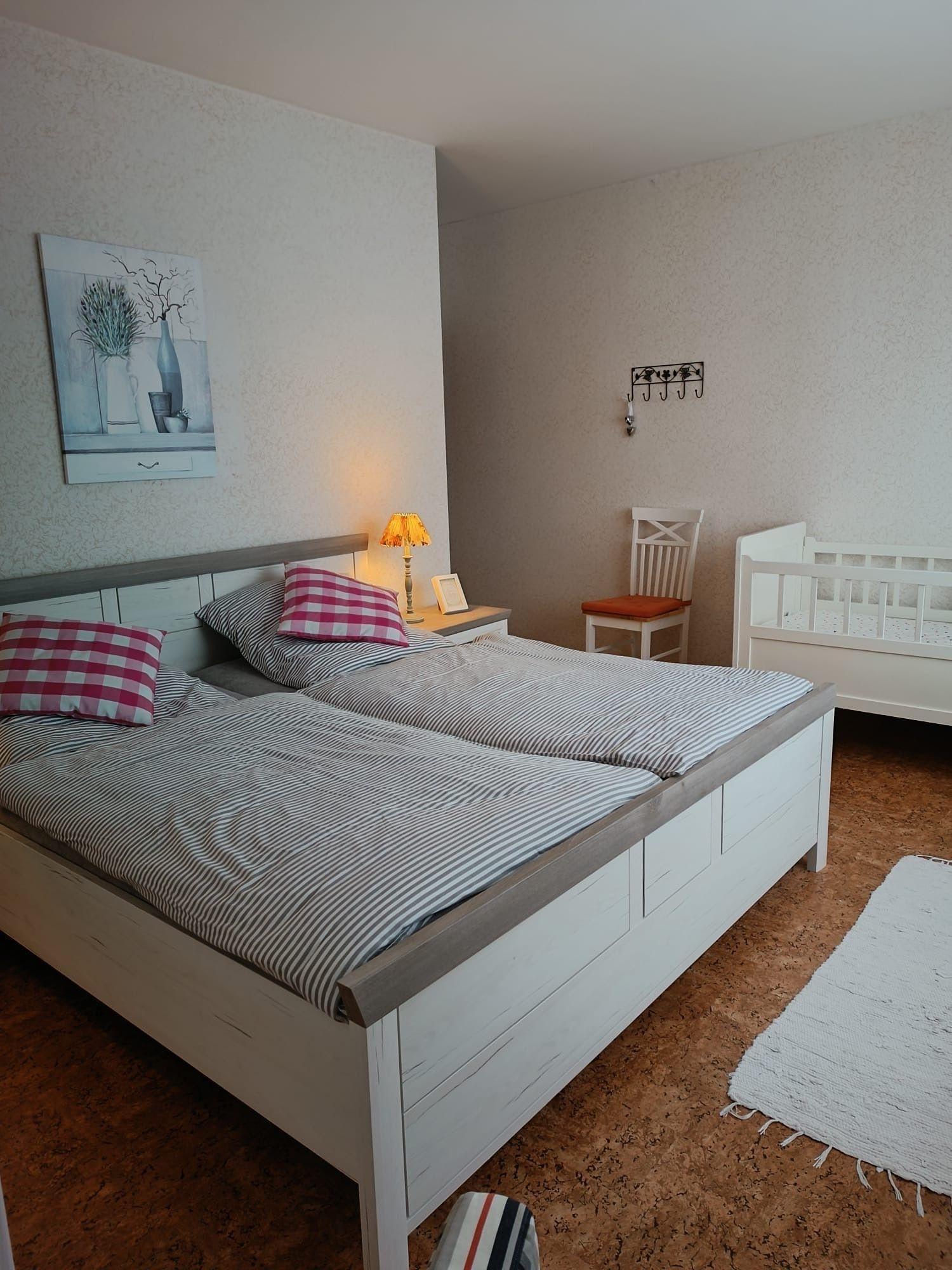 Willkommen in unserer hellen und gemütlichen Ferienwohnung, die sich perfekt für Familien oder kleine Gruppen eignet! Die Wohnung hat zwei separate Schlafzimmer, in denen Sie sich richtig wohlfühlen können. Im Wohnzimmer mit direktem Zugang zum großen Balkon lässt es sich super entspannen und den Blick genießen. Für weitere Gäste gibt es eine Schlafcouch für zwei Personen. Die Küche ist modern und komplett renoviert – ideal, wenn Sie gerne selbst kochen möchten. Auch das Bad ist frisch renoviert und bietet mit zwei Waschbecken und einer Dusche viel Komfort. Eine Waschmaschine ist natürlich auch da. Für Unterhaltung sorgen Sat-Flachbild-TV, eine Stereoanlage, ein DVD-Player und kostenloses WLAN. Wir freuen uns darauf, Sie bei uns willkommen zu heißen und Ihnen eine schöne Zeit zu ermöglichen!