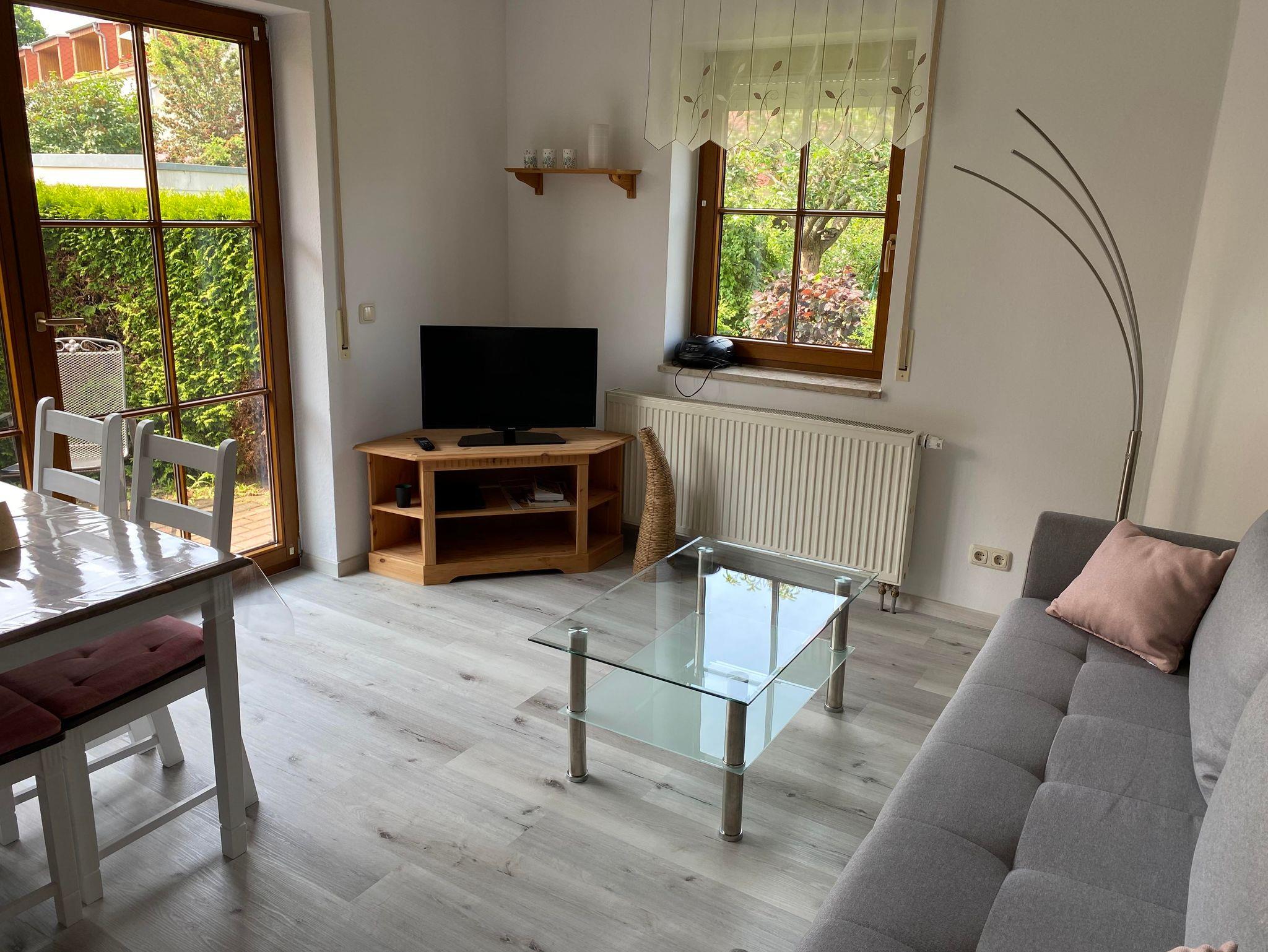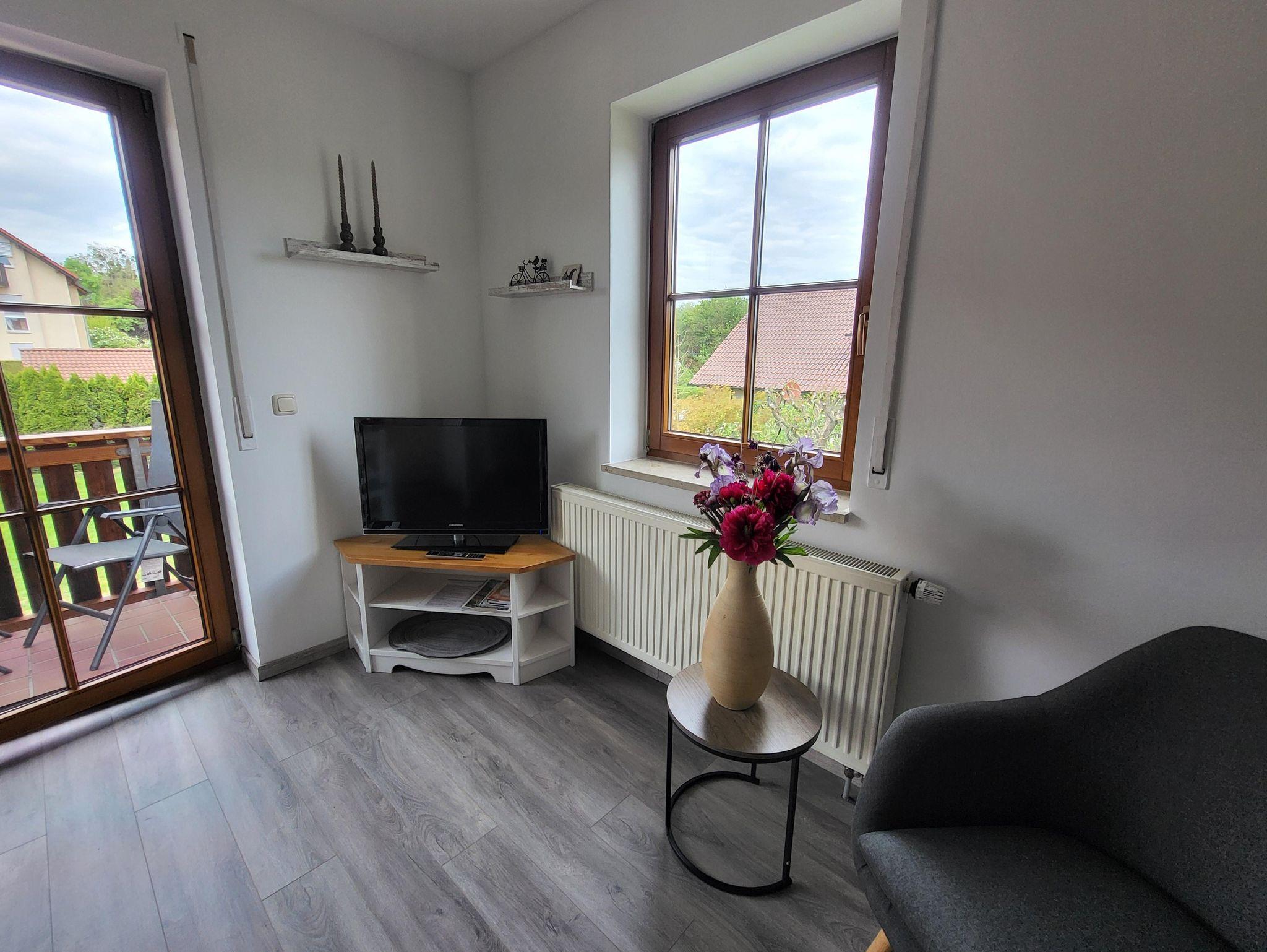 Die Wohnung liegt in der 1. Etage. Der Balkon ist vom Wohnraum aus erreichbar und lädt bei schönem Wetter auch zum Sitzen im Freien ein. Naturlich befindet sich im Wohnzimmer ein Fernseher.