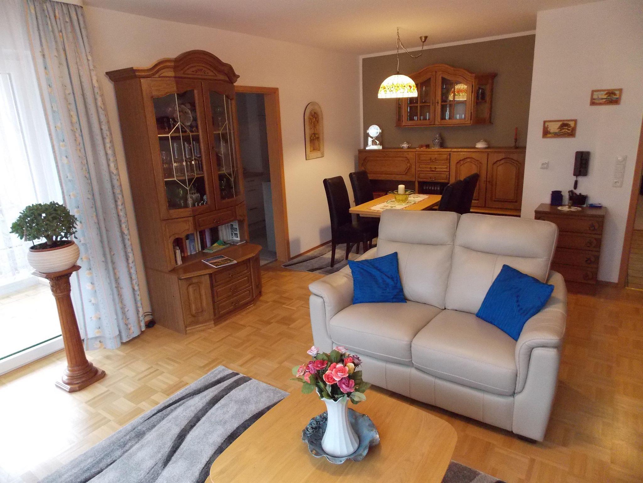 gemütliche 2-Zimmerwohnung im 1. Obergeschoss eines Mehrfamilienhaus in ruhiger Wohnlage. Balkon zum Garten mit seitlichem Blick auf den Rotenfels. Kostenloses WLAN, eigener Parkplatz, Wallbox für E-Auto (gegen Gebühr) und ein Fahrradkeller sind vorhanden. Nichtraucherwohnung. Haustiere sind leider nicht erwünscht.