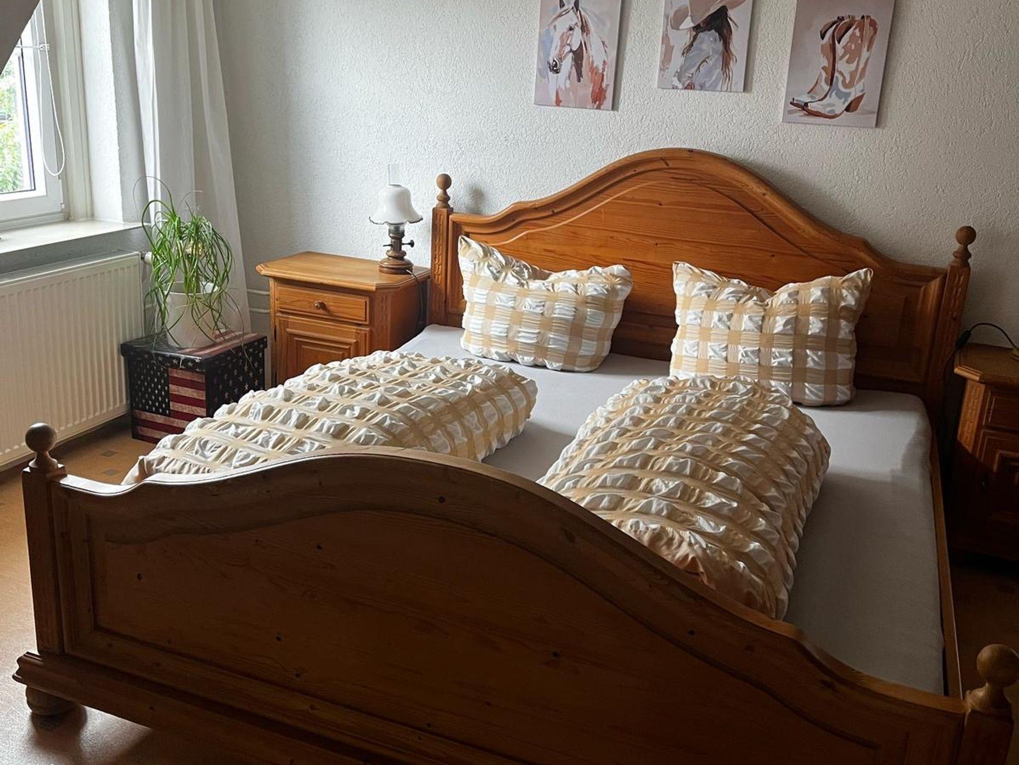 Ein Doppelbett (1,80/2,00m) befindet sich im großen Schlafzimmer im OG. Durch einen Raumteiler optisch getrennt, gibt es ein weiteres Einzelbett (0,90/2,00m) im Schlafzimmer.