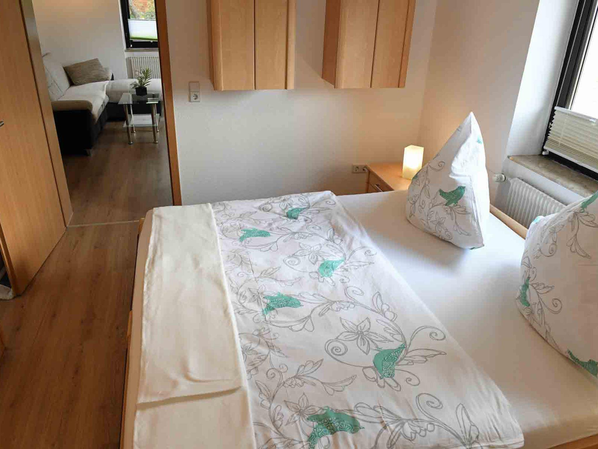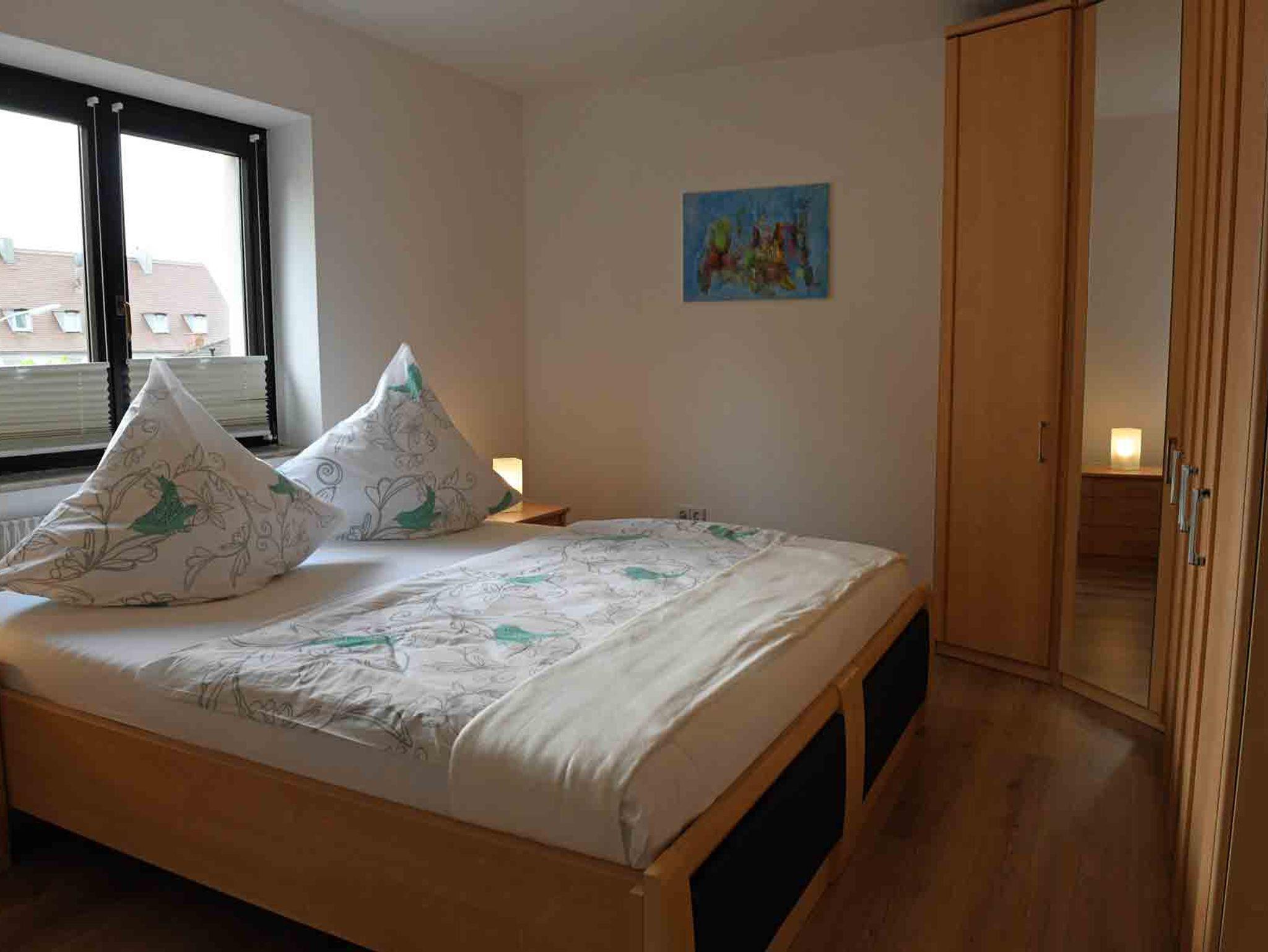 Die Wohnung bietet bis zu drei Personen Unterkunft. Ein Schlafzimmer mit Doppelbett (190x200cm) und für eine dritte Person ein Schlafsofa.