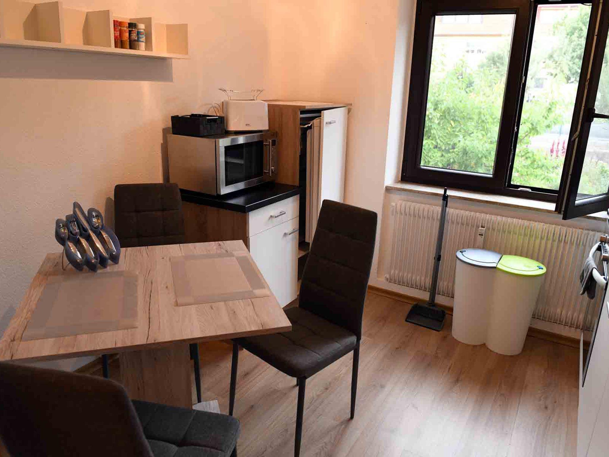 Die 55 qm große Stadtwohnung wurde durch ihre Gestaltung großzügig gehalten. Sie bietet ausreichend Platz für zwei Personen und in gut fünf Minuten Gehzeit befinden Sie sich im Herzen von Bad Neustadt.
