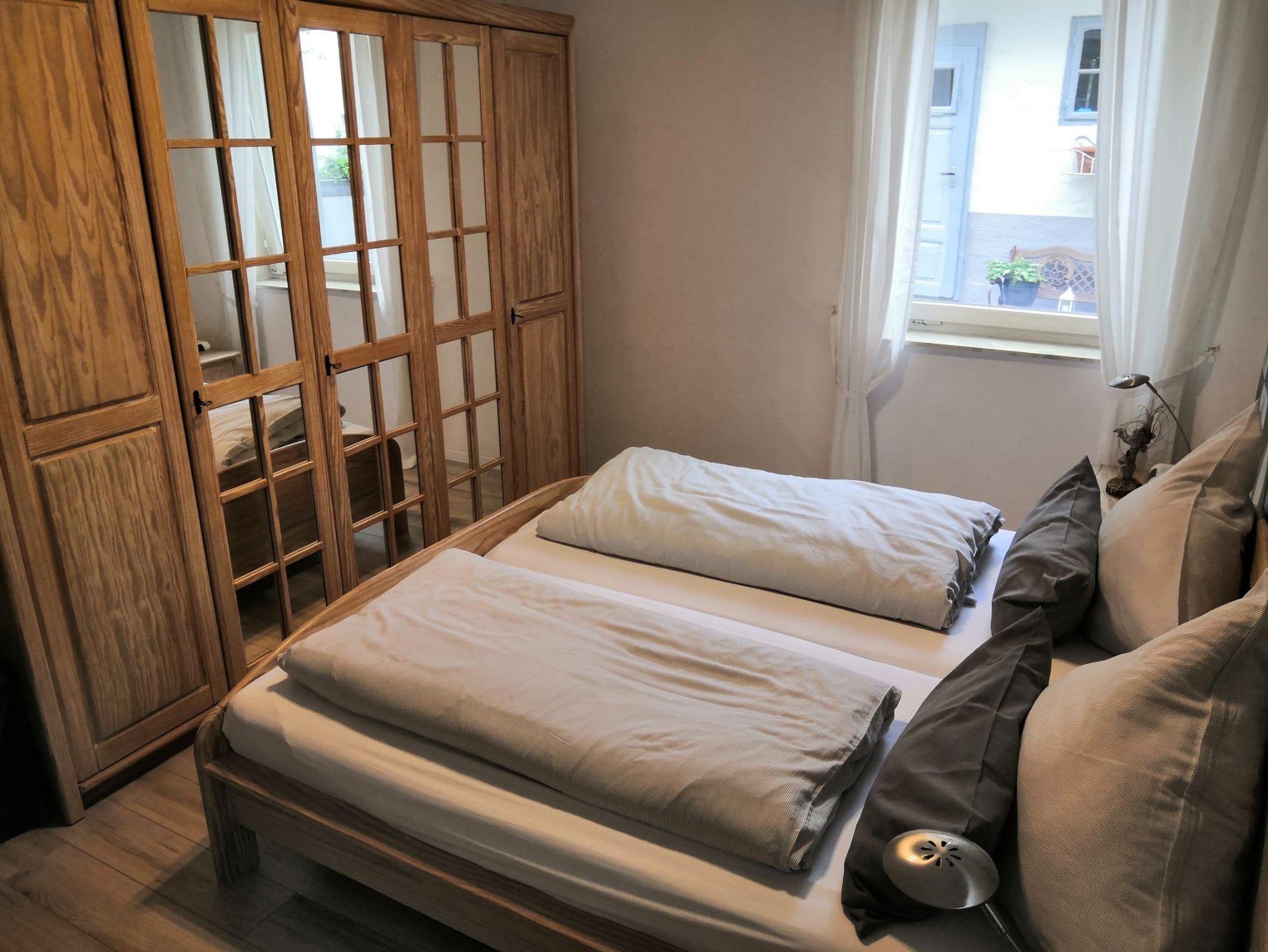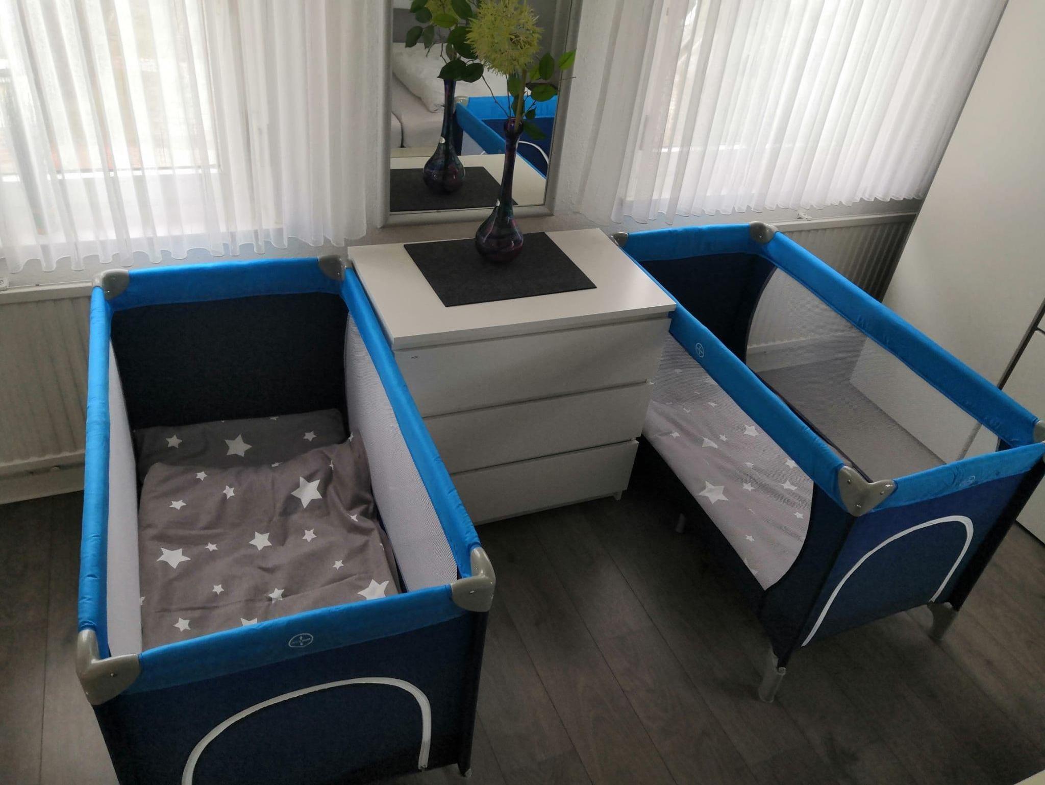 Betten für 4 Personen: King Doppelbett im Schlafzimmer, eine Einzelbett (Schrankbett) und Schlafsofa (140x200) im Wohnzimmer. Beim Bedarf kann auf Nachfrage ein Babyreisebett mit Decke, Kissen und Bettwäsche (0-3 Jahre = einmaliger Aufpreis von 15€) zur Verfügung gestellt werden.