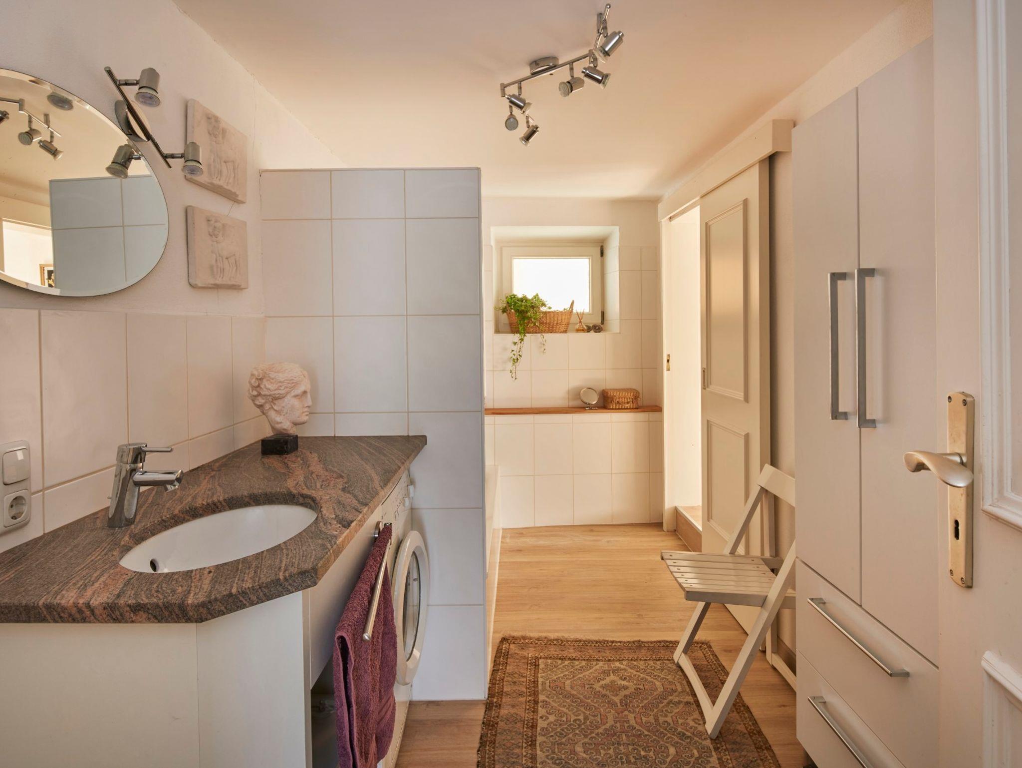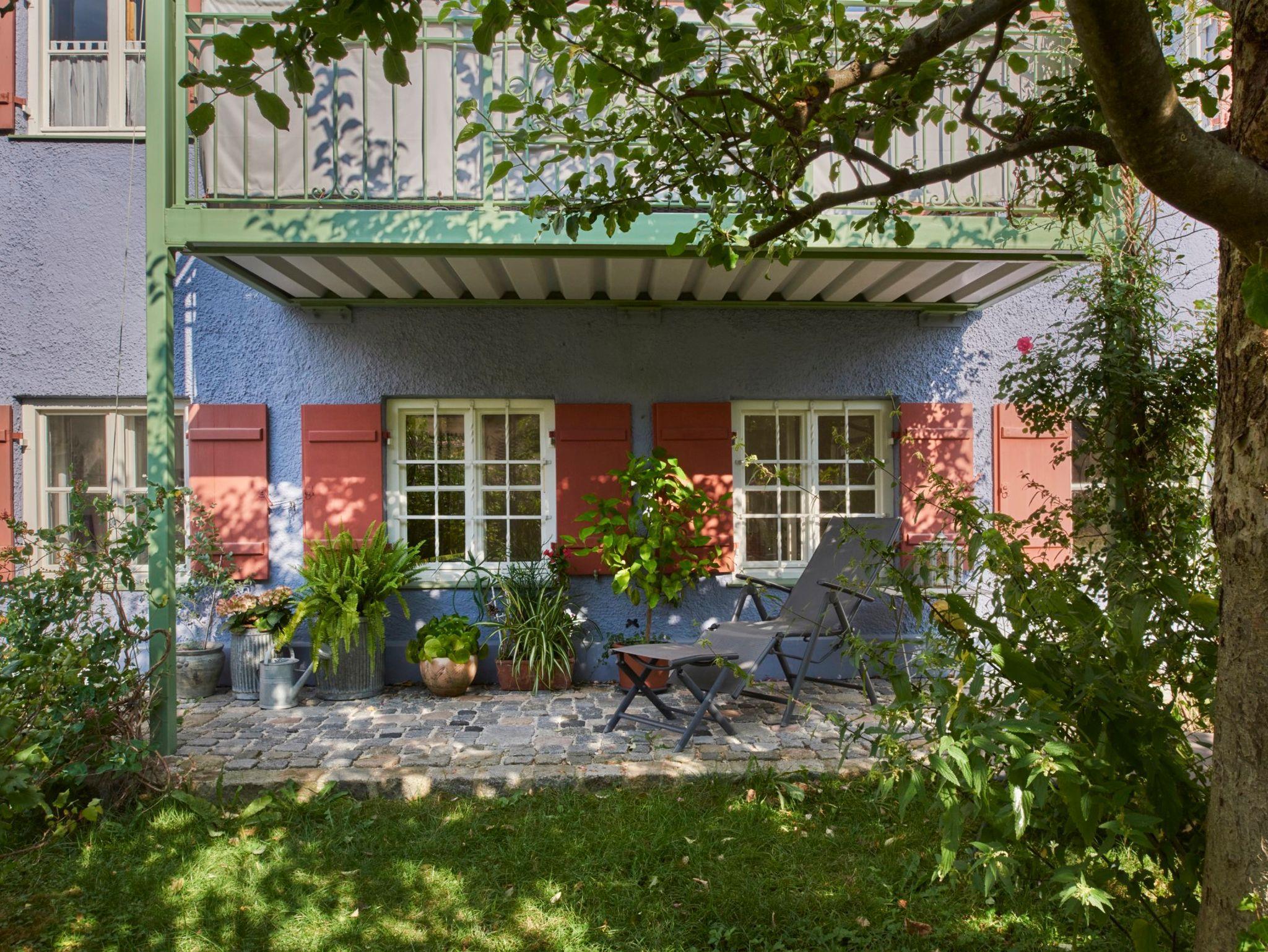 Unsere Ferienwohnung wurde liebevoll eingerichtet. Der Wohn- Essbereich, verfügt über eine Küchenzeile, einen Esstisch mit 4 Stühlen sowie einer Couch und einen Flachbild-TV. Das Schlafzimmer mit Doppelbett (Größe 1,60 x 2,00 m)haben wir mit viel Liebe zum Detail mit unseren originalen Bauernmöbeln eingerichtet. Das Badezimmer verfügt über eine Badewanne sowie eine Waschmaschine. In den Zimmern finden Sie alten Bauernstuck, der aufwendig saniert wurde. Zusammen mit den gebleichten Eichböden und den Sprossenfenstern verströmen die Räume ein gemütliches Flair. Für sehr schallempfindliche Menschen ist es vielleicht wichtig zu wissen, dass es sich um ein historisches Gebäude handelt, man also nicht von einem Schallschutz eines Neubaus ausgehen darf. Den gesamten Gartenteil vor Ihrer Wohnung können Sie zum Entspannen, Lesen oder Erholen oder einfach zum lauschen des Plätscherns des Florianibrunnens nutzen. Hier kann man sich einfach erholen.