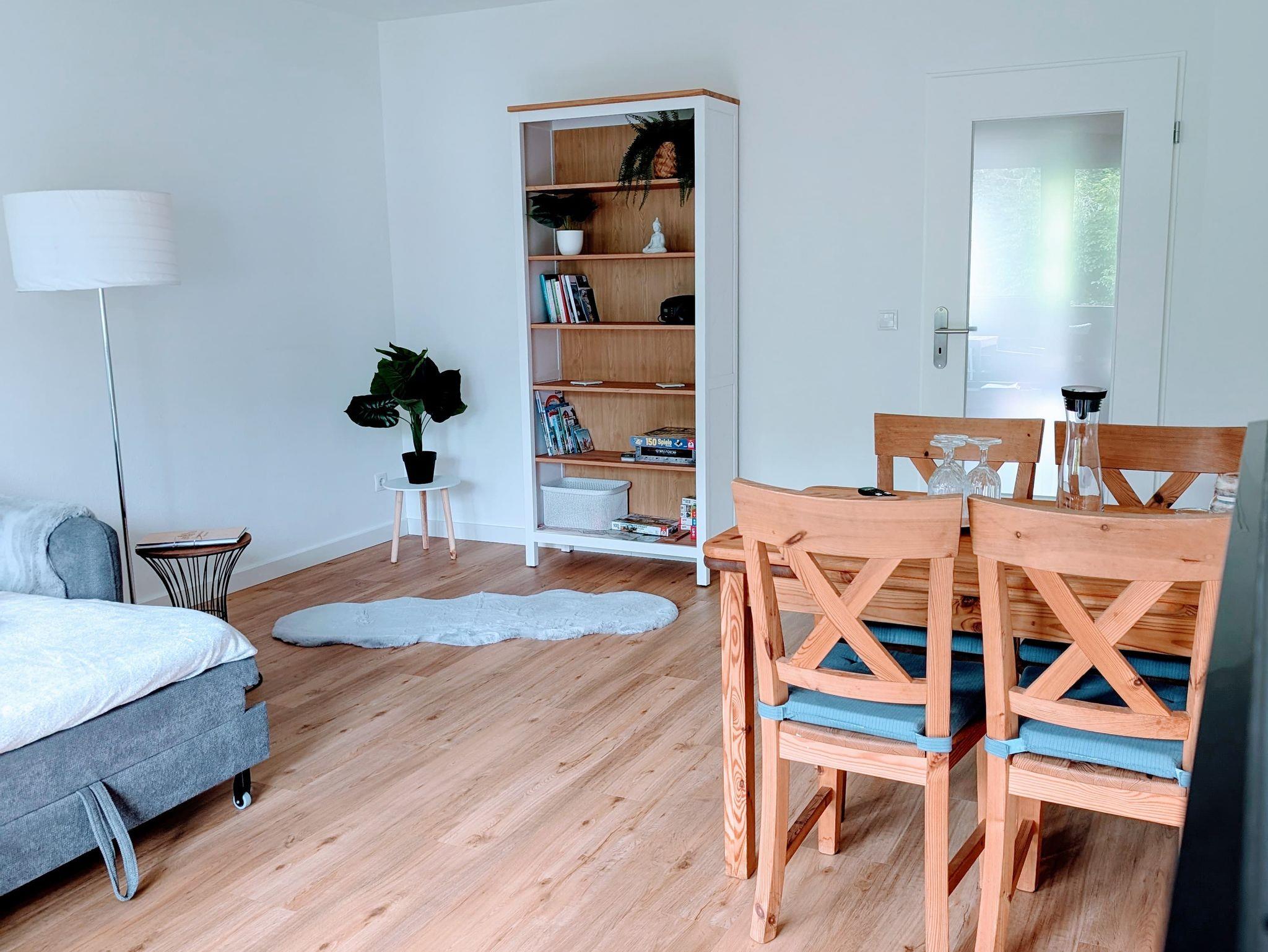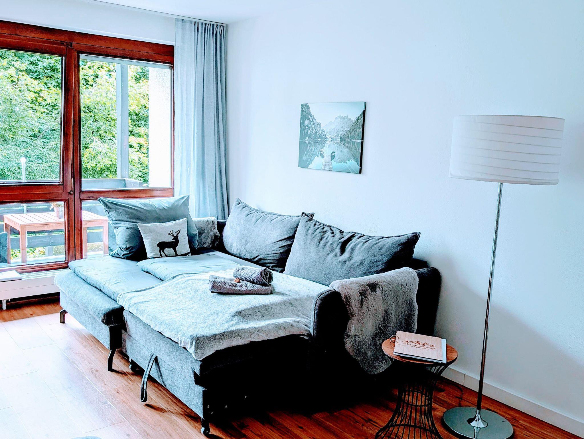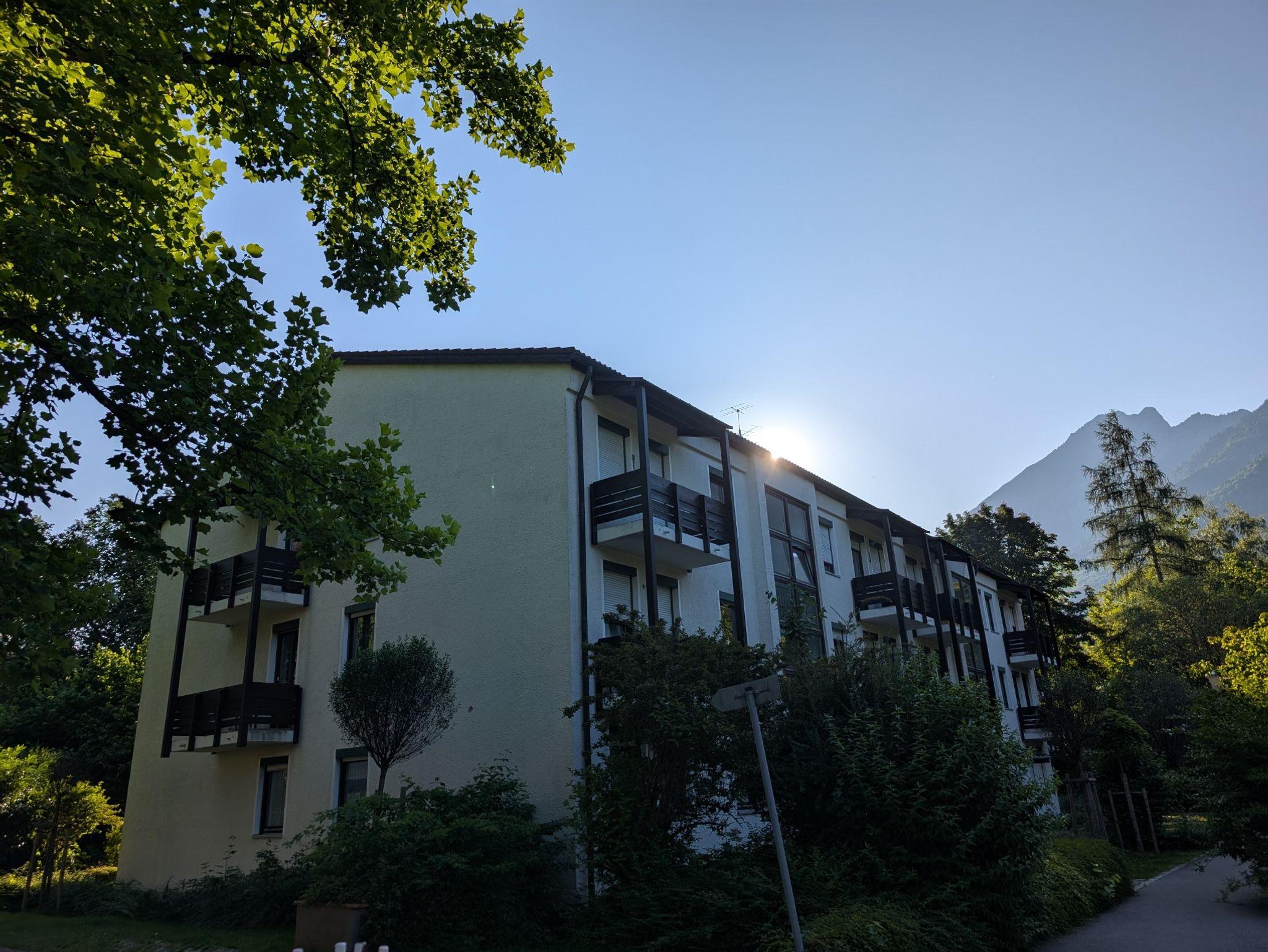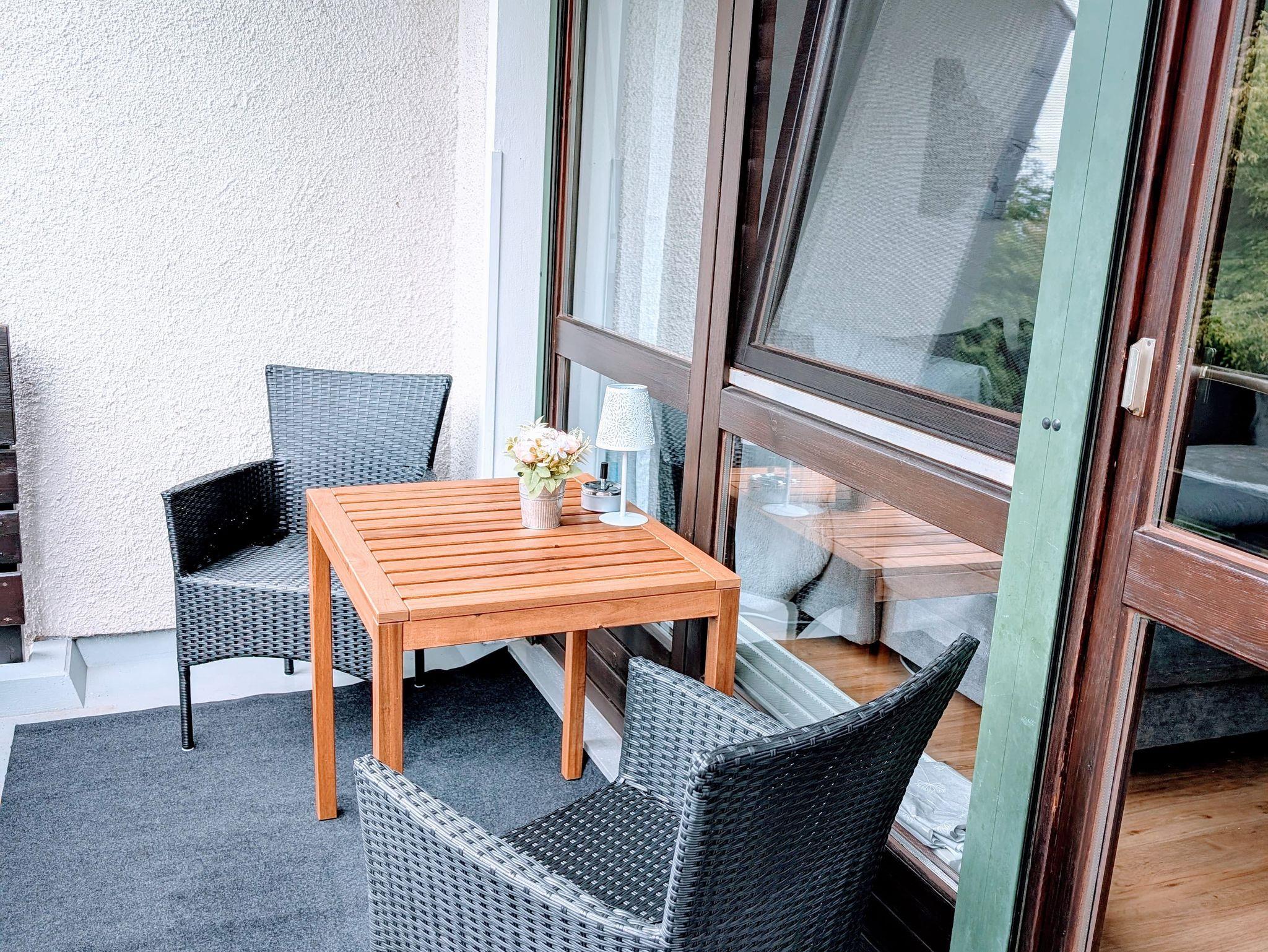 Herzlich willkommen in unserer frisch renovierten, modernen 60 m² Ferienwohnung im 2. Obergeschoss (kein Fahrstuhl). Hier finden bis zu 4 Personen Platz. Das helle Wohnzimmer lädt mit einer bequemen Schlafcouch, einem Esstisch und einem Schrank zum Verweilen ein. Die voll ausgestattete Küche mit hochwertigen Markengeräten – Herd, Backofen, Spülmaschine, Kühlschrank, Kaffeemaschine, Toaster und Wasserkocher – macht das Kochen zum Vergnügen. Das Schlafzimmer mit Doppelbett und großem Kleiderschrank sorgt für erholsamen Schlaf. Das Badezimmer mit Badewanne/Dusche rundet das Wohlfühlerlebnis ab. Genießen Sie die zwei schönen Balkone mit herrlichem Bergblick – perfekt, um den Tag entspannt ausklingen zu lassen. Wir freuen uns schon sehr auf Ihren Besuch und darauf, Ihnen eine schöne Zeit bei uns zu bereiten!