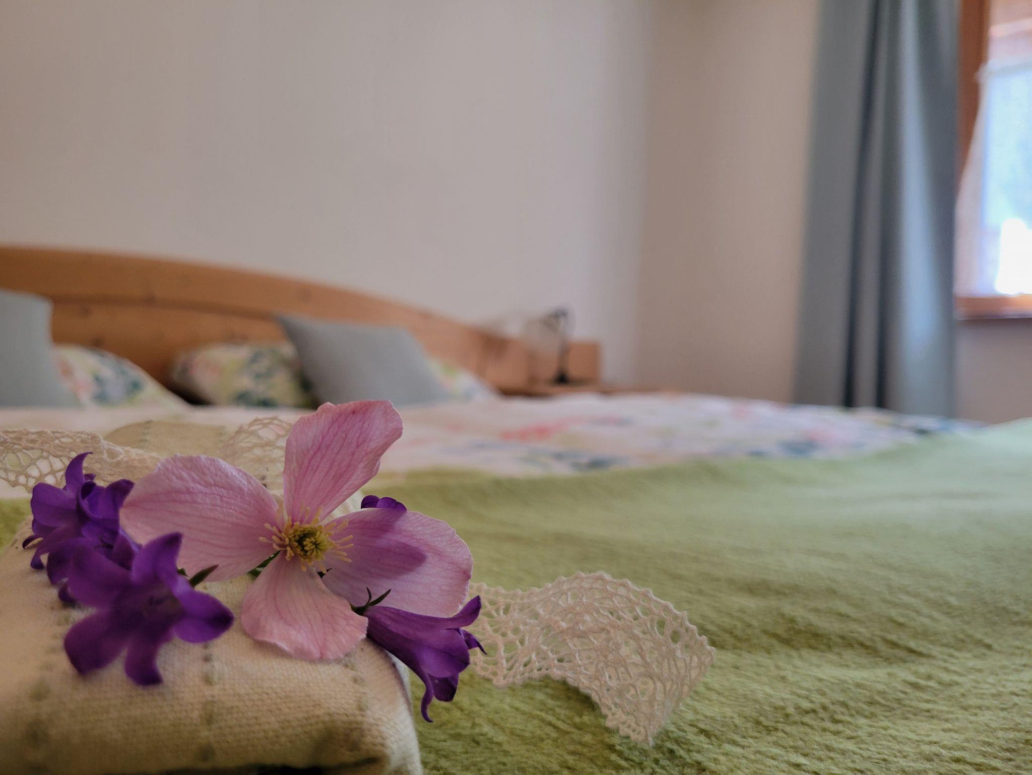Das neu renovierte Ferienhäuschen ist mit viel Liebe zum Detail eingerichtet, voll ausgestattet und bietet viel Platz und Komfort für eine erholsame Auszeit. Den privaten Eingang erreichen Sie über die eigene teilüberdachte Terrasse mit Bergblick. Hier können Sie gemütlich Kaffee trinken, die Sonne genießen oder nach einem schönen Ausflug den Tag ausklingen lassen. Im geräumigen Wohnzimmer ist ein großer Esstisch, eine bequeme Couch und Flachbild-TV mit Satellitenanschluss. Im großen Schlafzimmer mit einem gemütlichen Doppelbett (200 x 200 cm), Kuscheldecken und Verdunkelungsvorhängen lässt es sich wunderbar träumen und entspannen. In einem weiteren Schlafzimmer befinden sich zwei Einzelbetten (90 x 200 cm). Zwei Zusatzbetten (80 x 200 cm) im Wohnzimmer können für Kinder oder Jugendliche genutzt werden. Eine gut ausgestattete moderne Landhausküche mit Essbereich bietet alles für die Zubereitung Ihrer Lieblingsgerichte. Die Kräuter auf der Terrasse können gerne zum Kochen genutzt werden. Das moderne Badezimmer mit Dusche und WC rundet die Ferienwohnung ab. Durch die Echtholzmöbel entsteht ein ländliches, natürliches Ambiente mit Wohlfühlatmosphäre. Das Ferienhaus ist ausgestattet mit Fußbodenheizung, einer steuerbaren Wohnraumlüftung sowie gratis WLAN. Ein Kinderreisebett und Hochstühle stehen bei Bedarf gerne zur Verfügung. Ihr Auto können Sie vor dem Haus auf den öffentlichen Parkplätzen gratis abstellen.