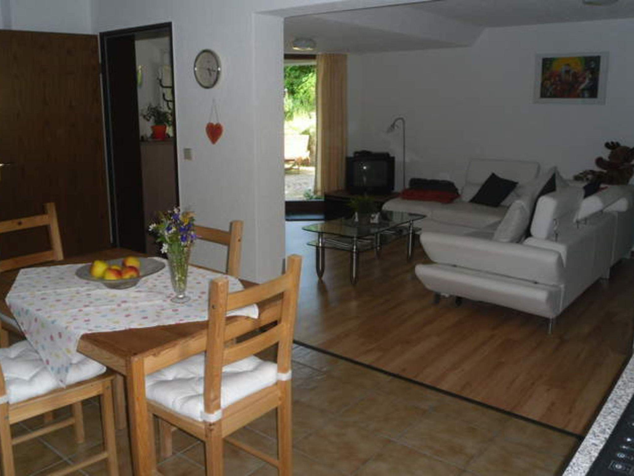Unsere Ferienwohnung - schön eingebettet in die Natur- wird mit eigenem Strom aus unserer neuen Photovoltaikanlage versorgt. Ebenso heizen wir Co2- neutral mit Holzpellets. Sie finden in der geräumigen Wohnung 1 separaten Schlafraum, 1 Wohn-/Schlafraum mit Schlafcouch, Terrasse, Bad mit Dusche und Badewanne, separates WC.Fön, Sat-Fernsehen, DVD Player mit div. Filmen, CD-Radio (CDs vorhanden),W-Lan, Kinderreisebett, Kinderhochstuhl, Waschmaschinenbenutzung möglich, Spülmaschine, Ceran-Herd mit Backofen, Grillmöglichkeit, Toaster, Wasserkocher, Kaffeekapselmaschine, Filterkaffeemaschine, Gartenmöbel. Gerne vermieten wir auch an Handwerker- Montagearbeiter, die für einen längeren Aufenthalt eine Unterkunft suchen. Bitte fragen Sie uns nach den Tarifen.
