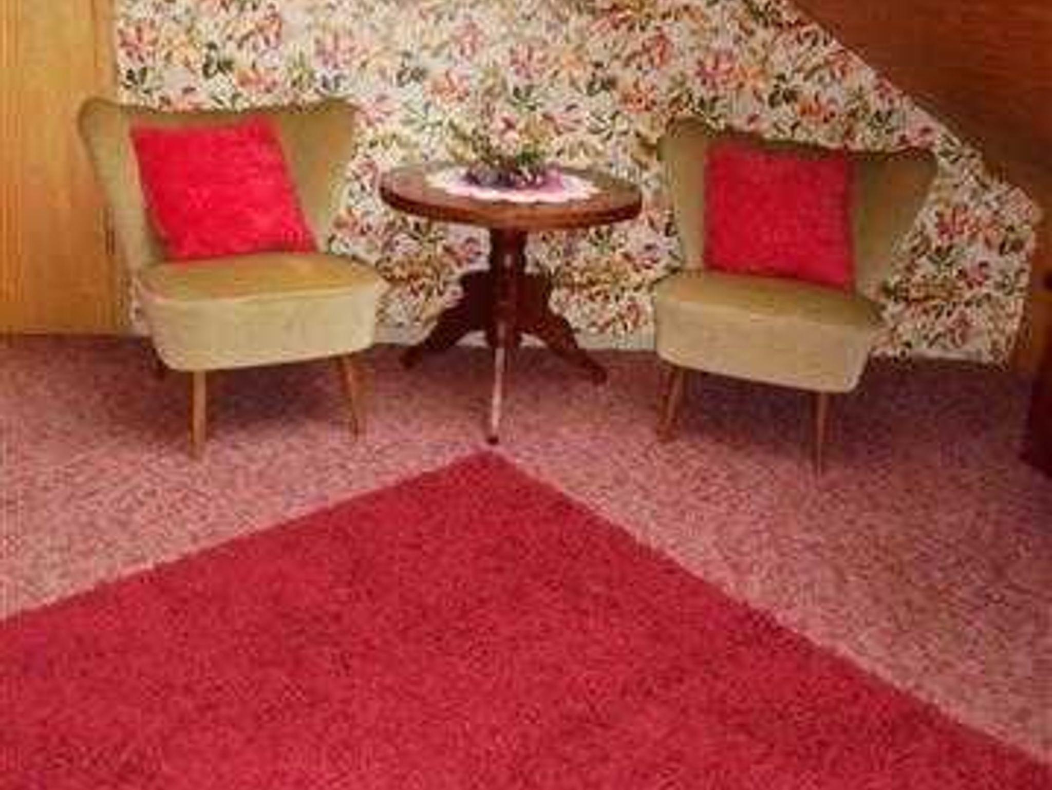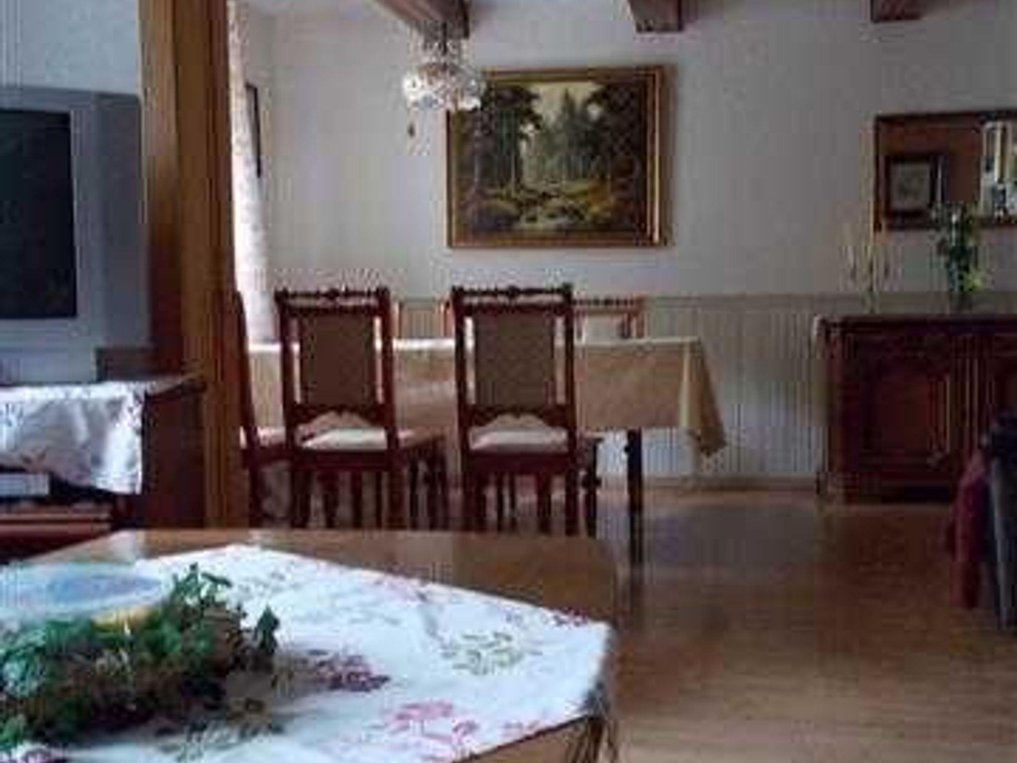 Das Ferienhaus bietet Platz für 9 Personen und eignet sich besonders für Familientreffen oder auch für Wandergruppen. Im Ferienhaus stehen den Gästen 5 Schlafzimmer sowie eine sehr große, voll ausgestattete Küche zur Verfügung. Zudem gibt es einen großzügigen Wohn- und Essbereich mit Fernseher, DVD-Player und Musikanlage. Weiterhin gibt es auf jeder Etage ein Badezimmer und im Obergeschoss zusätzlich ein separates WC. Im Erdgeschoss befindet sich ein Wirtschaftsraum mit Waschmaschine und Trockner. Für Familien mit Kleinkindern stehen 2 Hochstühle, 1 Wiege und 1 Reisebett auf Anfrage zur Verfügung.