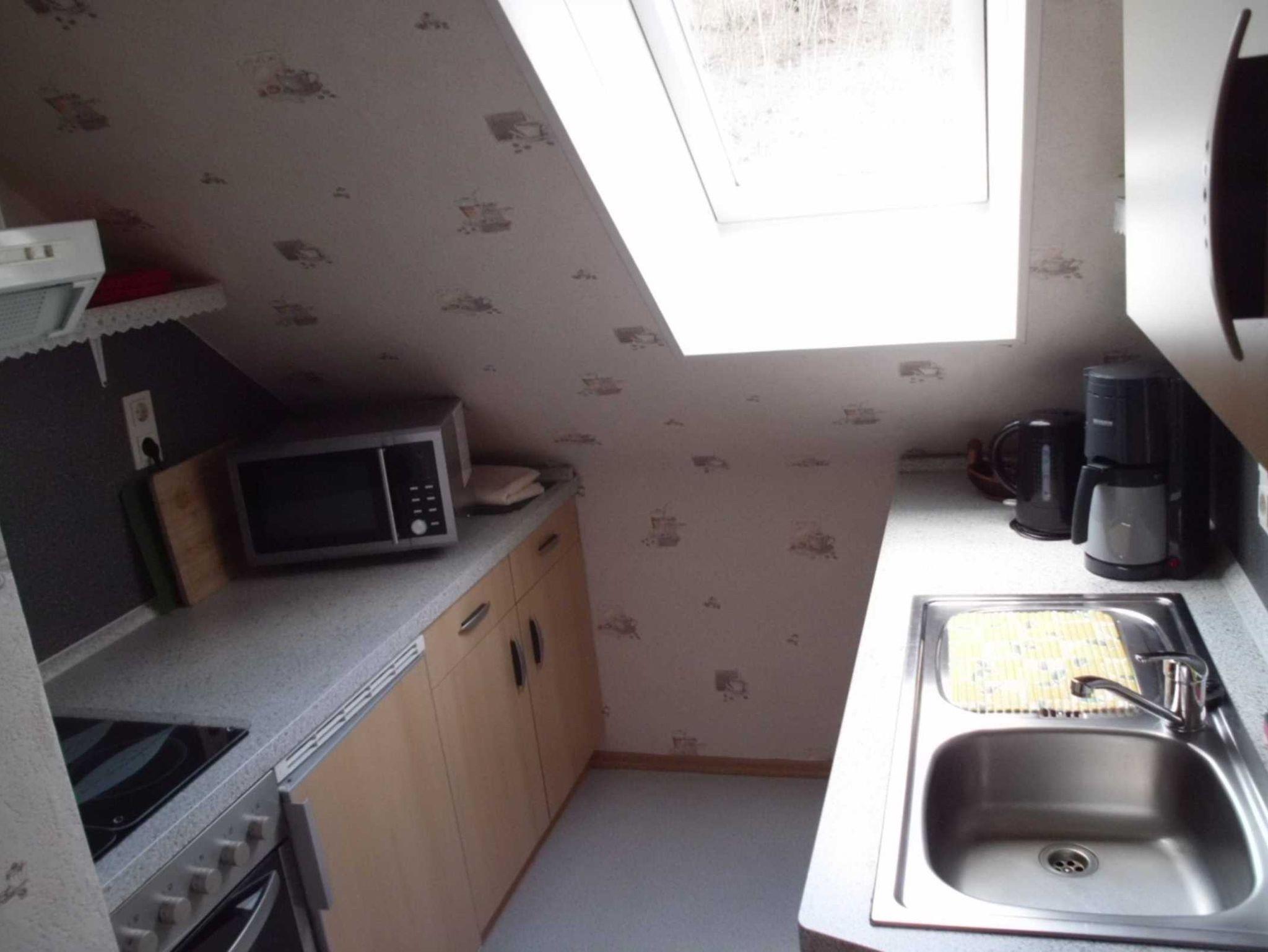 Die Küche ist komplett ausgestattet, mit E-Herd (Ceranfeld) und Backofen, Mikrowelle, Kühlschrank, Geschirrspüler und allem was zur Küche gehört. Weiterhin gibt es ein Badezimmer mit Dusche/WC und Fön. Bett- und Tischwäsche sowie Handtücher werden kostenfrei gestellt.