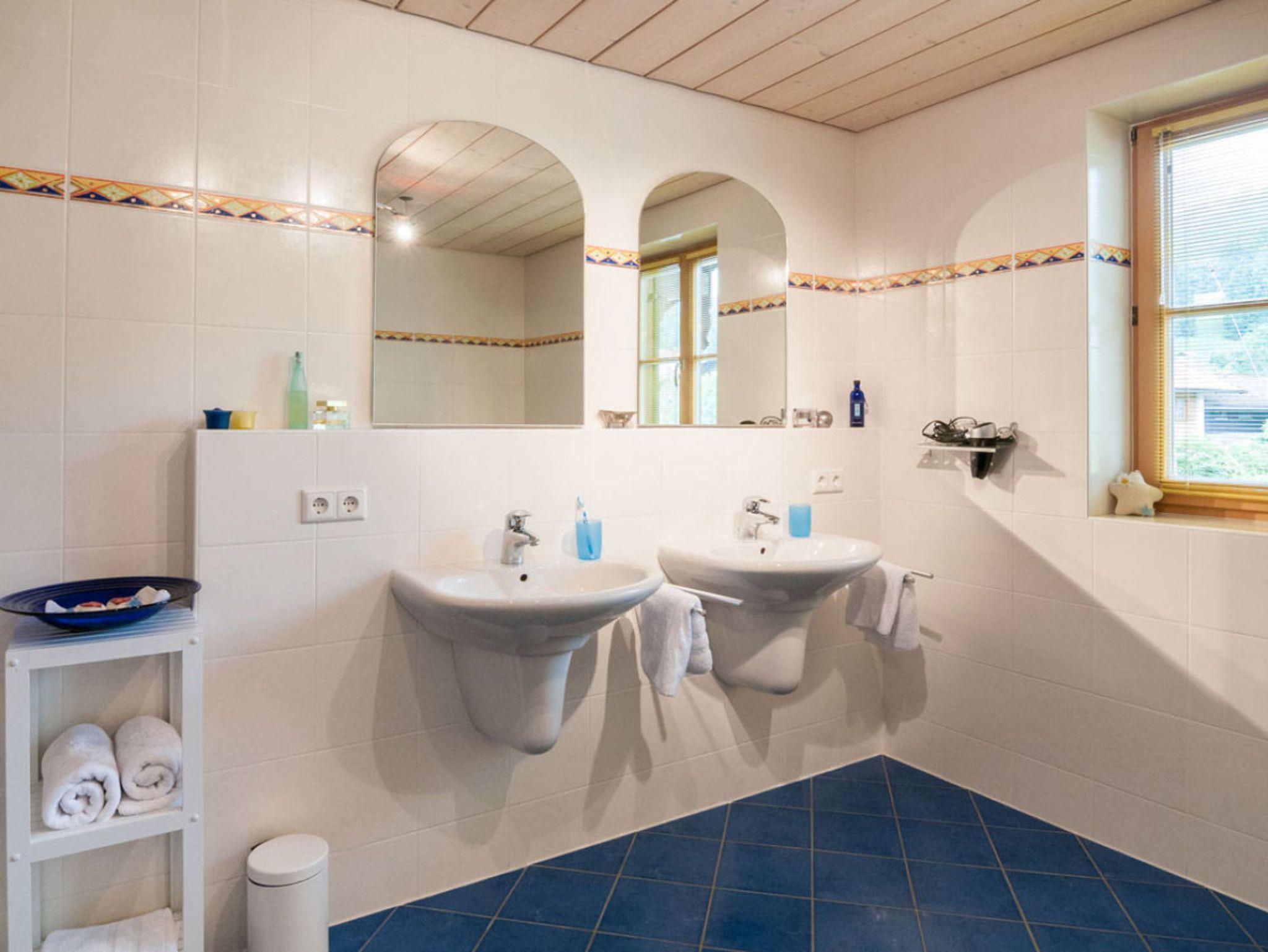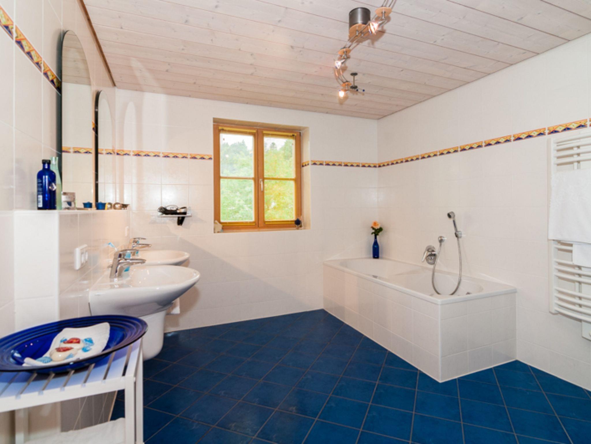 - Bad mit Dusche, Badewanne, Doppelwaschbecken, WC, Fußbodenheizung, Handtuchwärmer und Haartrockner