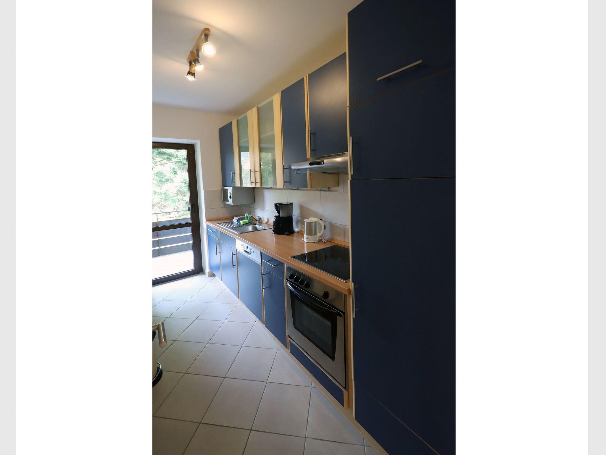• Kühl-/Gefrierkombination, Backofen, 4 Cerankochfelder, Spülmaschine, Mikrowelle, Kaffeemaschine, Wasserkocher, Toaster, Bügeleisen