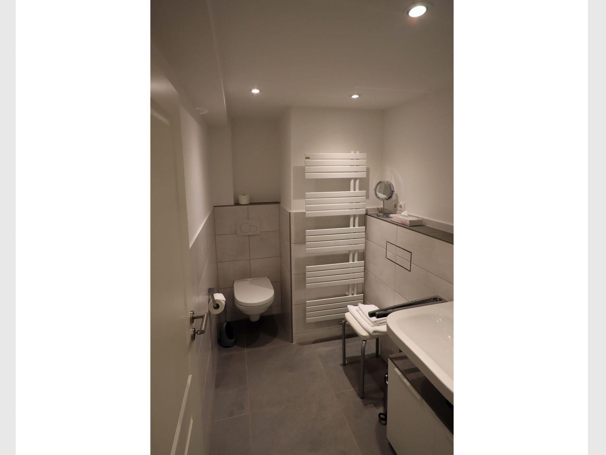 • Bad mit Walkin-Dusche, Waschbecken, Toilette, Haarfön