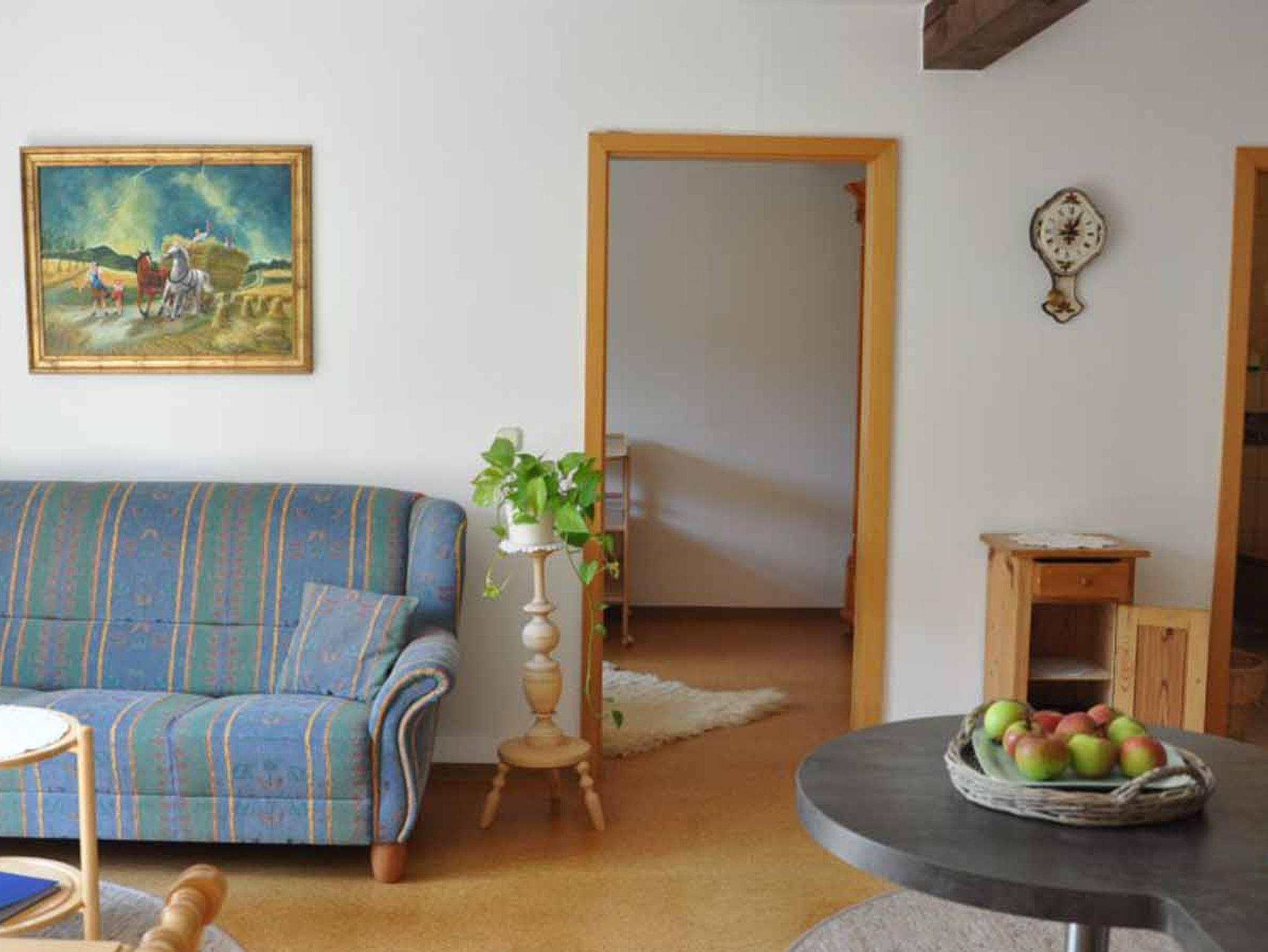 Die Ferienwohnung ist mit den fränkischen Originalen nachempfundenen Möbeln ausgestattet, deren Vorbilder im Fränkischen Freilandmuseum in Bad Windsheim zu sehen sind. Diese naturbelassene, mit Bienenwachs eingelassene Ausstattung ist besonders für Allergiker geeignet.