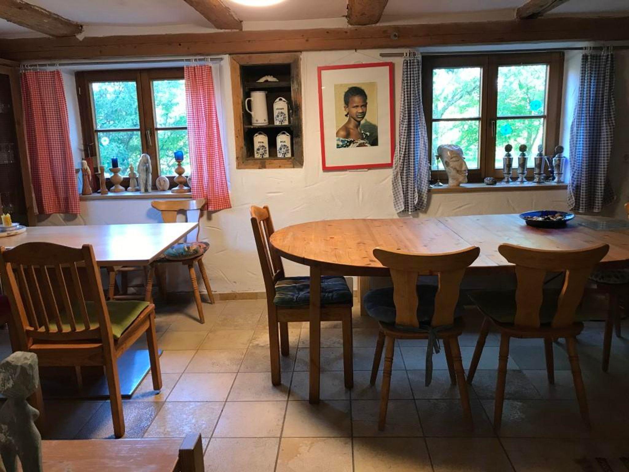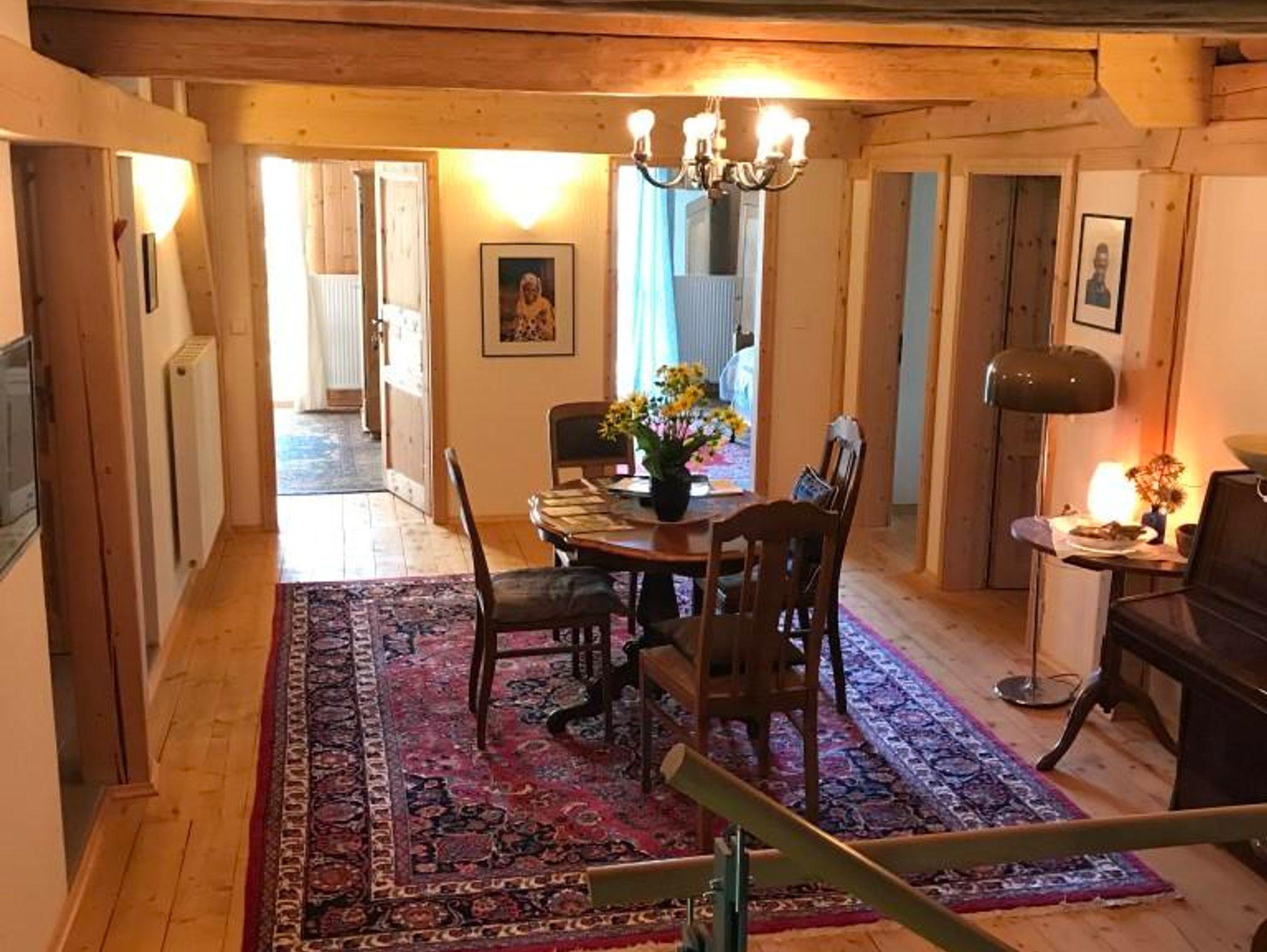 Die Ferienwohnung befindet sich in einem 300 Jahre alten Bauernhaus, das durch ein gemeinsames Treppenhaus der Eigentümer zugänglich ist. Die Küche ist nostaligisch eingerichtet und liegt im Erdgeschoss. Die 4 Zimmer sind mit viel Liebe zum Detail und Antiquitäten eingerichtet. Hier nichts von der Stange. Zwei separate WC und eine extra Dusche und Badewanne befinden sich auf der gleichen Ebene. Im Vorraum kann ein gemeinsamer Fernseher genutzt werden. Viel Platz bietet der große Aufenthaltsraum im 2. Obergeschoss. Hier können gesellige Abende aber auch ruhige Stunden verbracht werden.