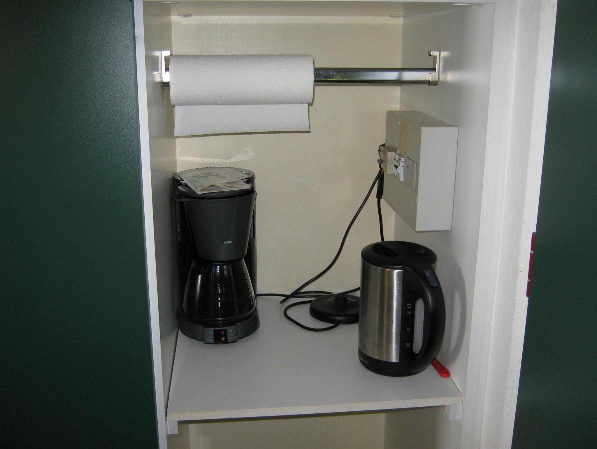 Ausstattung: Alles Notwendige im Appartement vorhanden: TV, Föhn, Kaffeemaschine, Wasserkocher, kleiner Backofen, Toaster, Kühlschrank, Tiefkühlschrank, Küchenzeile mit zwei Kochplatten.