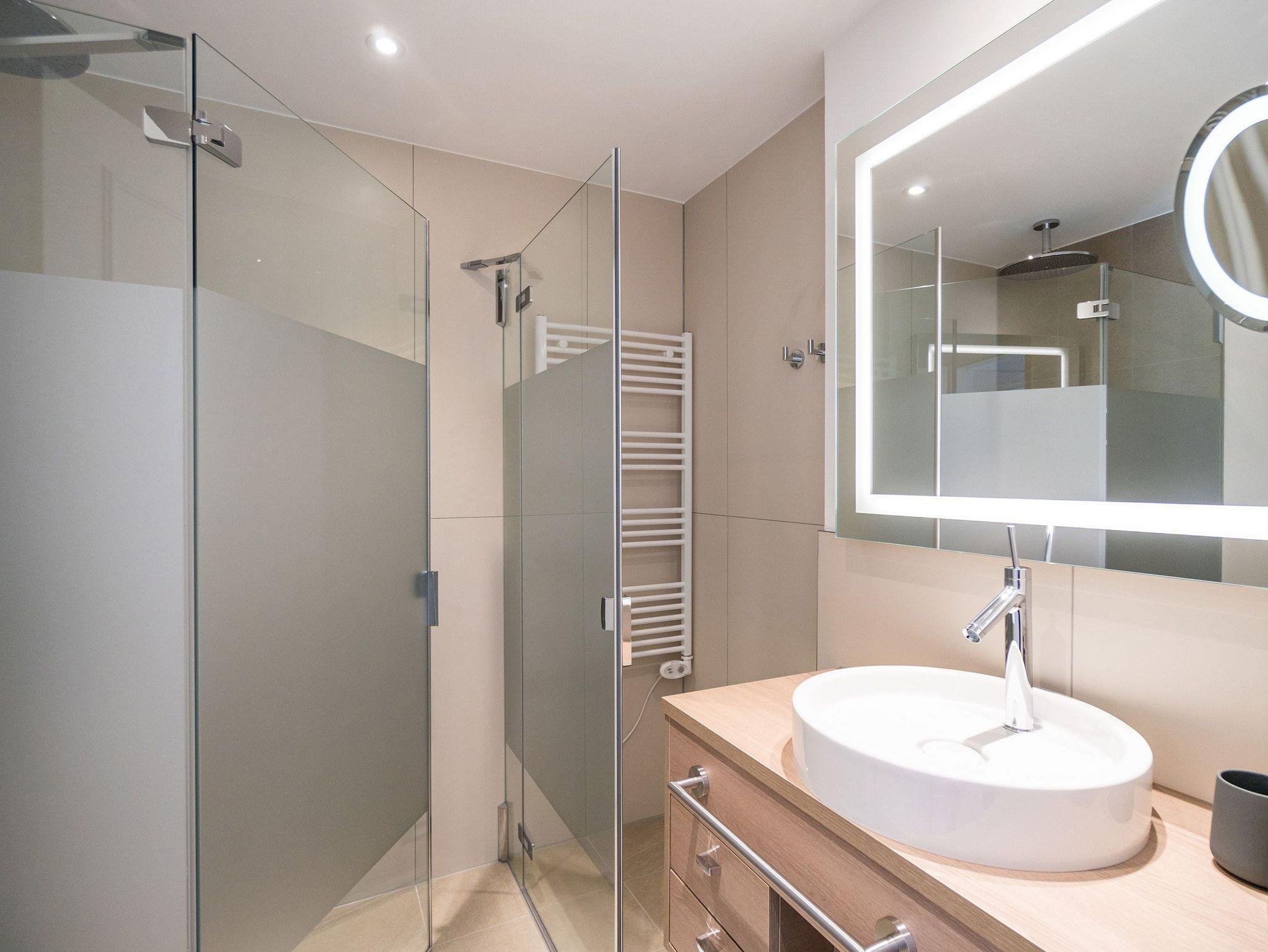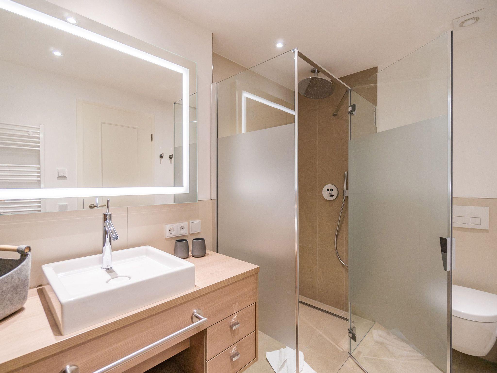 Ob mit der Familie oder mit Freunden auf diesen 69 Quadratmetern Urlaubsparadies wird Ihre Auszeit zu einem ganz besonderen Erlebnis. Allein der Blick vom Süd-Ost-Balkon über die endlose Weite der Ostsee ist Erholung pur. Tanken Sie hier schon morgens beim Frühstück Sonne satt. Bis zu vier Personen und ein Kleinkind bis drei Jahre (im Kinderreisebett) werden sich in den drei Räumen dieses stylischen Appartements pudelwohl fühlen. Erlesen und edel ist die Inneneinrichtung vom Innenarchitekten konzipiert und arrangiert. Ein geräumiges Wohn-Ess-Zimmer wartet nur darauf, Ihnen alle Annehmlichkeiten zu bieten, die Sie sich wünschen können: Vom Home-Entertainment des großen Flat-TVs und der Bose-Soundanlage, die Sie via Bluetooth mit Ihrem Handy bedienen können, über das bequeme Sofa zum Relaxen, den kuscheligen Gas-Kamin, der Gemütlichkeit auf Knopfdruck zaubert, bis hin zum edlen und schönen Esstisch, an dem Sie gemeinsam viele Muße- und Genussstunden verbringen können. Die Steinwand, die im Wohnzimmer einen absolut trendigen Akzent setzt, verleiht dem Raum durch ihre raue Naturstruktur das gewisse Etwas. Für kulinarische Urlaubsgenüsse sorgt die voll ausgestattete Küche. Kochen und vergnügen Sie sich an der freistehenden Kochinsel. Erlesenes Geschirr rundet die Gaumenfreuden mit optischem Pfiff ab. Wenn der Wunsch nach Rückzug aufkommt, bieten die beiden Schlafzimmer mit bequemen Boxspringdoppelbetten (einmal 1,80 m x 2,00 m und einmal 1,60 m x 2,00 m) die ideale Fläche für entspannende Stunden. Von beiden Schlafzimmern aus können Sie auf die Ostsee hinaus schauen. Von einem Schlafzimmer aus sogar via Balkon. Viel Ablageflächen finden Sie in den Schränken. Zwei Flat-TVs sorgen für digitale Unterhaltung. Das Appartement verfügt gar über zwei Badezimmer, die jeweils mit geräumiger Regendusche, großzügigem Waschtisch und WC ausgestattet sind. Zeigt die Ostsee einmal ihr stürmisch ungemütliches Gesicht, können Sie in der Finnischen Sauna, die zu der Wohnung gehört und direkt in eines der Bäder eingebaut ist, bei wohliger Wärme ausspannen und entspannen. Genießen Sie Ihren Urlaub! Wir kümmern uns um den Rest. So sind bei Ihrer Ankunft die Betten für Sie bezogen und Handtücher liegen bereit. In einem kleinen Hauswirtschaftsraum finden Sie einen Waschtrockner. Das WLAN ist natürlich kostenfrei. In der ultramodernen Parkgarage ist für Ihr Feriendomizil der Pkw-Stellplatz Nr. 22 reserviert.