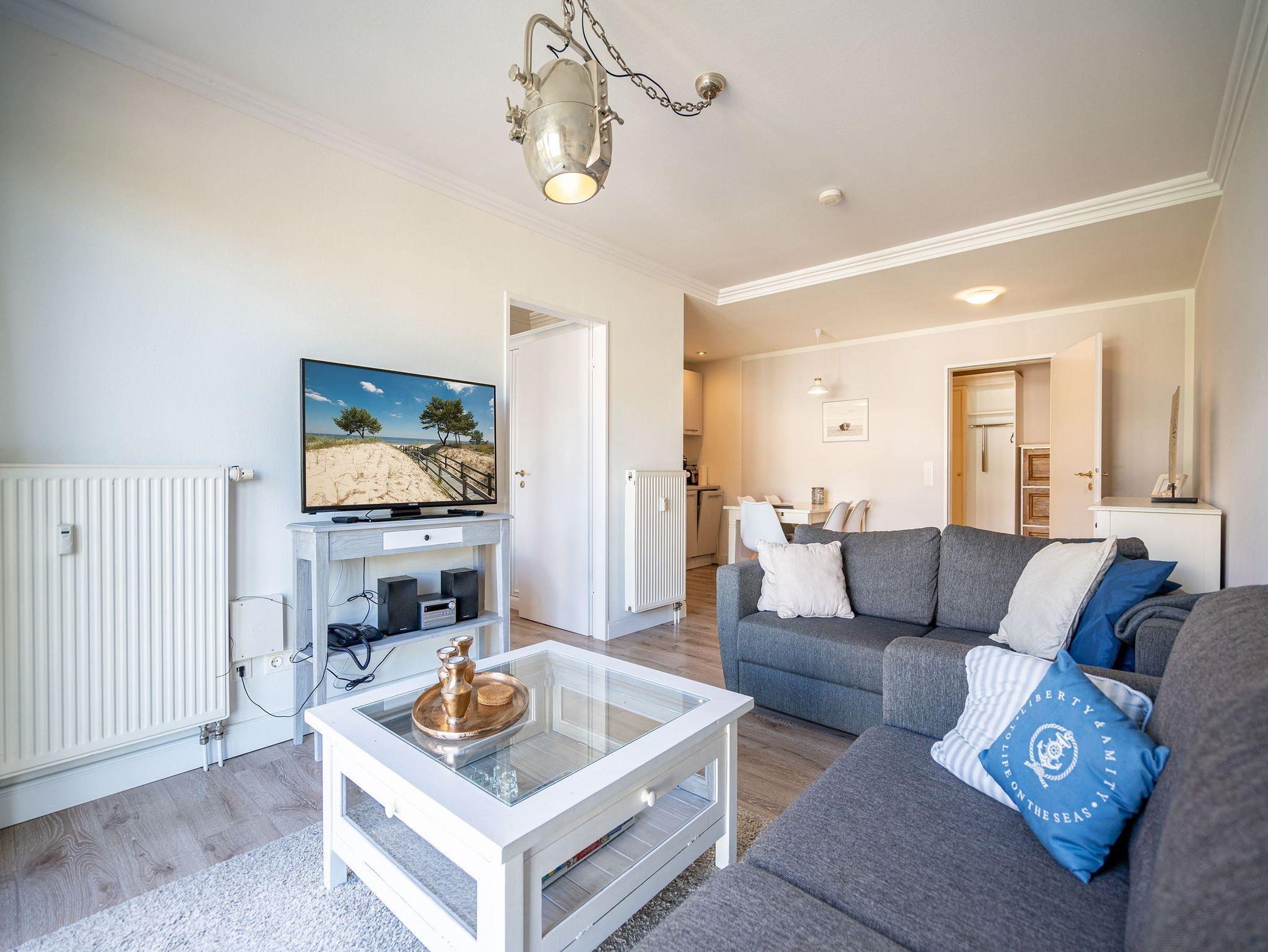 Das kleine Urlaubsparadies Appartement 1.14 im historischen Holzhaus an der Strandpromenade bietet auf 51 gemütlichen Quadratmetern Platz für zwei Erwachsene, 1 Kind bis 16 Jahre und 1 Kleinkind (bis max. 3 Jahre im Kinderreisebett). Dank bodentiefer Fenster gelangt ausreichend Usedomer Sonne in das schöne 2-Zimmer-Appartement im Erdgeschoss. Auf der bequemen Sofalandschaft (als Aufbettung für die 3. Person möglich) im offenen Wohn-Essbereich finden Sie Platz für die ganze Familie. Von hier aus haben Sie Zugang zum kleinen Balkon, der den Blick auf den Schloonsee freigibt. Essbereich und Küche gliedern sich unauffällig an den Wohnbereich an und halten alles bereit, was Sie zum Zubereiten Ihrer Speisen im Urlaub benötigen. Auf Ihren erholsamen Schlaf müssen Sie dank Boxspringbett (1,80m x 2,00) nicht verzichten. Flat-TV und genügend Platz für Ihre Urlaubsgarderobe runden den Schlafbereich ab. Im Duschbad (innenliegend) befinden sich WC und Waschtisch und Handtücher liegen für Sie bereit. Für einen sorgenfreien Urlaubsstart sind zudem die Betten bei Anreise bezogen. Ein kostenfreier Stellplatz in der Tiefgarage (Doppelparker oben, nur PKW - keine Kombis) ist für Sie reserviert. Kostenfreies WLAN sowie ein Briefkasten zur Nutzung runden dieses Appartement ab.