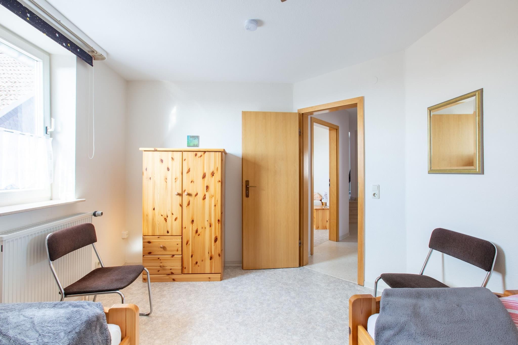 In der 1. Etage: (Wohnzimmer(TV(Satellit), DVD-Spieler), Wohnküche(Esstisch, Radio, Kochherd(4 Kochplatten, Ceranfeld), Kaffeemaschine(Filter, pads), Backofen, Mikrowelle, Spülmaschine, Kühlschrank), Schlafzimmer(Doppelbett), Schlafzimmer(2x Einzelbett), Schlafzimmer(Einzelbett), Badezimmer(Dusche, Waschbecken), Toilette, Toilette, Flur) Heizung(Zentral), Parkplatz, Hochstuhl